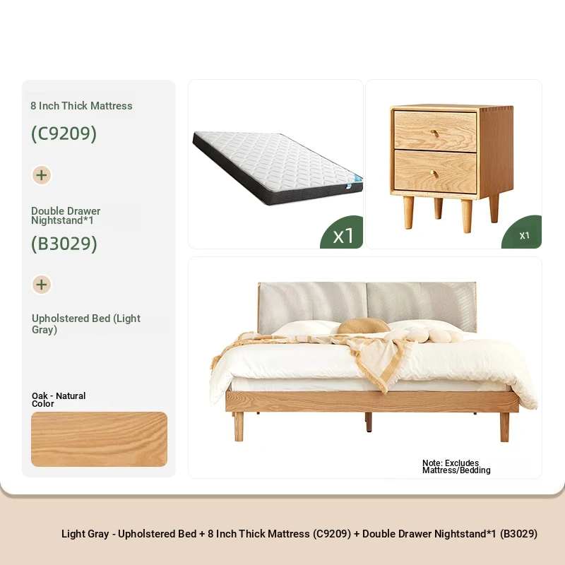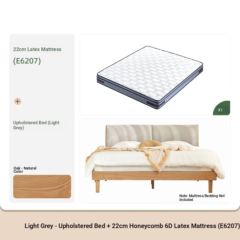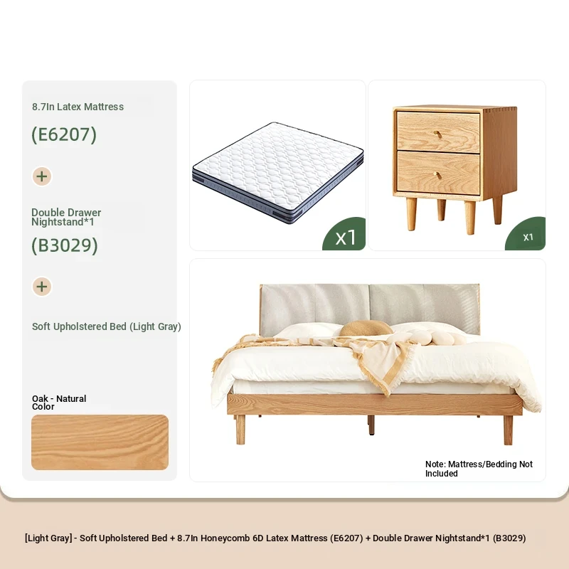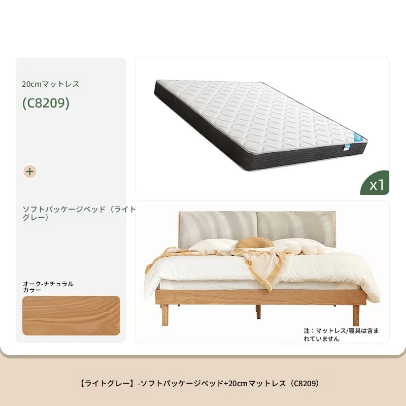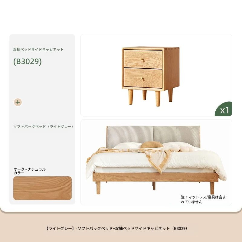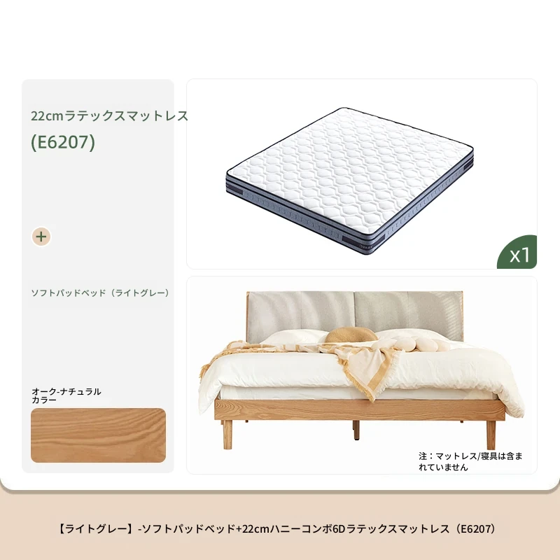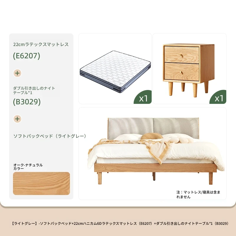 ソフトパックベッド(浅灰色)+22cmハニカム6Dラテックスマットレス(E6207)+双引き出しナイトテーブル*1(B3029)