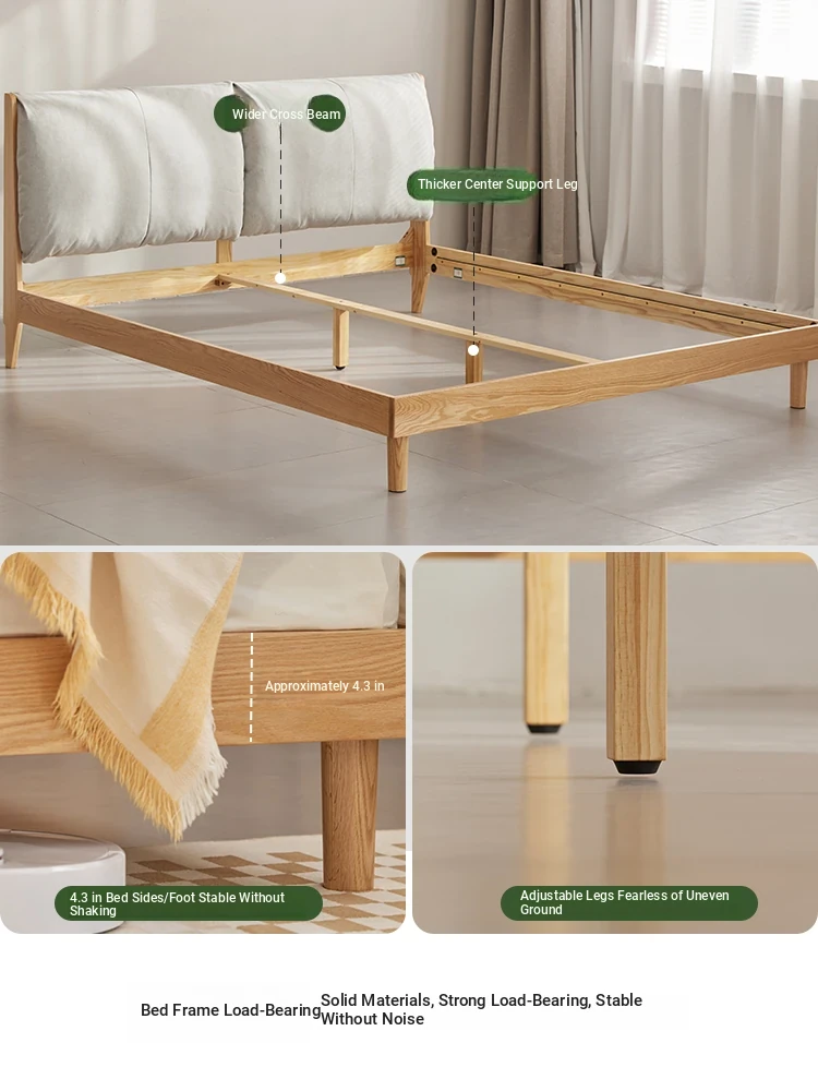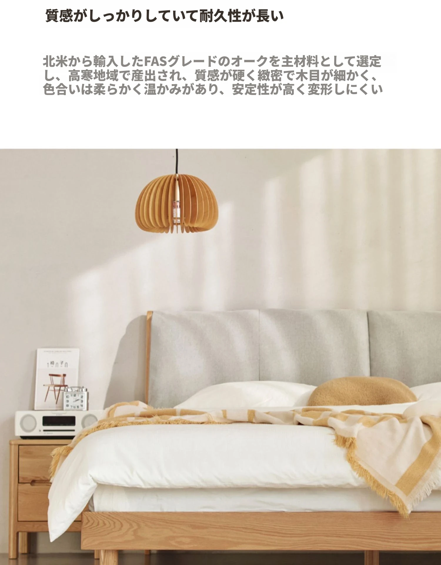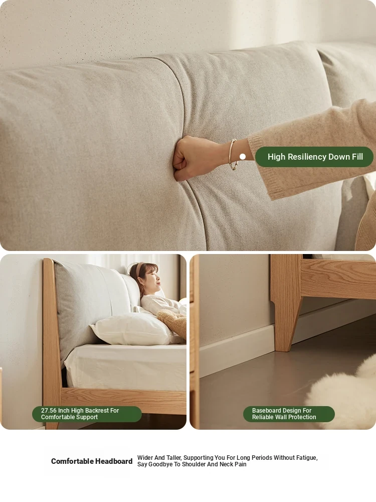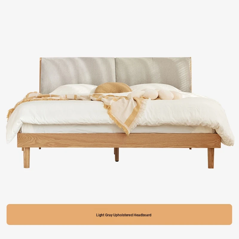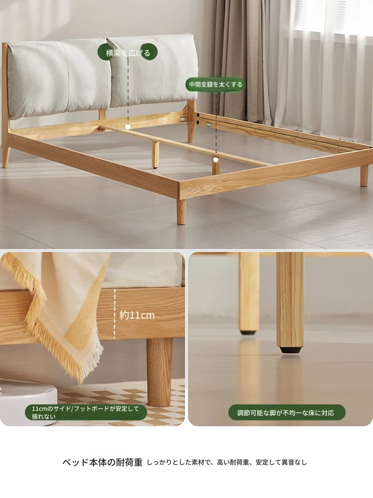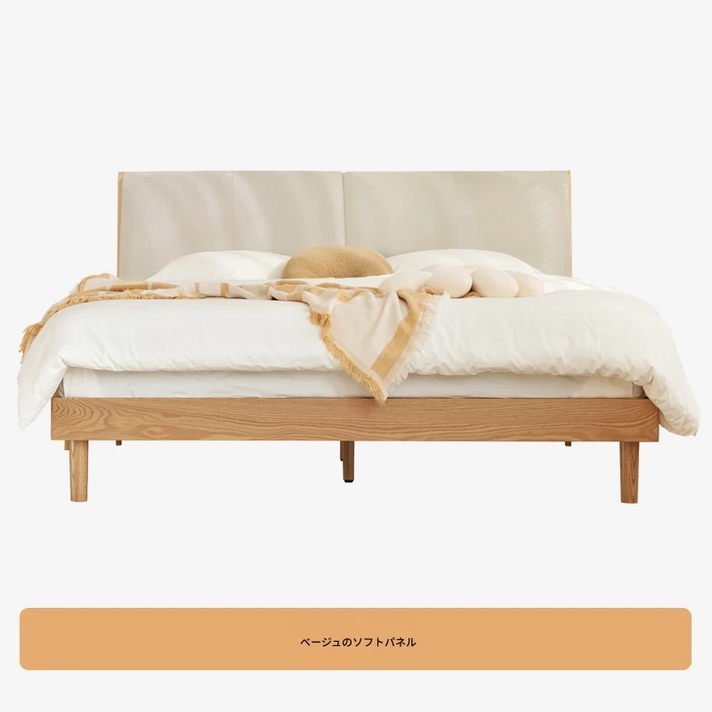 オーガニック素材使用!北欧スタイルの全木製ダブルベッド 1.8m - シンプルでモダンなデザイン、主寝室にぴったりな柔らかいオーク製ヘッドボード付き 1.5m ベッド。快適な眠りを実現します!