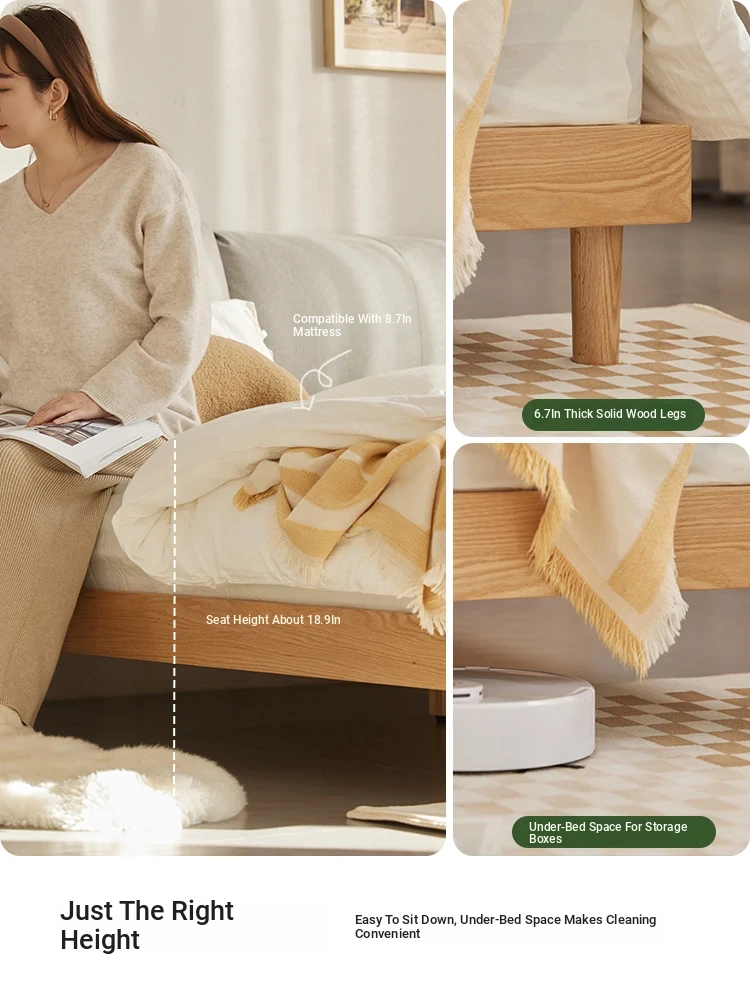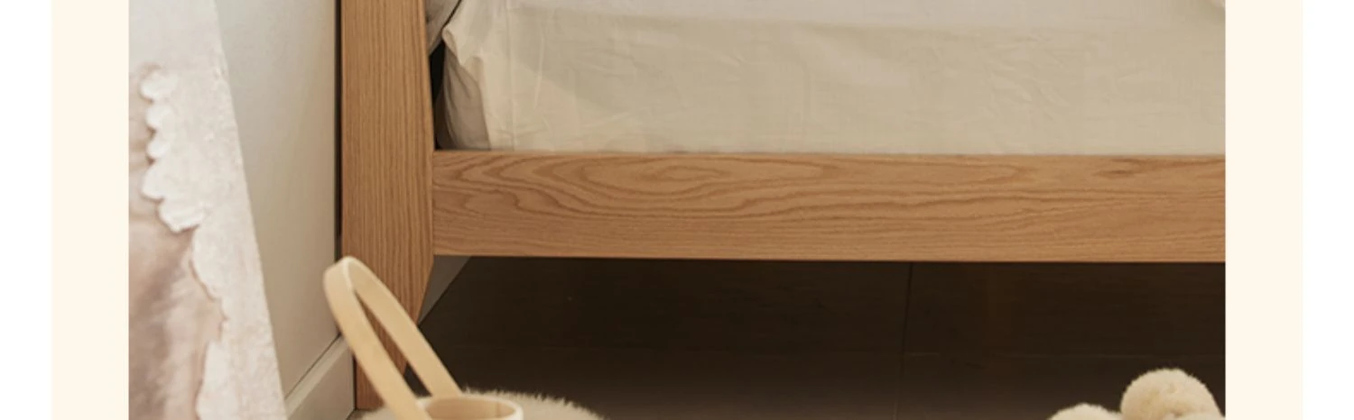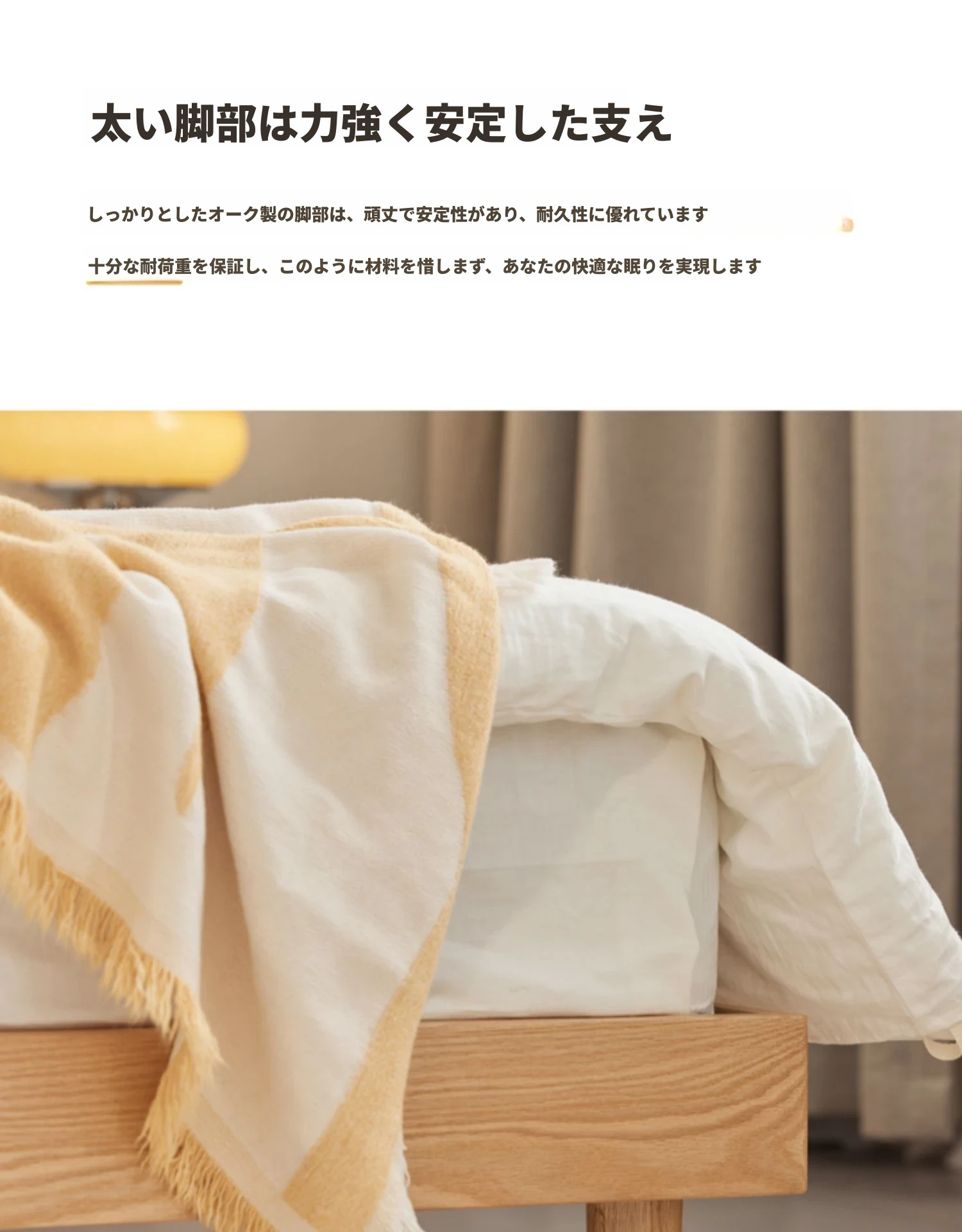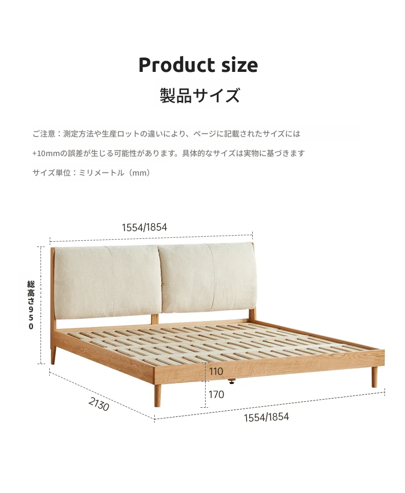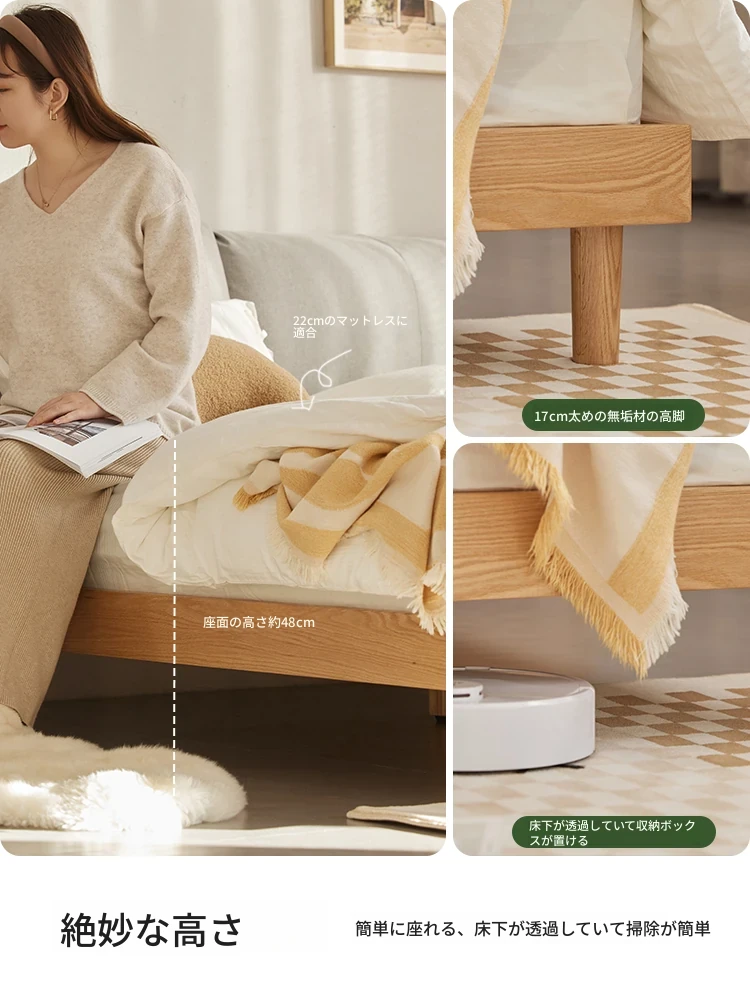 オーガニック素材使用!北欧スタイルの全木製ダブルベッド 1.8m - シンプルでモダンなデザイン、主寝室にぴったりな柔らかいオーク製ヘッドボード付き 1.5m ベッド。快適な眠りを実現します!