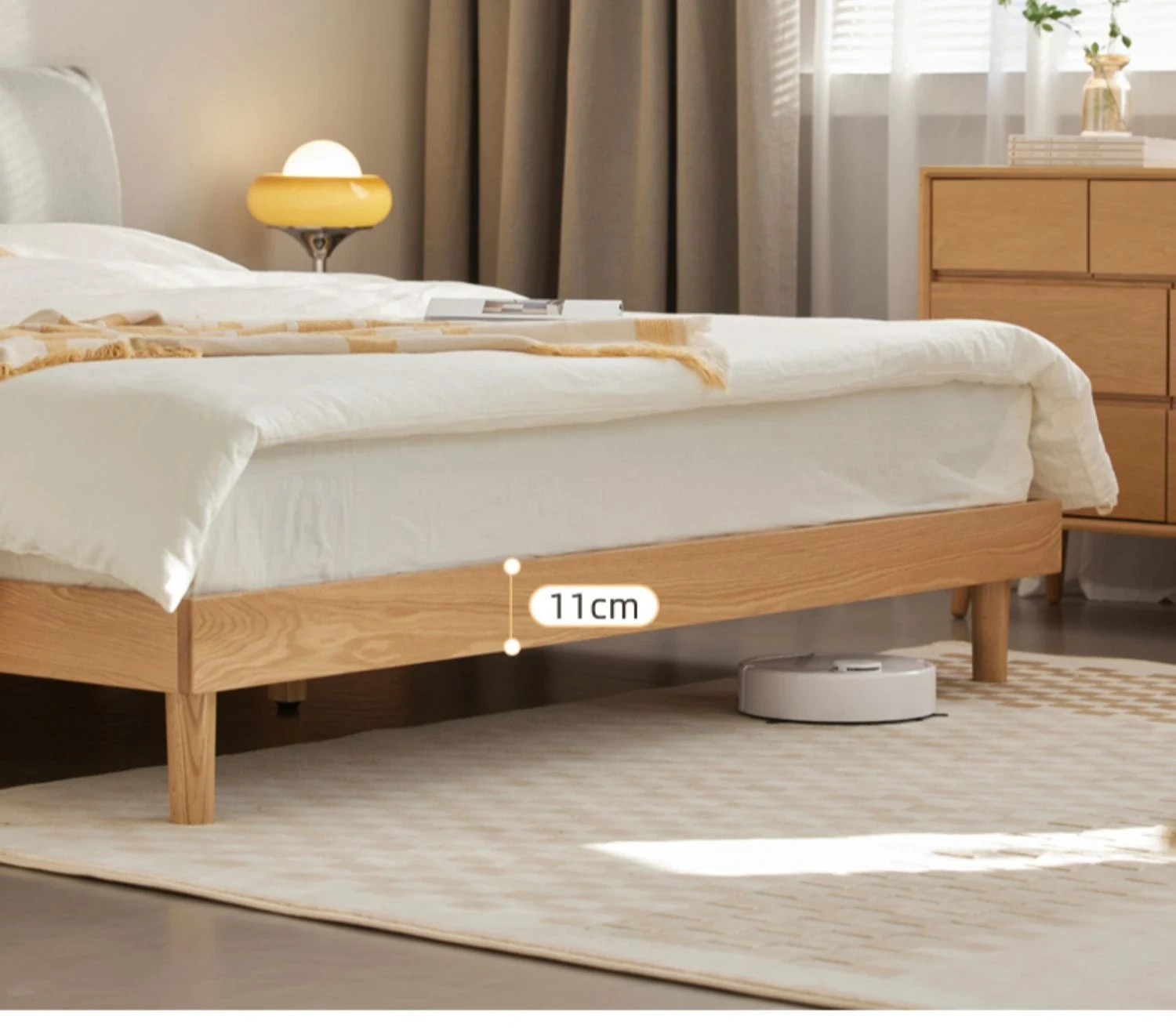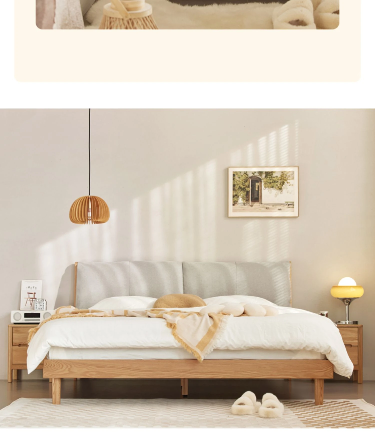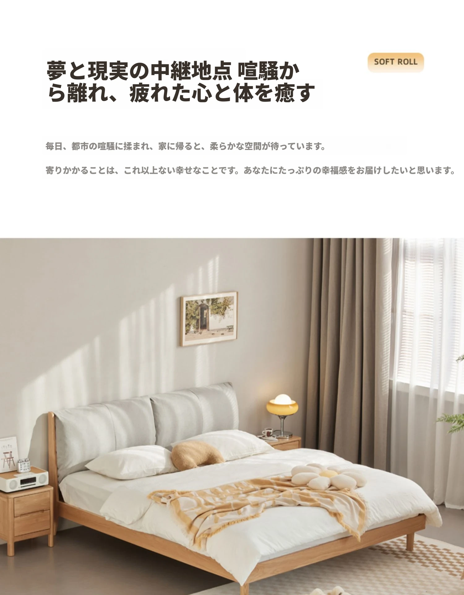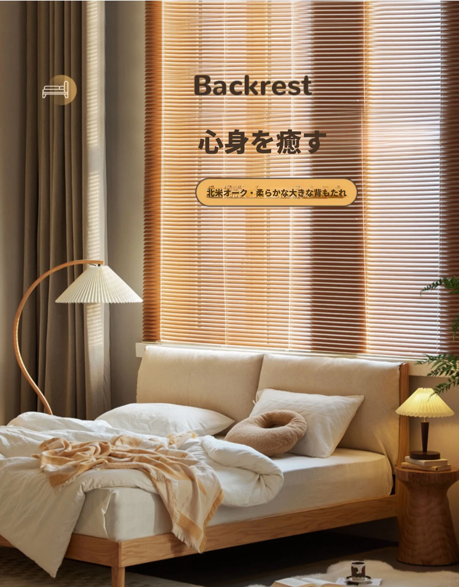 オーガニック素材使用!北欧スタイルの全木製ダブルベッド 1.8m - シンプルでモダンなデザイン、主寝室にぴったりな柔らかいオーク製ヘッドボード付き 1.5m ベッド。快適な眠りを実現します!