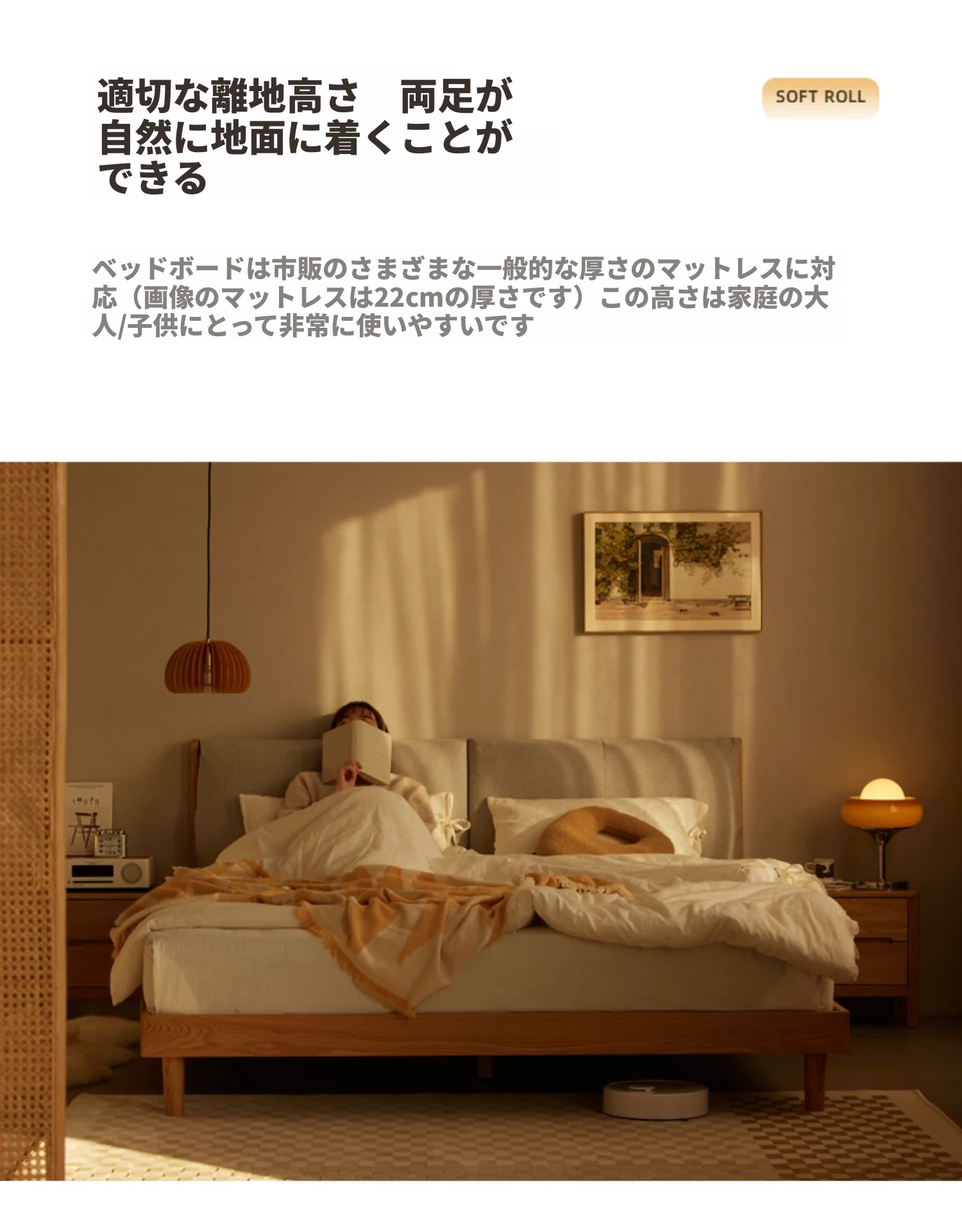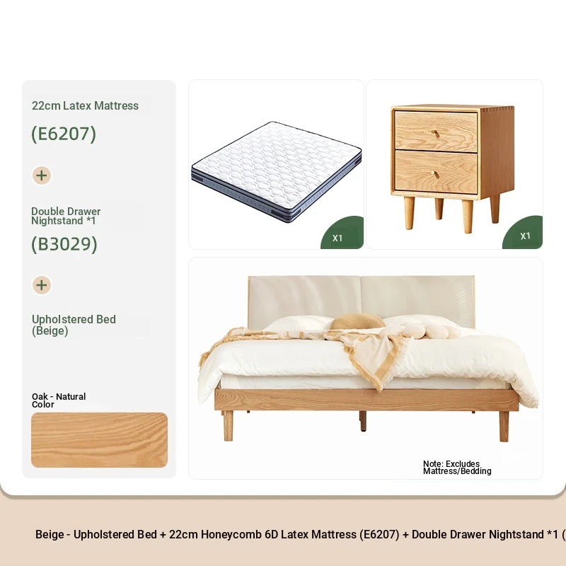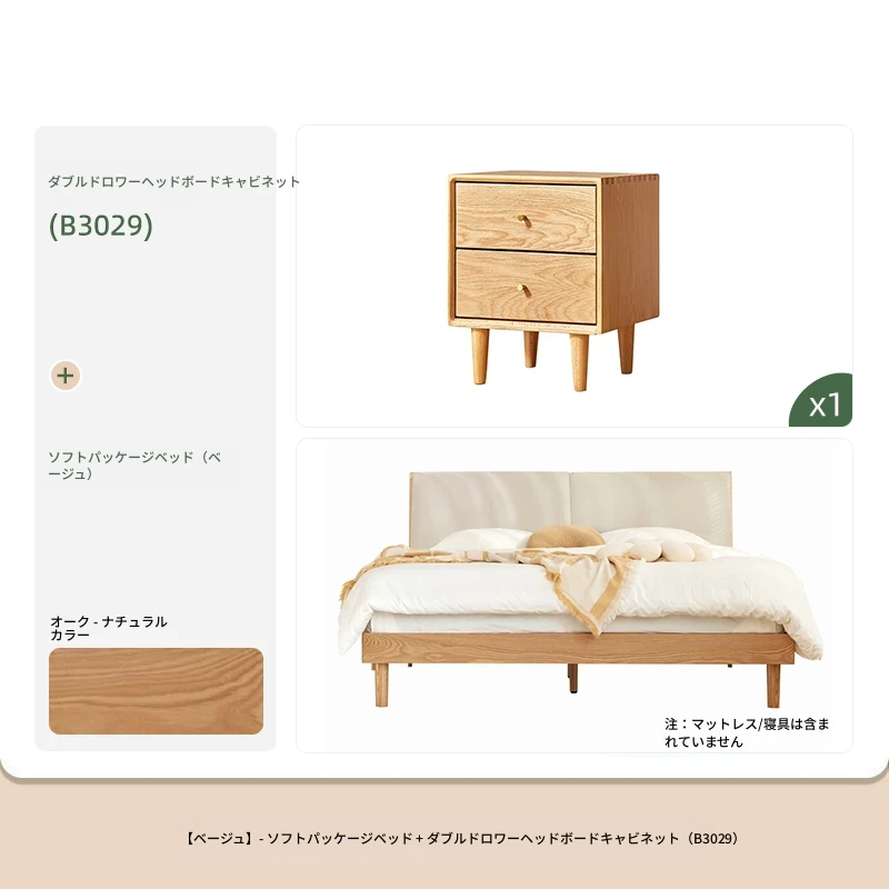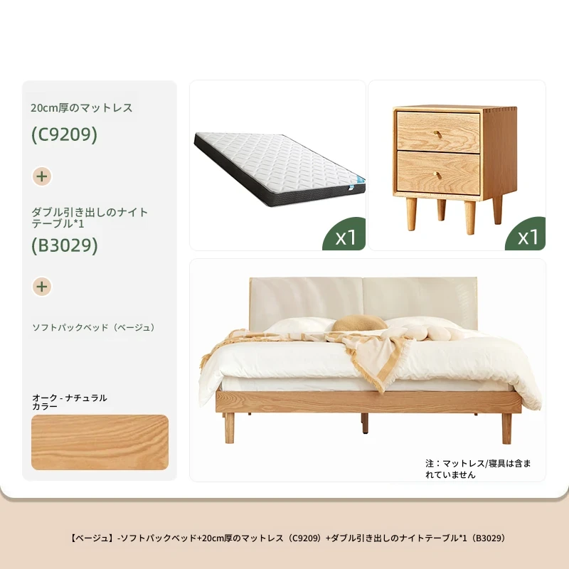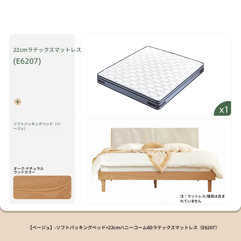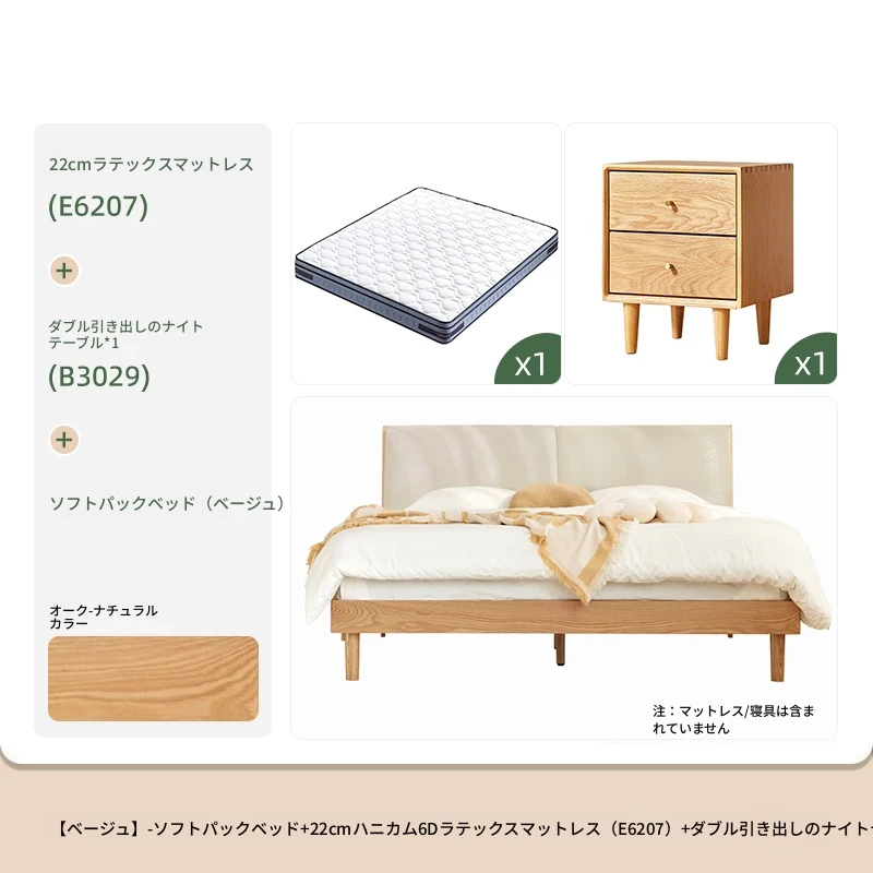 ソフトパックベッド(ベージュ)+22cmハニカム6Dラテックスマットレス(E6207)+双引き出しナイトテーブル*1(B3029)