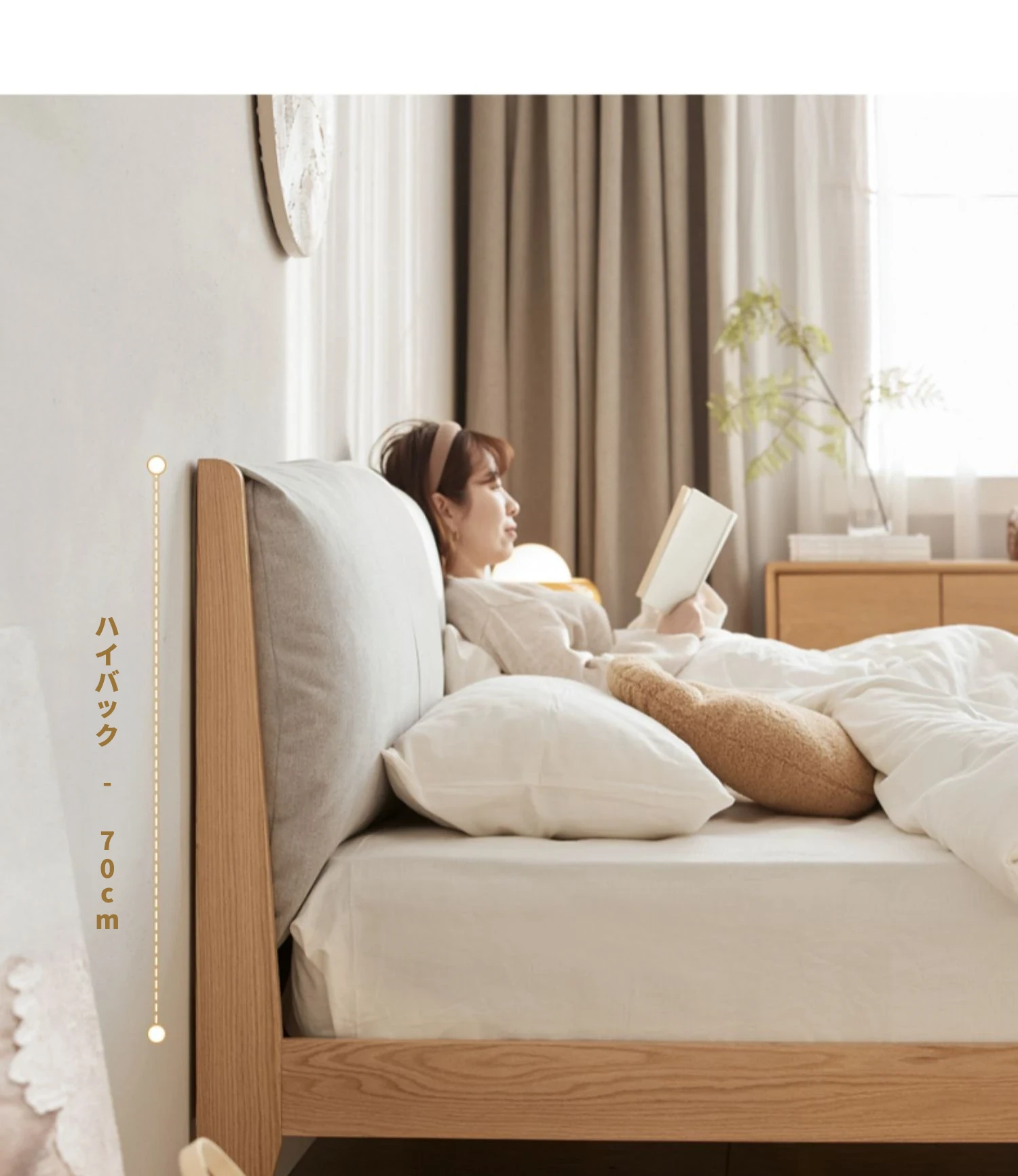 原木色-ソフトパックベッドC型(浅灰色)