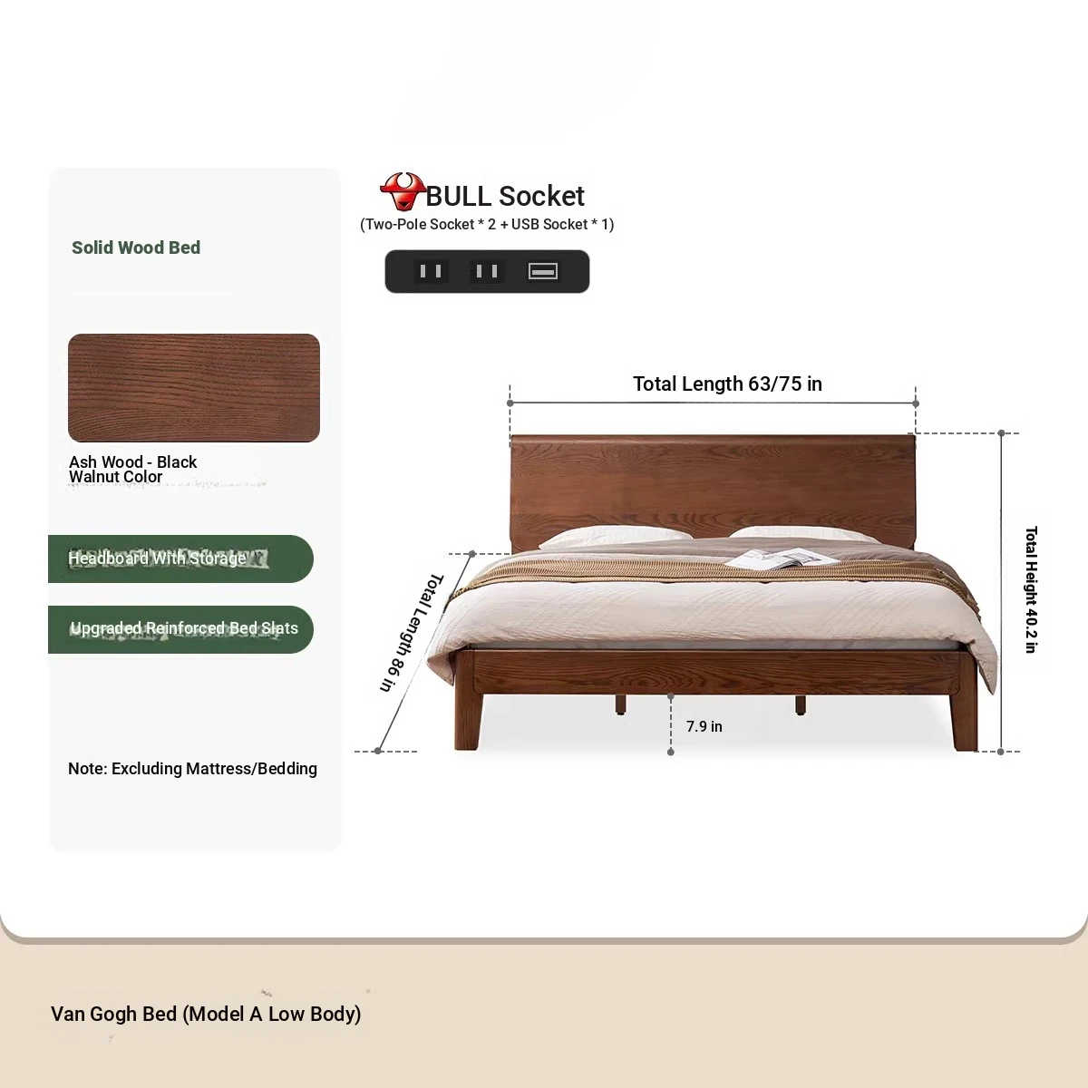 【ホワイトアッシュ-ブラックウォールナット色】バンゴベッド(Aタイプ低タイプ)