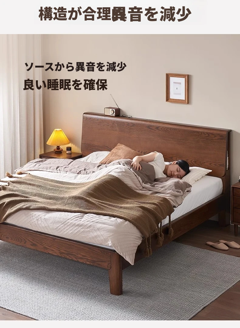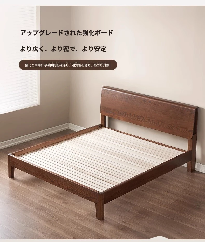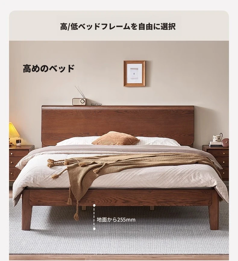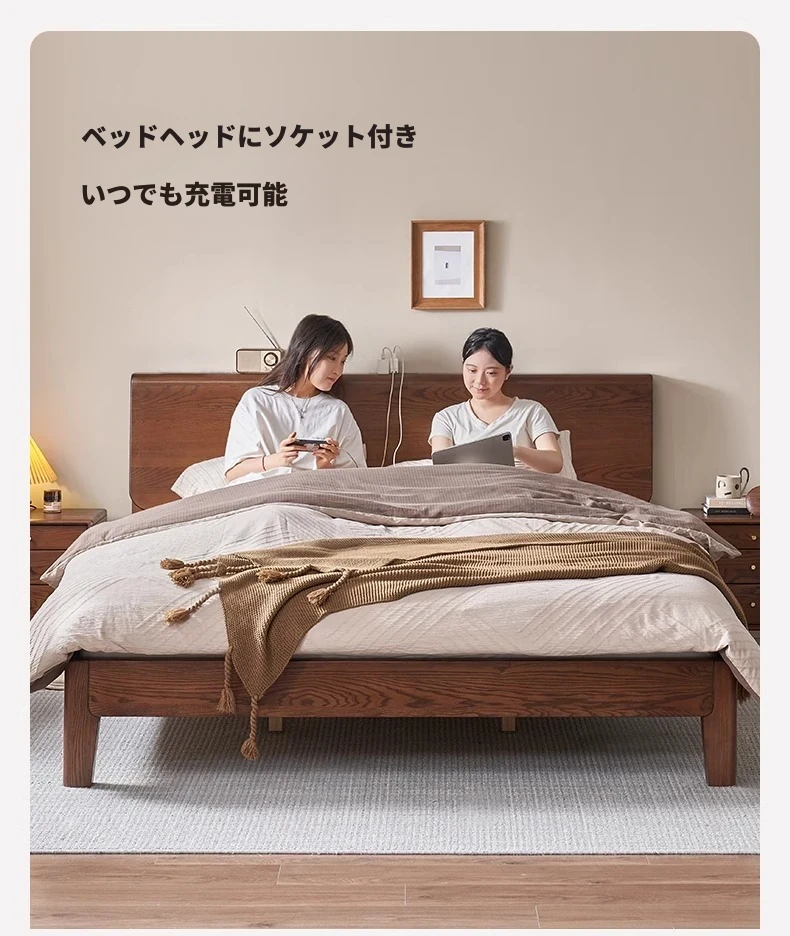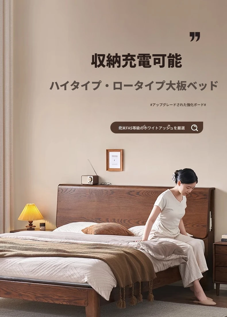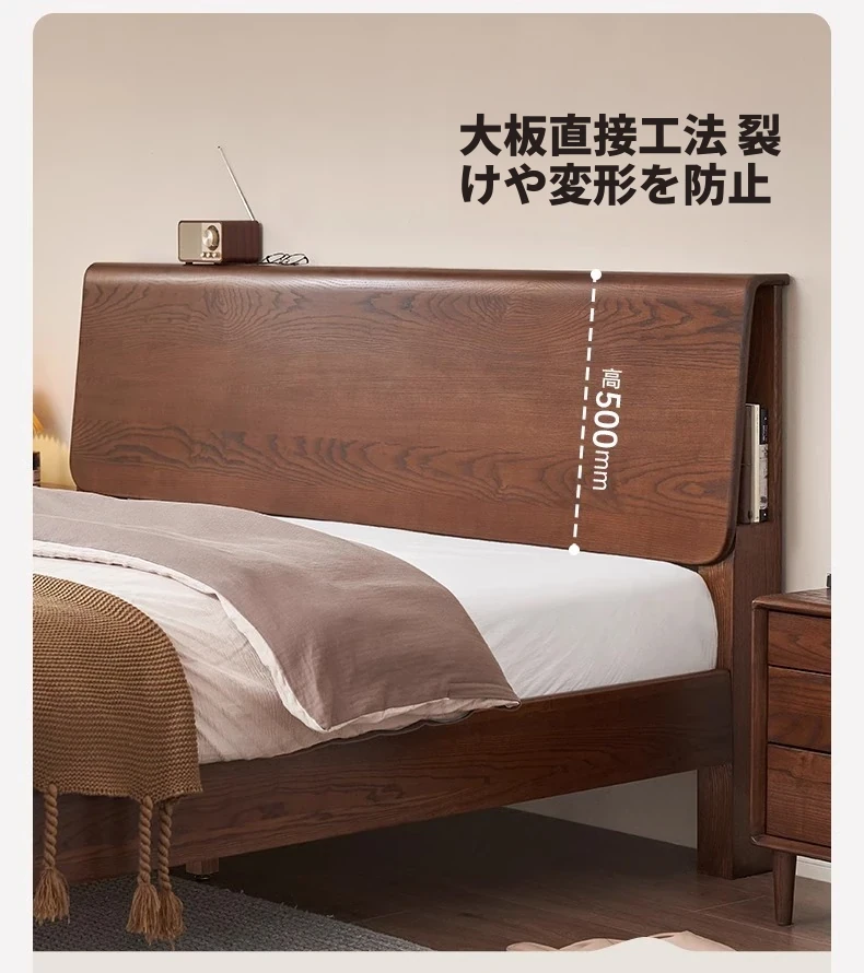 無垢材使用!デザイン性抜群のホワイトアッシュとウォールナットの2色展開。北欧スタイルのダブルベッド、コンパクトなお部屋に最適な大板ベッド。おしゃれで快適な睡眠空間をあなたに。