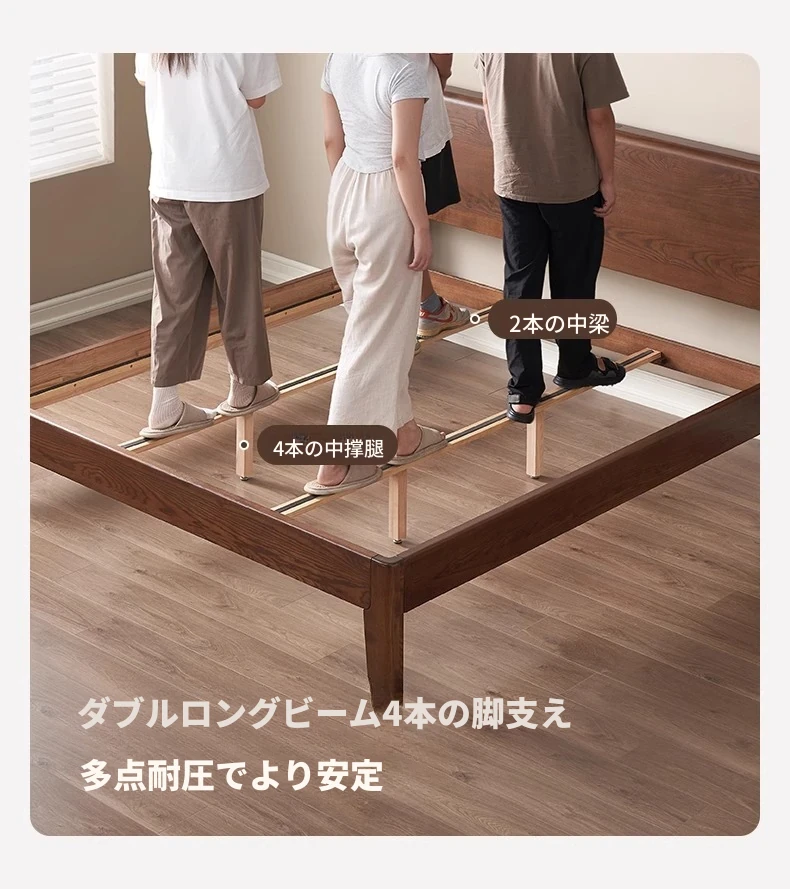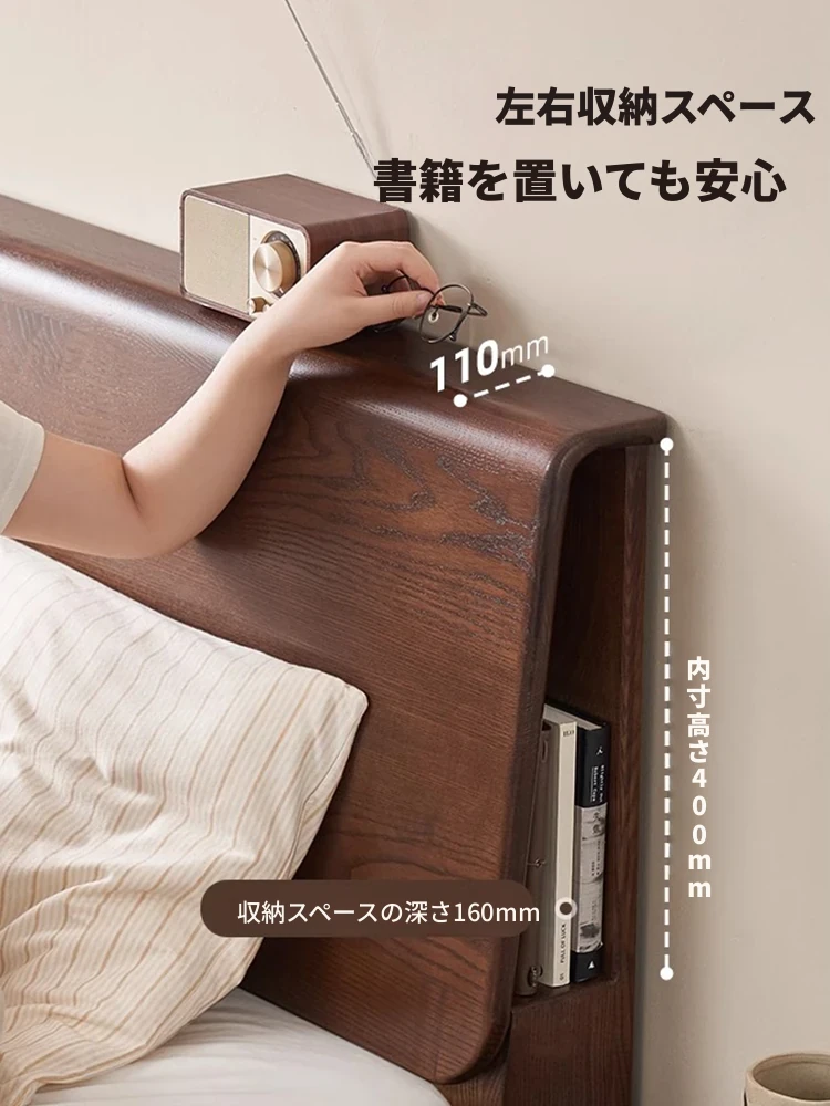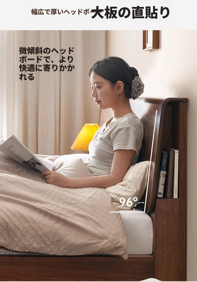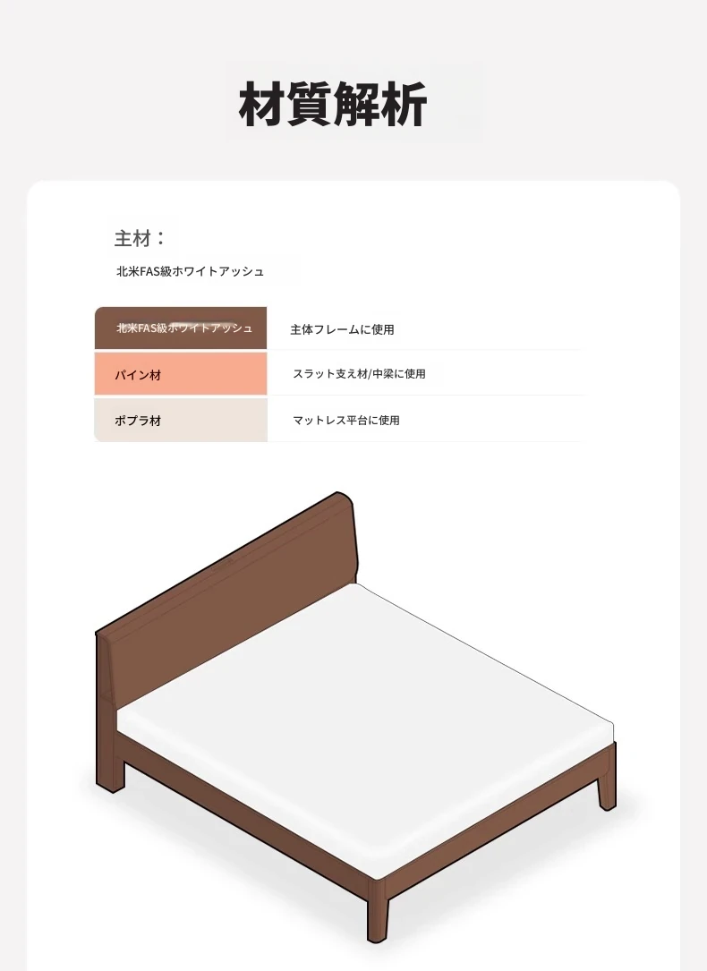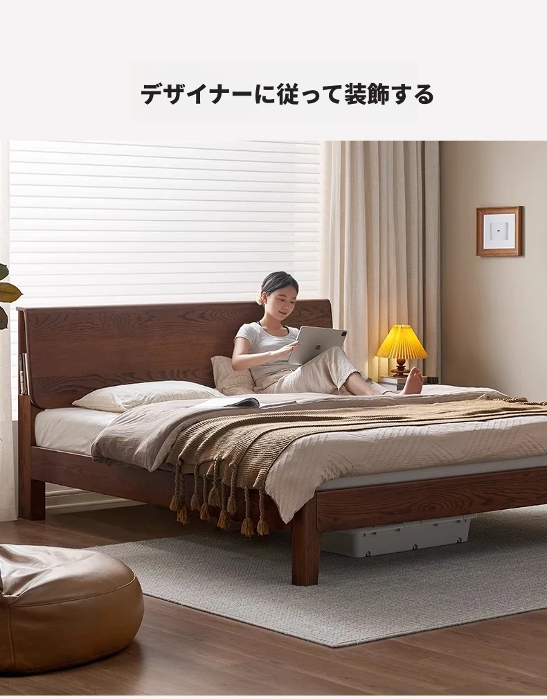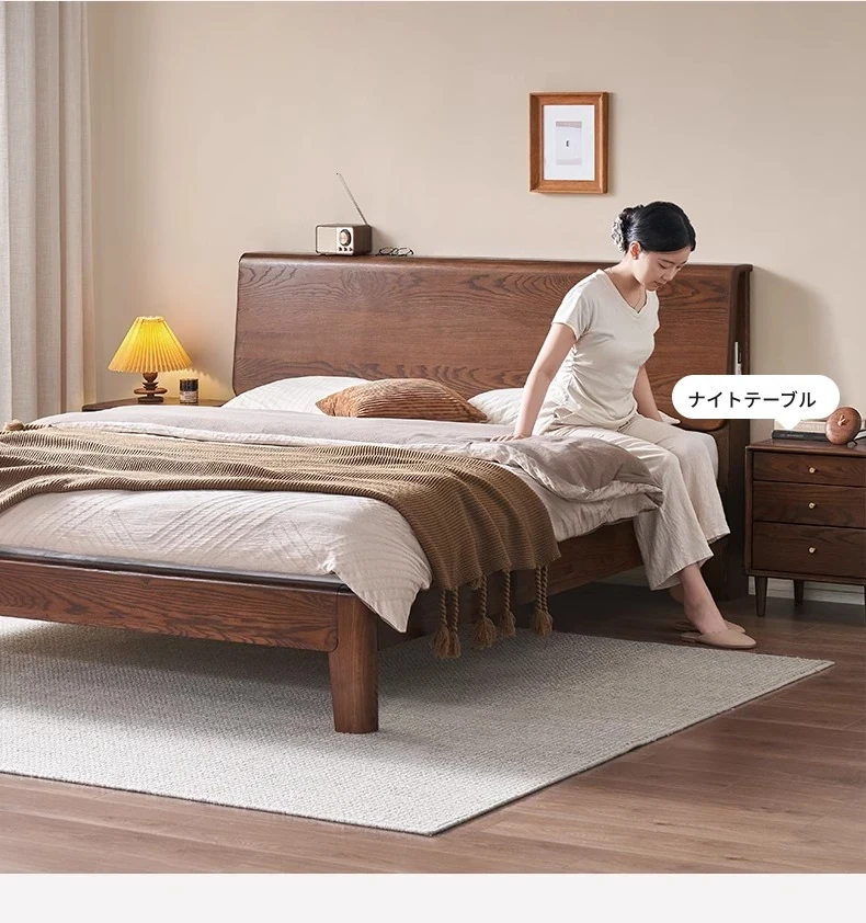無垢材使用!デザイン性抜群のホワイトアッシュとウォールナットの2色展開。北欧スタイルのダブルベッド、コンパクトなお部屋に最適な大板ベッド。おしゃれで快適な睡眠空間をあなたに。