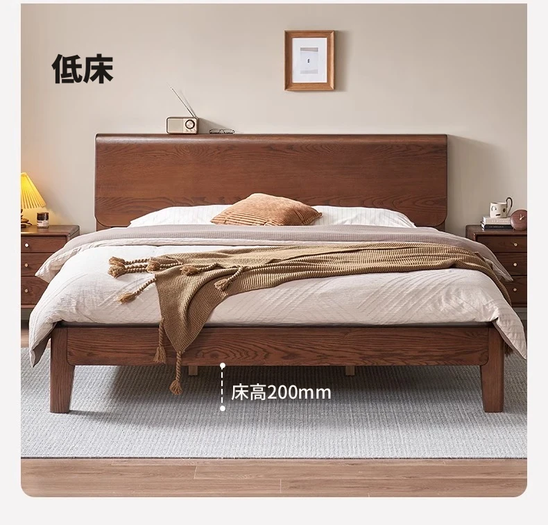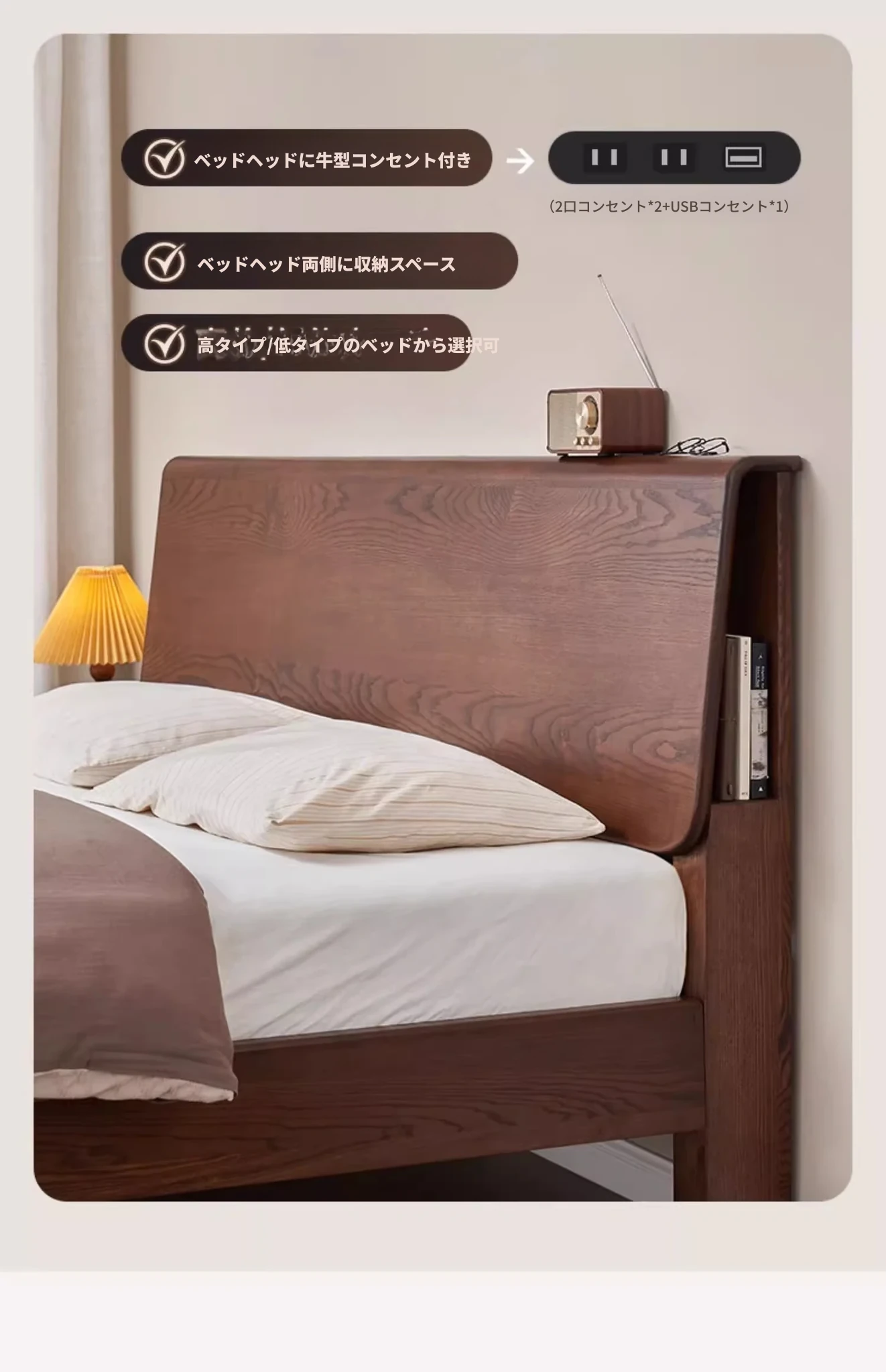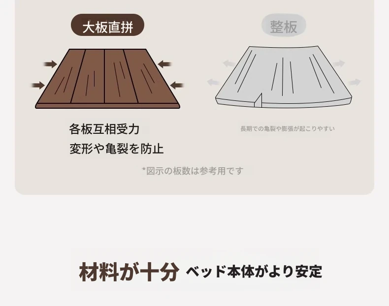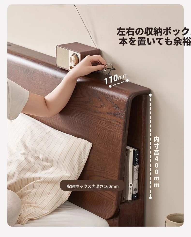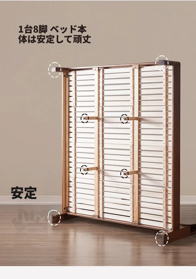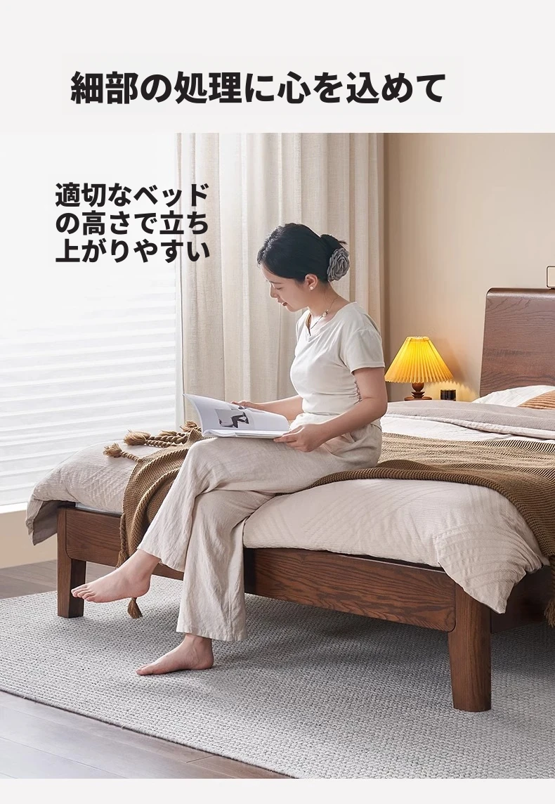無垢材使用!デザイン性抜群のホワイトアッシュとウォールナットの2色展開。北欧スタイルのダブルベッド、コンパクトなお部屋に最適な大板ベッド。おしゃれで快適な睡眠空間をあなたに。