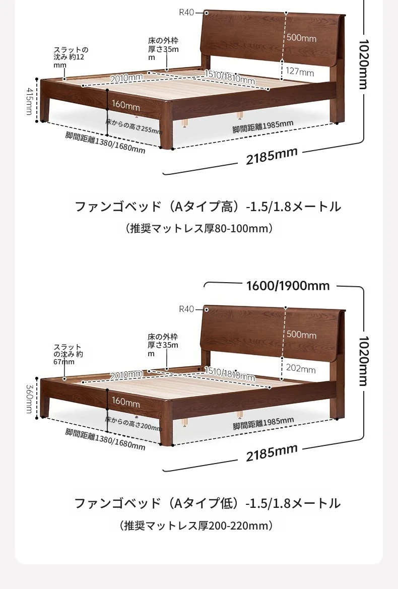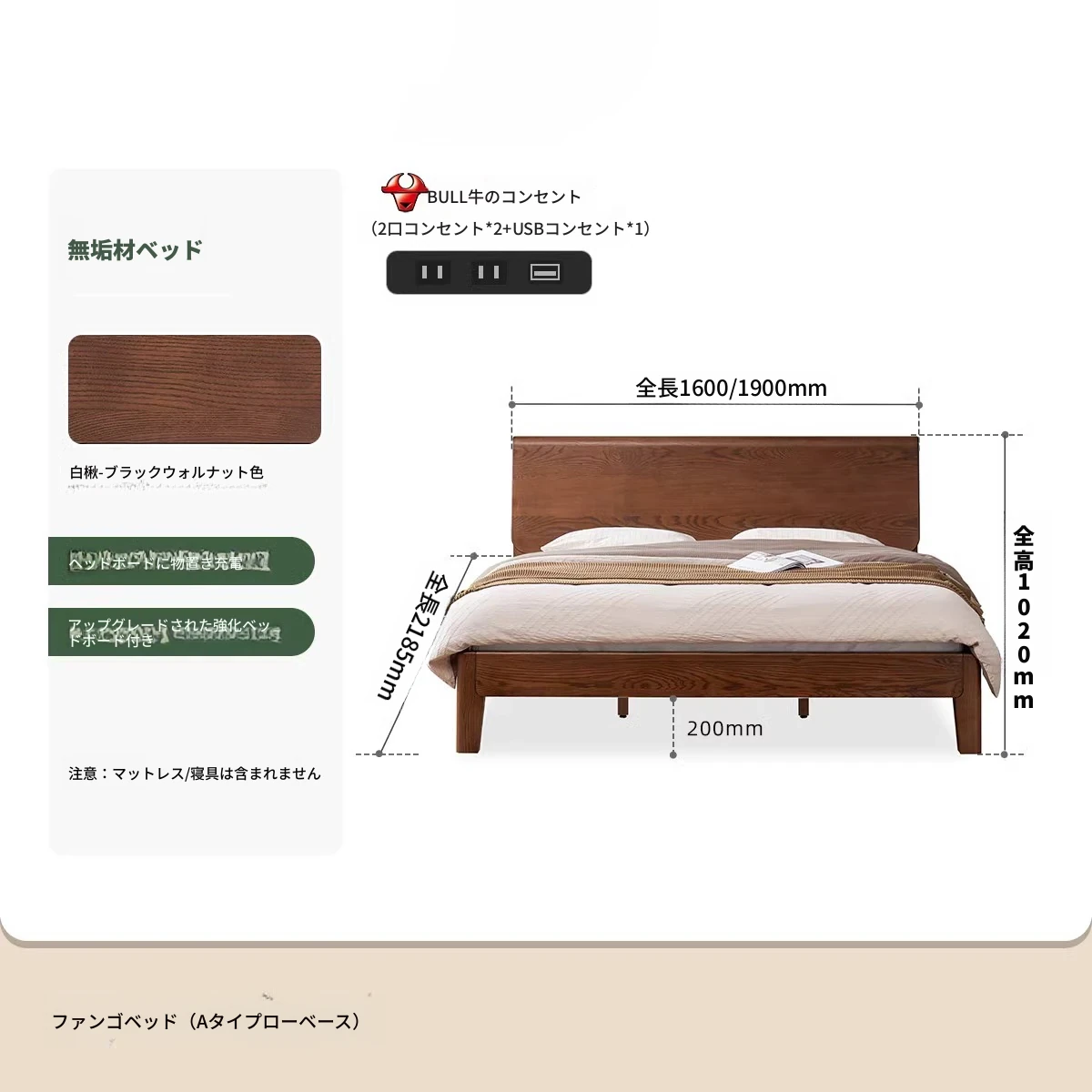 【ホワイトアッシュ-ブラックウォールナット色】バンゴベッド(Aタイプ高タイプ)