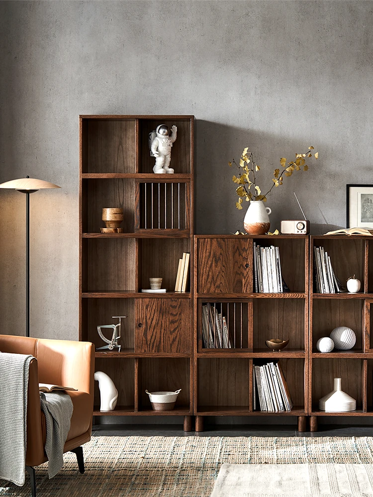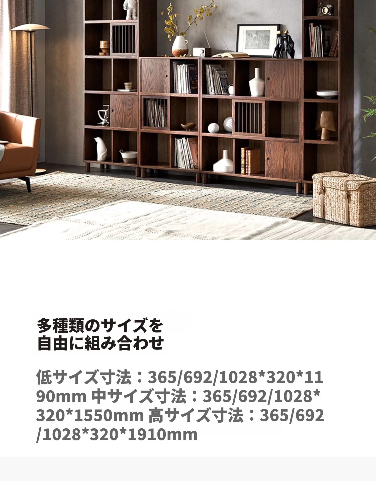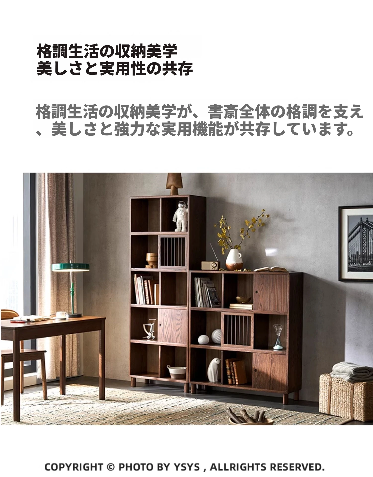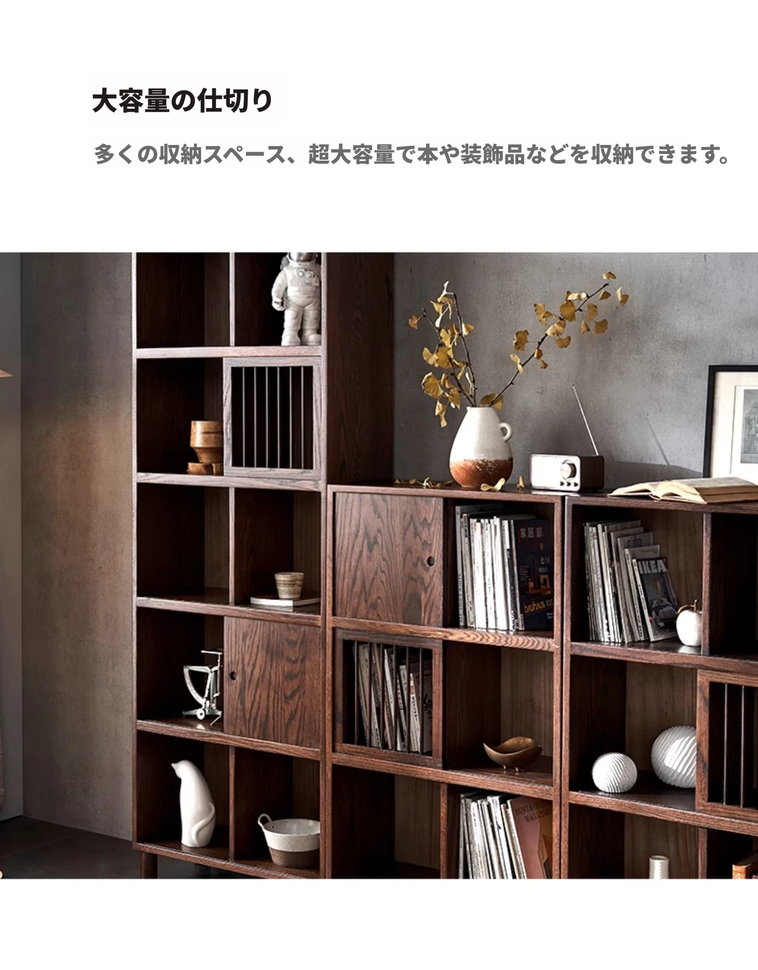 オリジナルの全実木製書棚|北欧スタイルの書斎にぴったりなDIY組み合わせ可能なモダンシンプルなリビング用オーク収納ラック|美しいデザインで、収納力抜群の理想の書斎を実現!