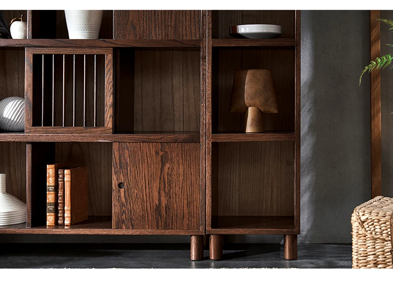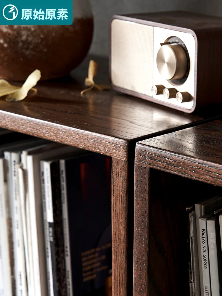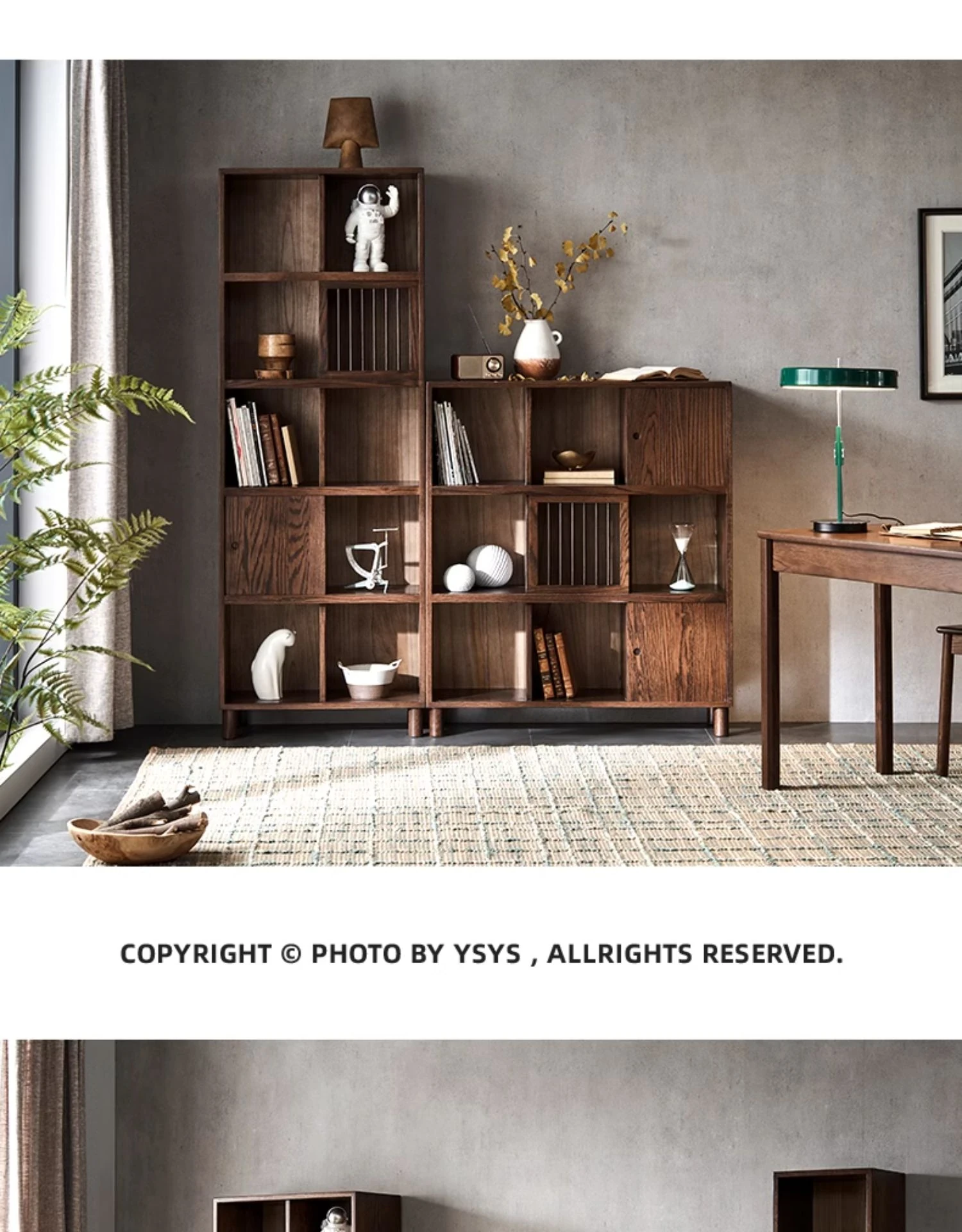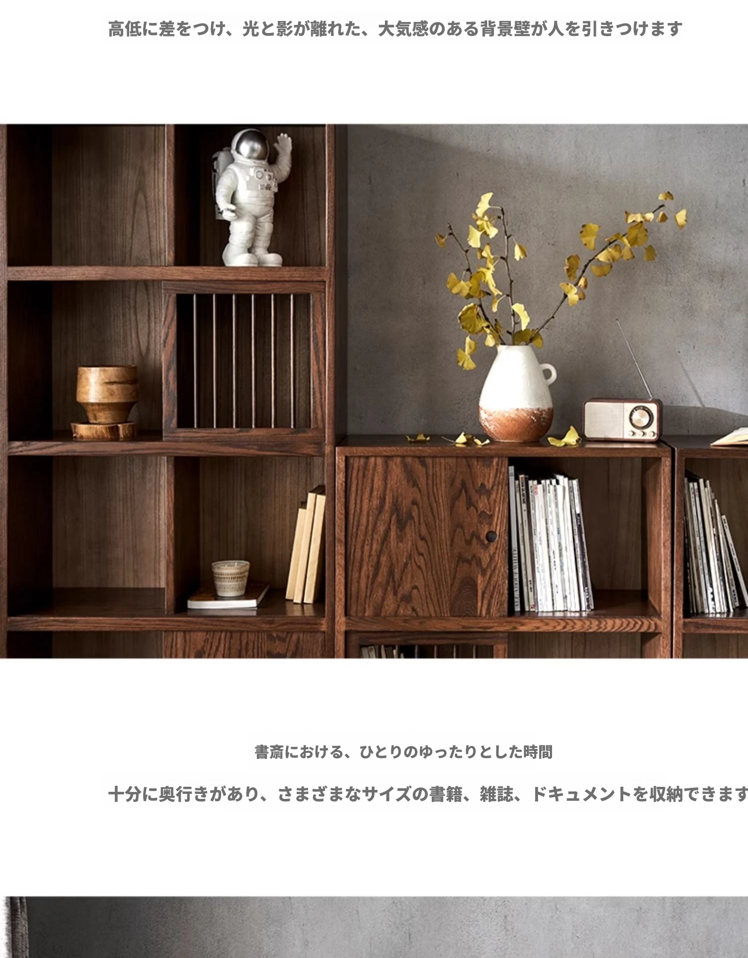 オリジナルの全実木製書棚|北欧スタイルの書斎にぴったりなDIY組み合わせ可能なモダンシンプルなリビング用オーク収納ラック|美しいデザインで、収納力抜群の理想の書斎を実現!
