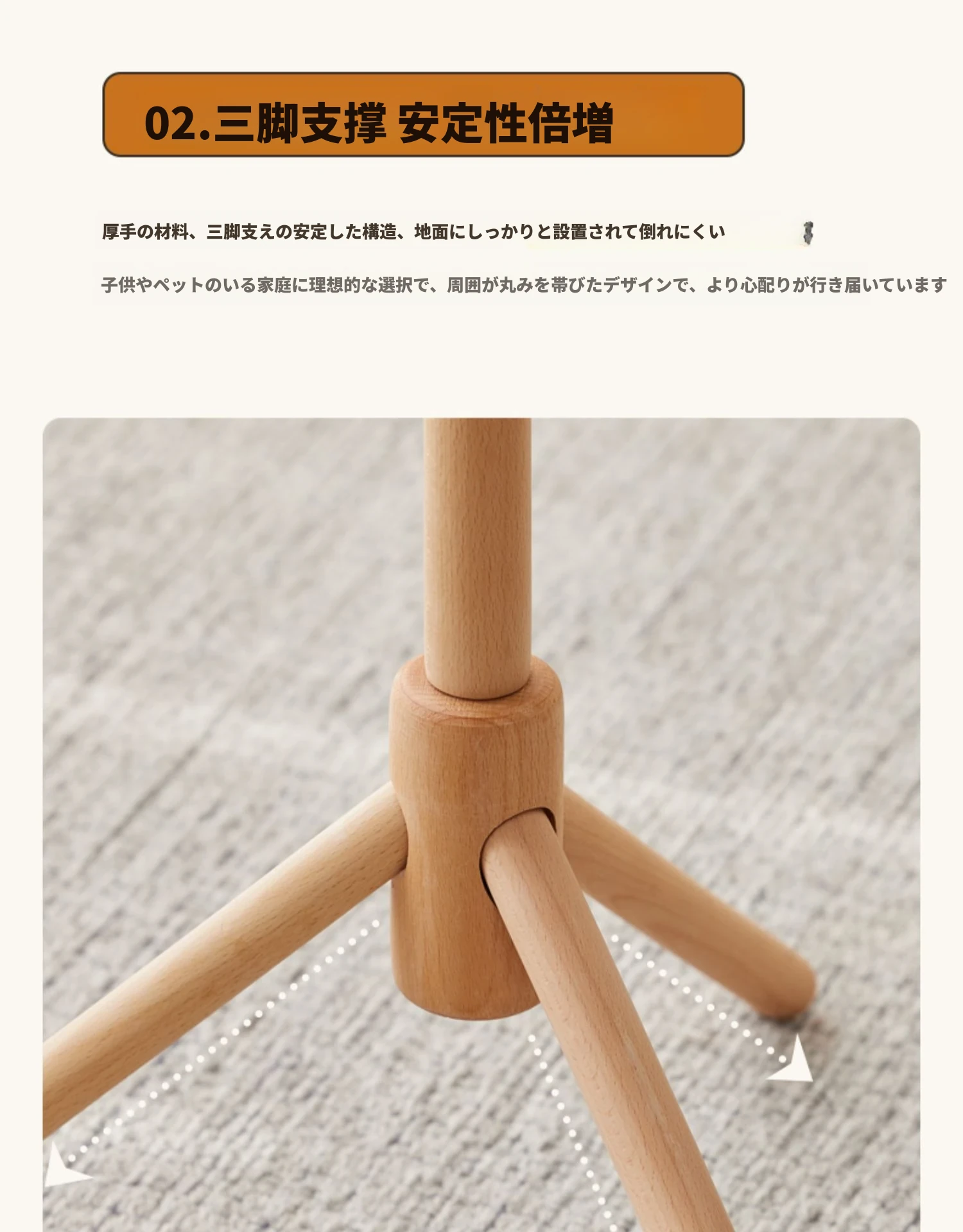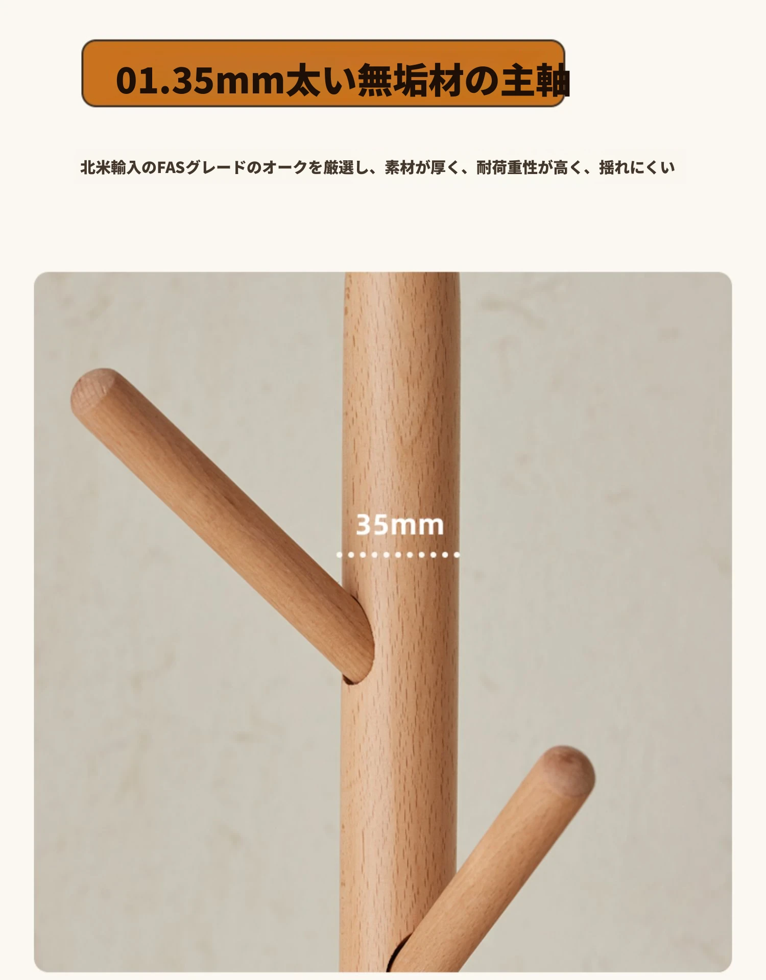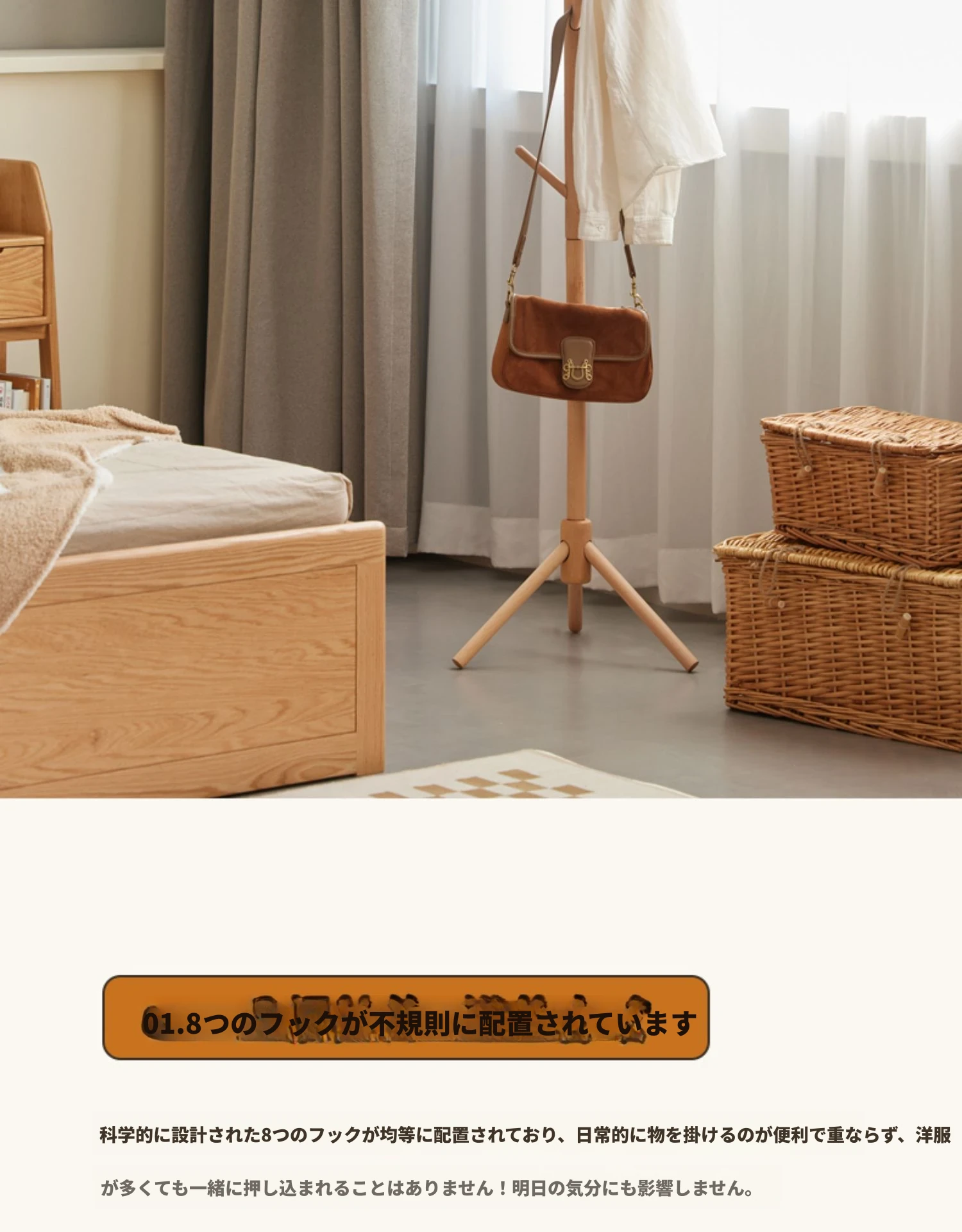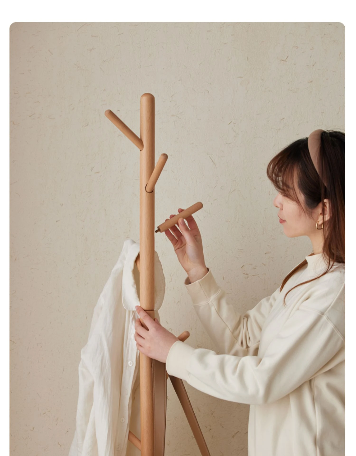 全ての無垢材を使用したモダンなシンプルデザインの衣類ハンガー - ベッドルームにぴったりな立て式ブナ材製!家での使用に最適なスタイリッシュなハンガーラック。
