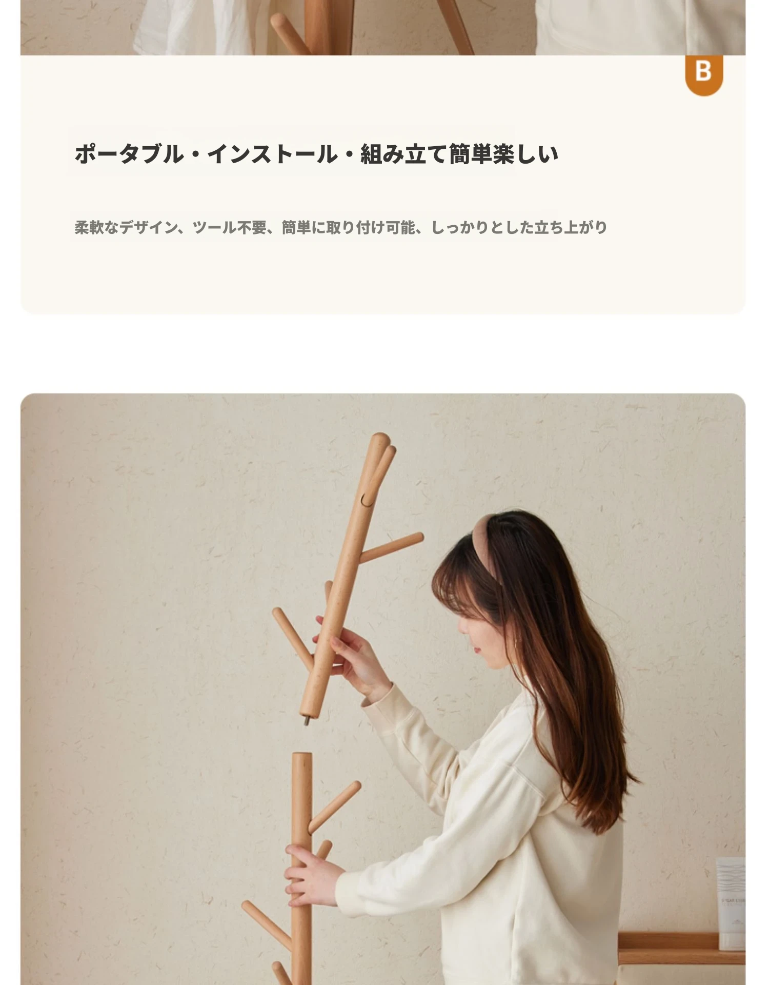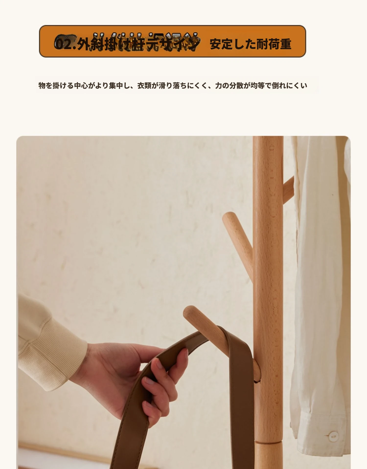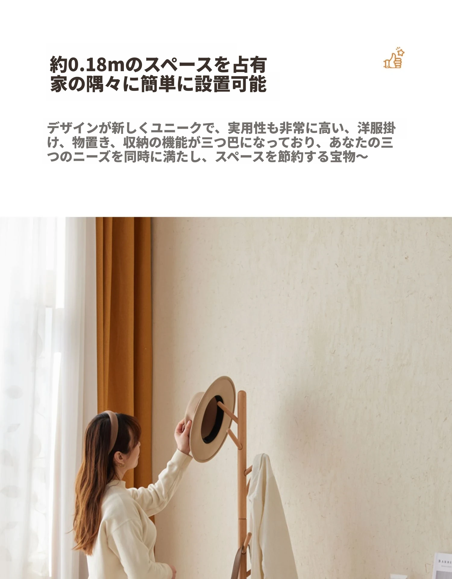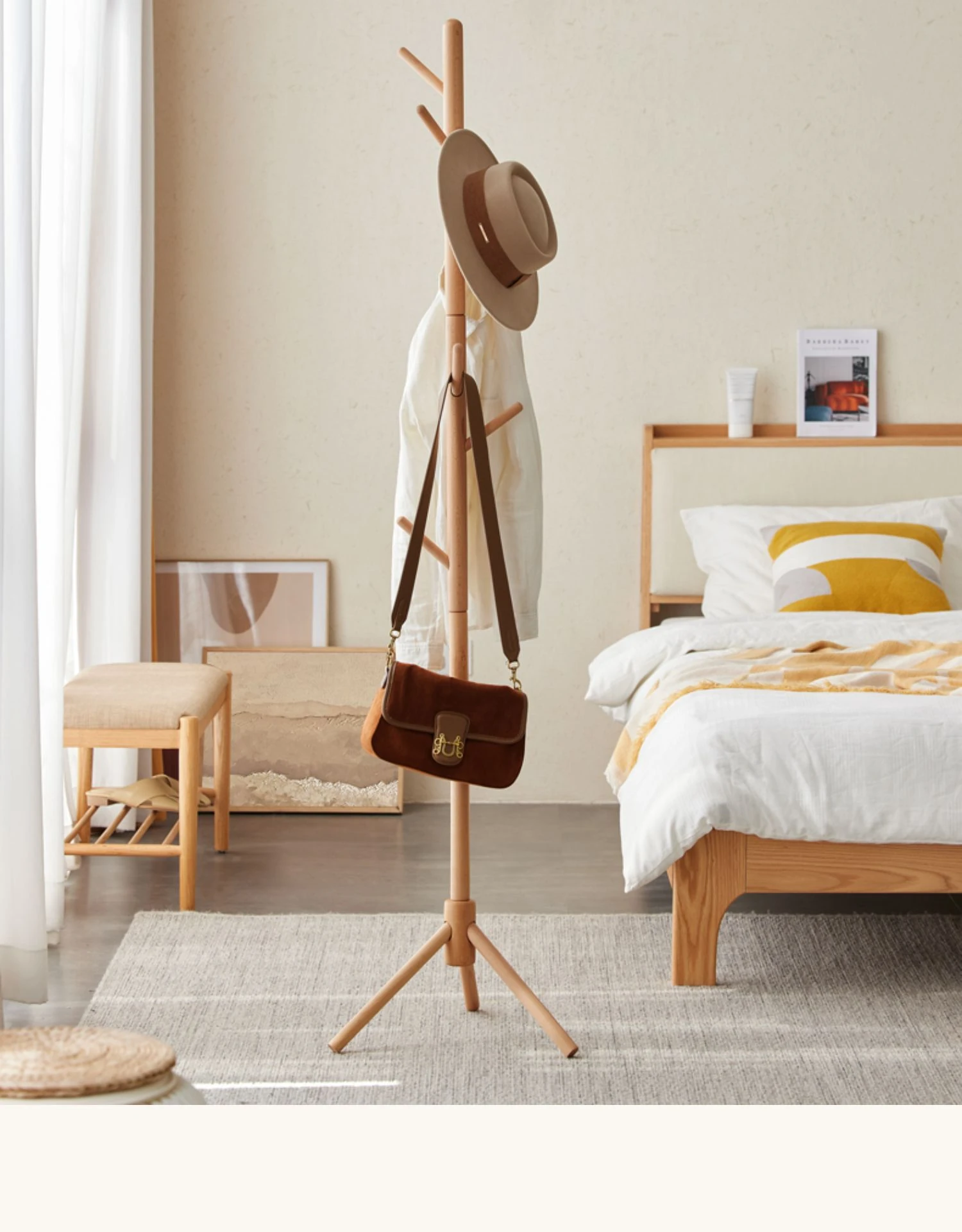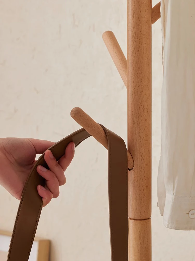 全ての無垢材を使用したモダンなシンプルデザインの衣類ハンガー - ベッドルームにぴったりな立て式ブナ材製!家での使用に最適なスタイリッシュなハンガーラック。