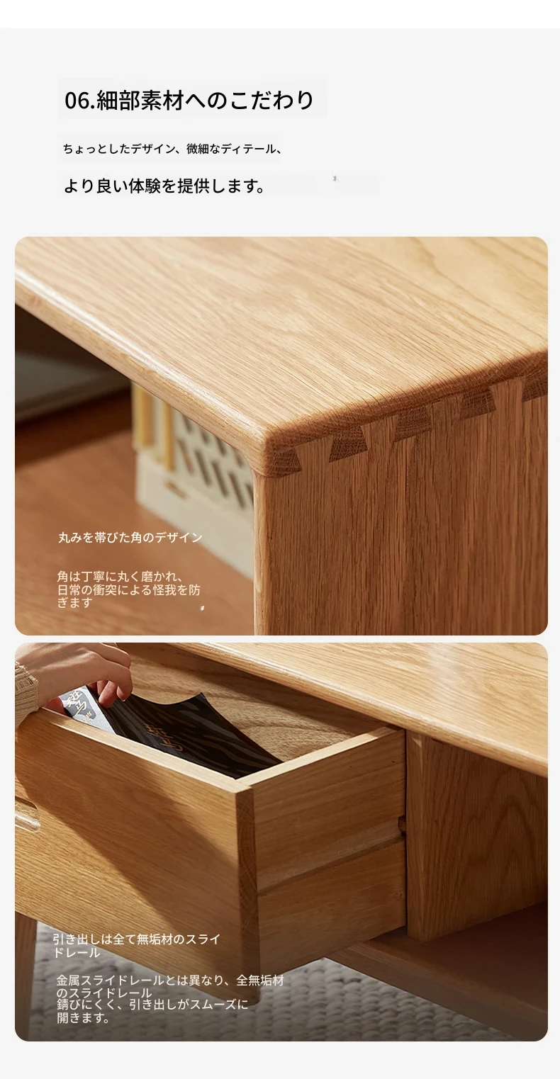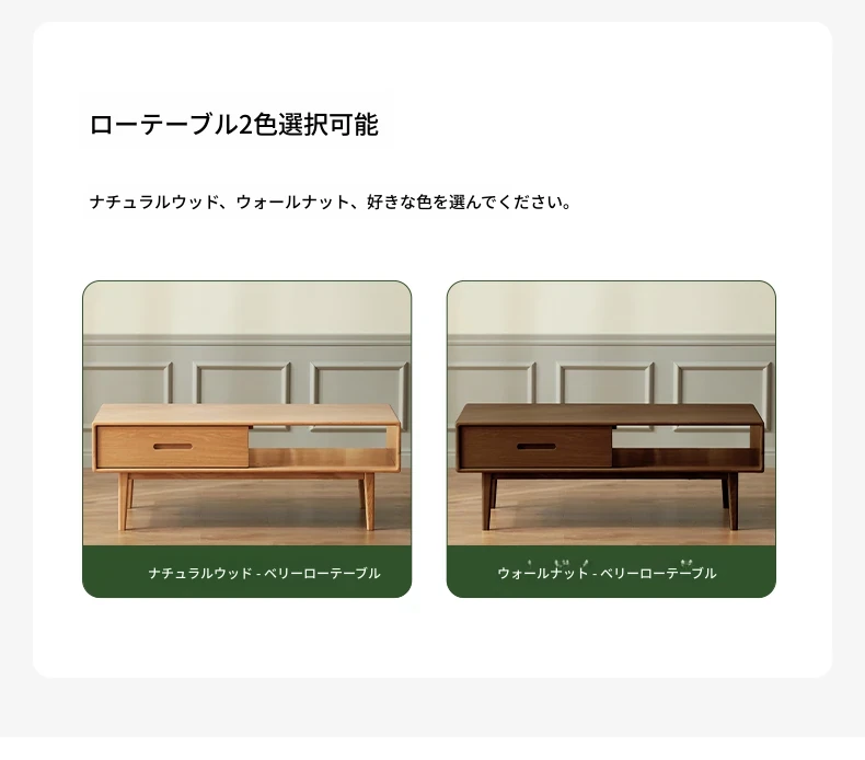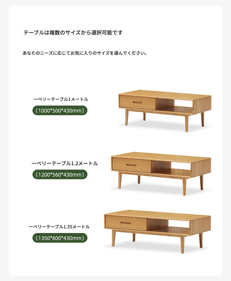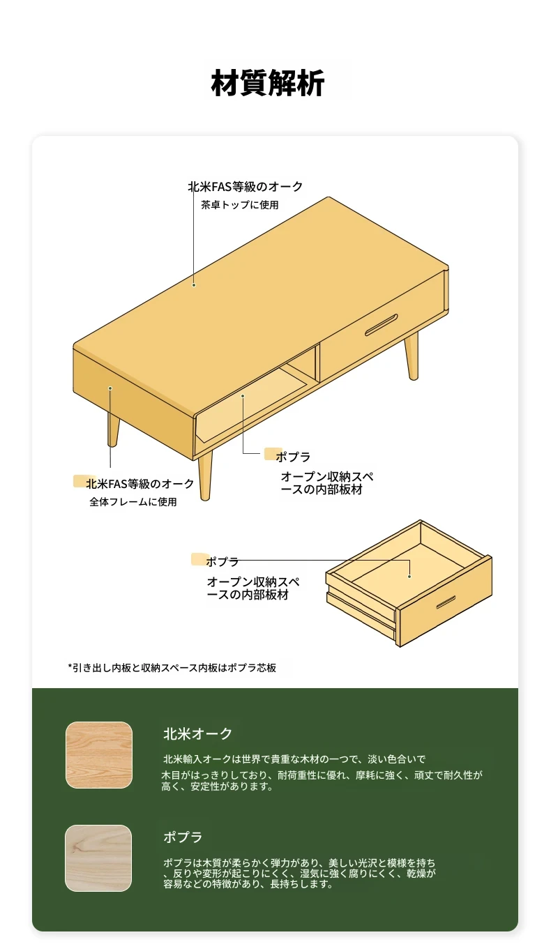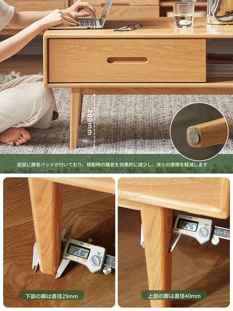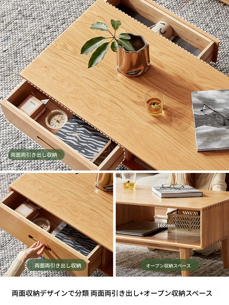 北欧風のシンプルな無垢材のコーヒーテーブル - 小さなリビングにぴったりなオーク製の収納付きティーテーブル!おしゃれなデザインで、くつろぎのひとときを演出します。