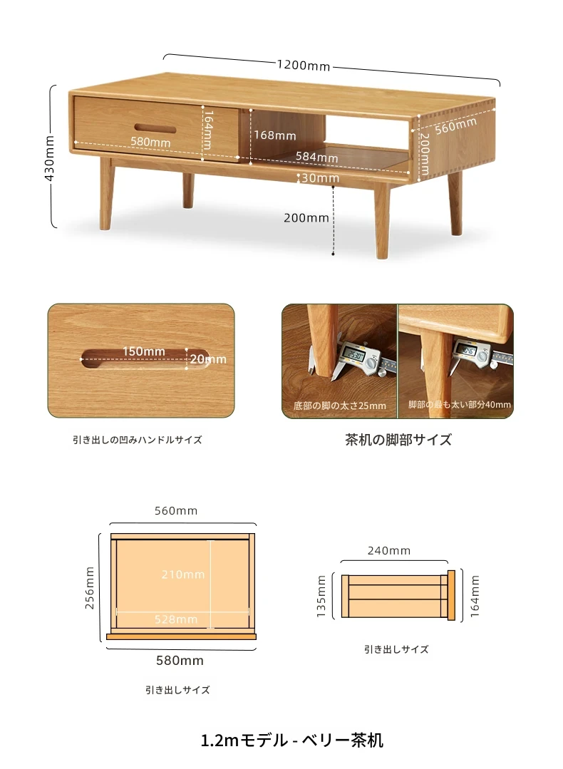 原木色-1.2m2抽1格茶几(B款) 1200*560*430mm
