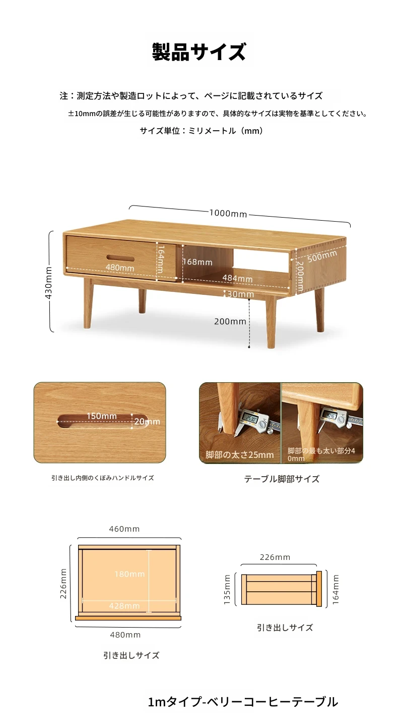 原木色-1.0m2抽1格茶几(B款) 1000*500*430mm