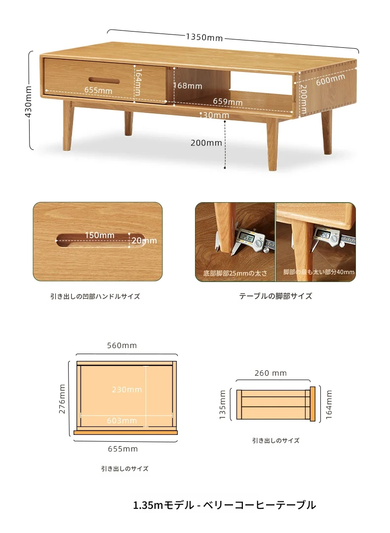 原木色-1.35m2抽1格茶几(B款) 1350*600*430mm