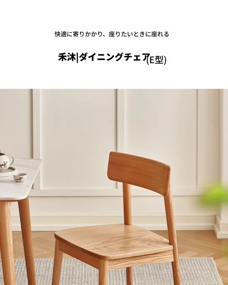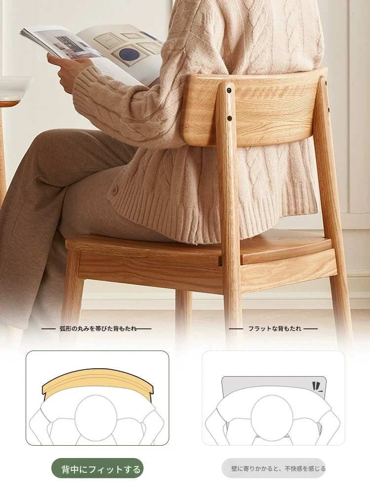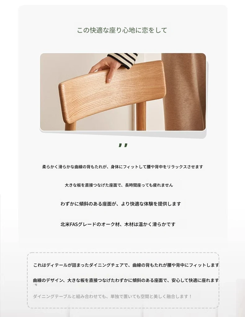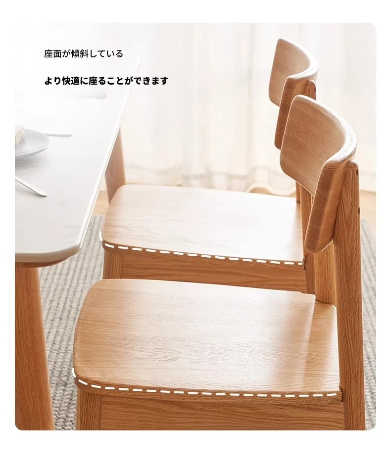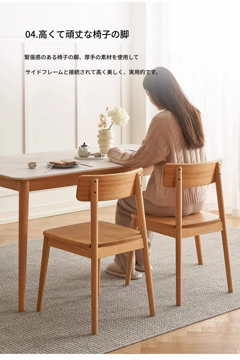 オーガニック素材全木製ダイニングチェア|モダンシンプルデザイン|快適な背もたれ|高品質オーク素材|おしゃれな食卓にぴったり|家庭用ダイニングテーブル用椅子