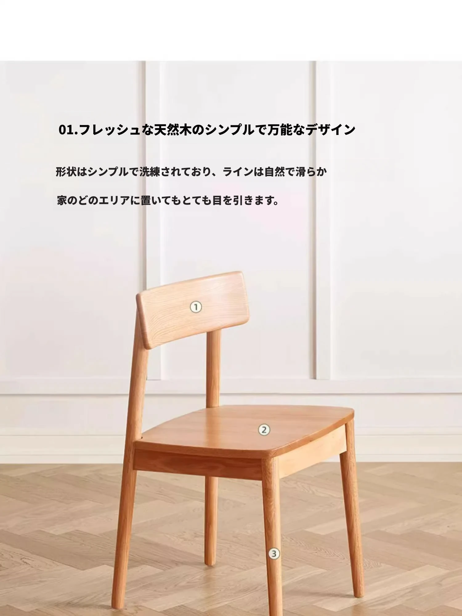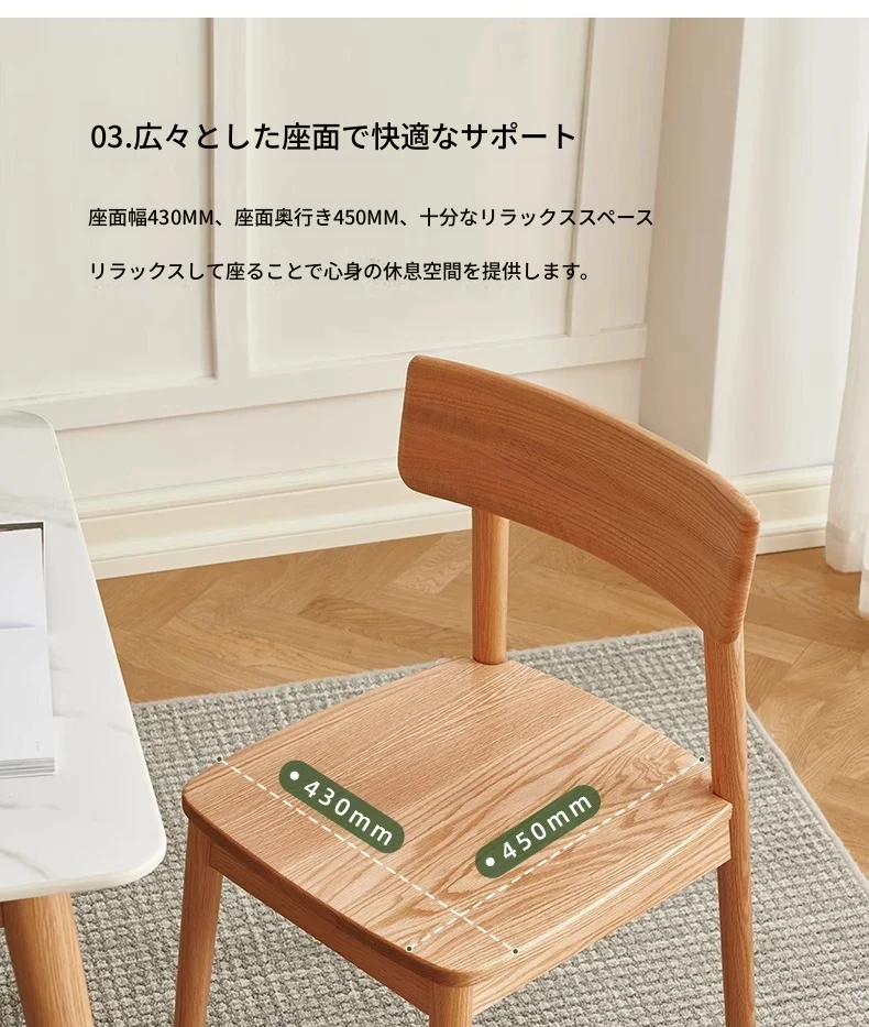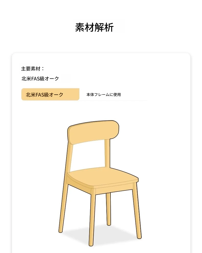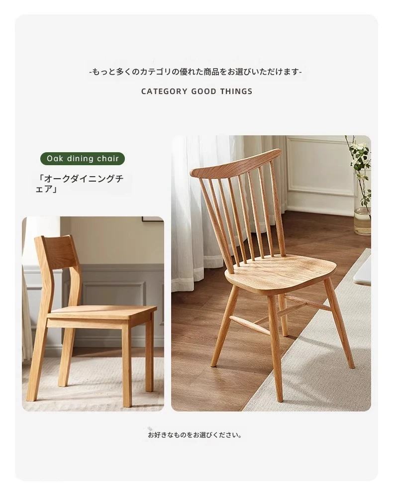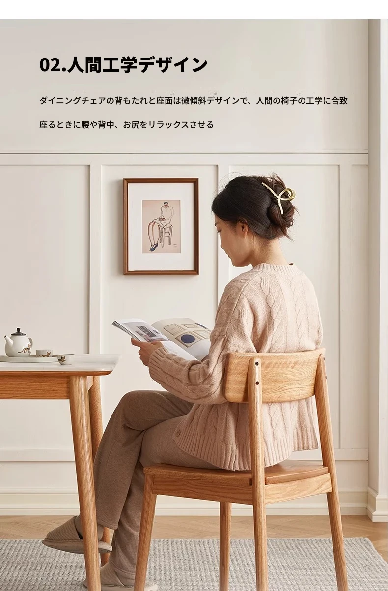 オーガニック素材全木製ダイニングチェア|モダンシンプルデザイン|快適な背もたれ|高品質オーク素材|おしゃれな食卓にぴったり|家庭用ダイニングテーブル用椅子