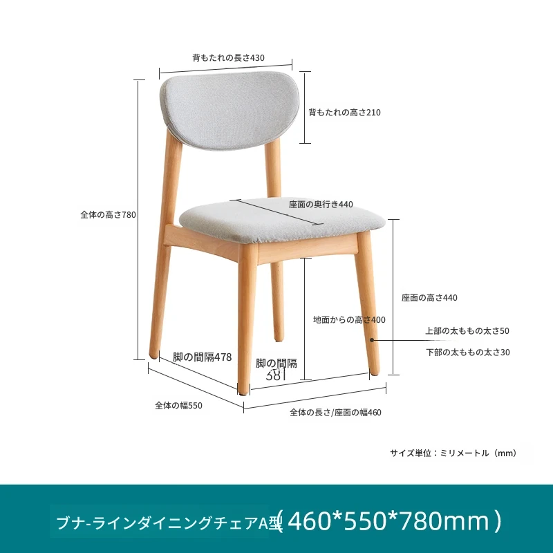 ナチュラルカラー-ブナラインダイニングチェアAタイプ1脚(H6121)グレークッション
