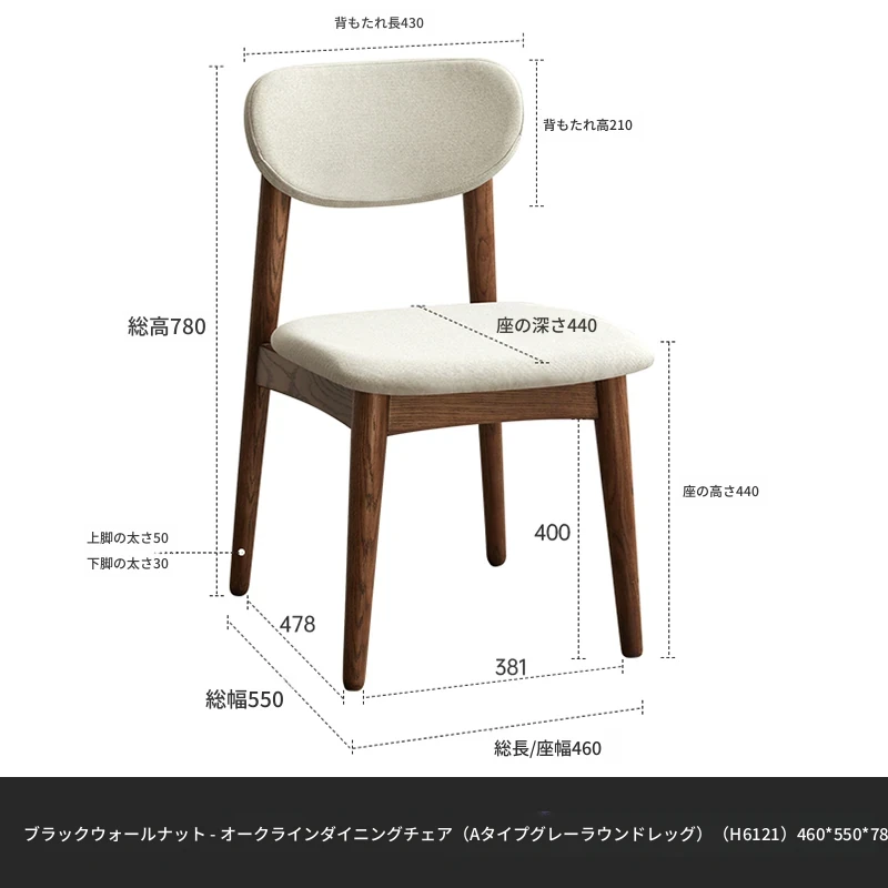 黒胡桃色-オークカモディナイングチェア(A5122)