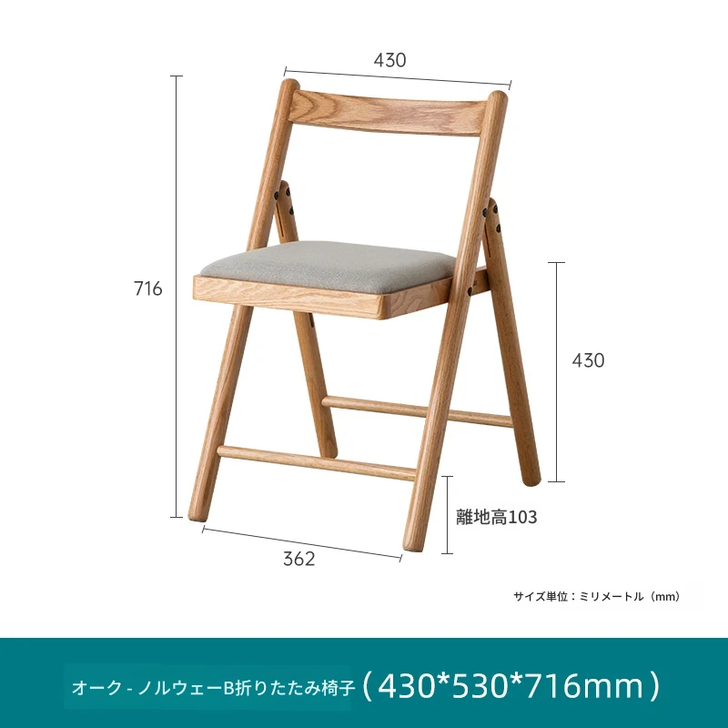 ナチュラルカラー-オーク折りたたみ椅子1脚(A3123)グレークッション