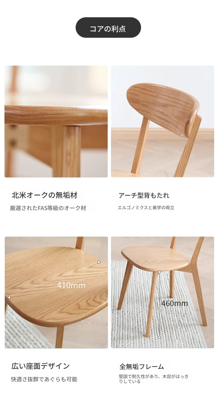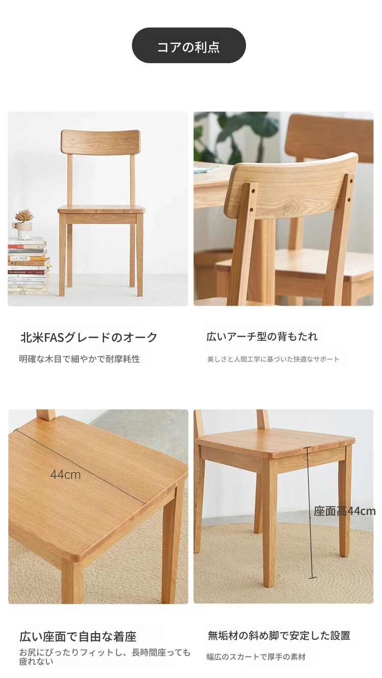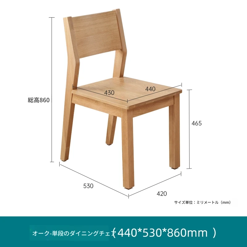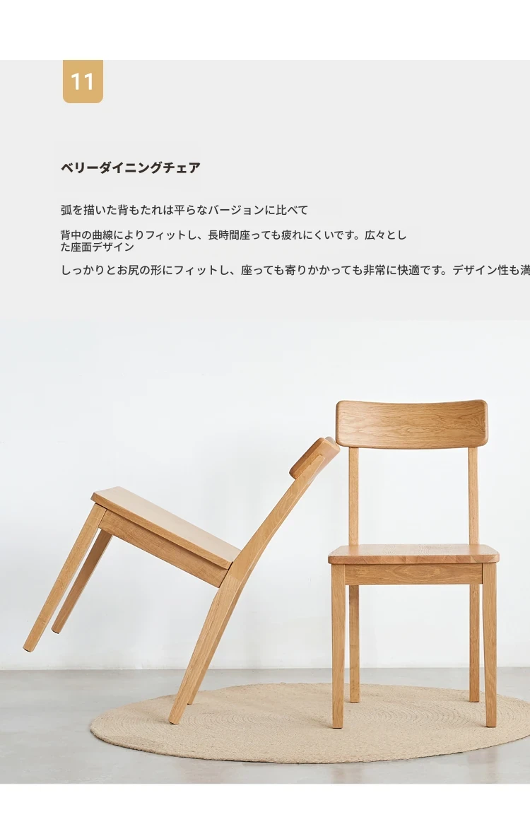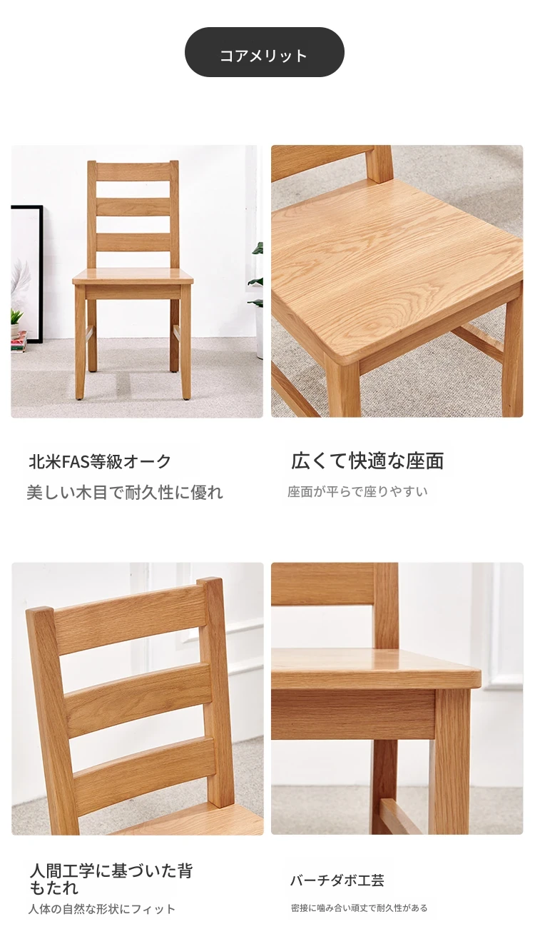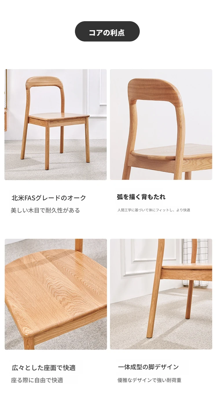 原木の魅力を活かした全木製のダイニングチェア|北欧モダンのシンプルデザイン|家庭用として最適なオーク材製|学習や食事にぴったりな快適な座り心地の椅子