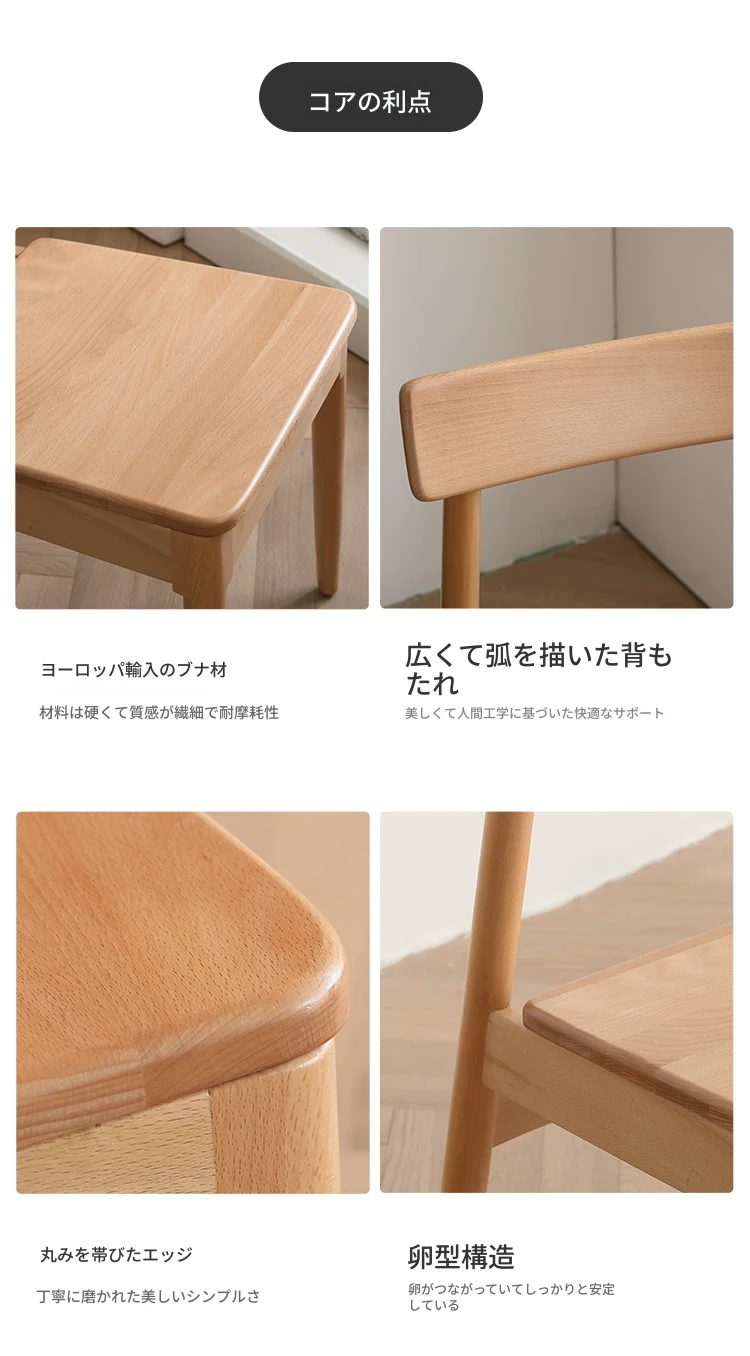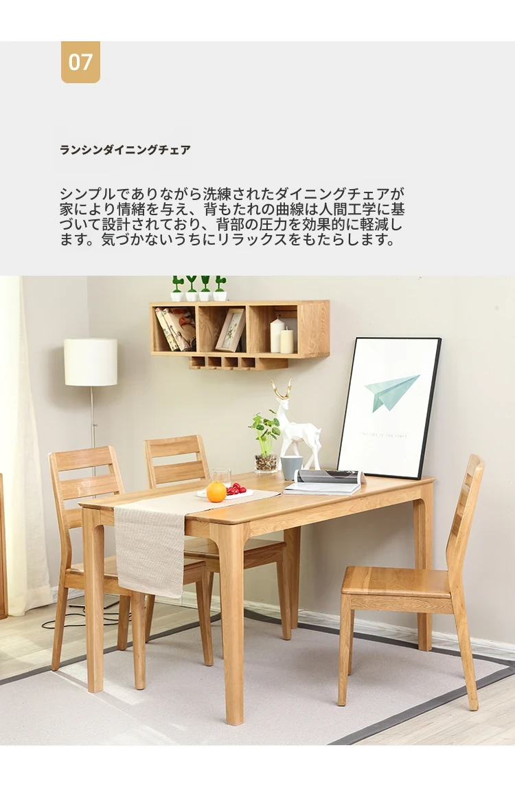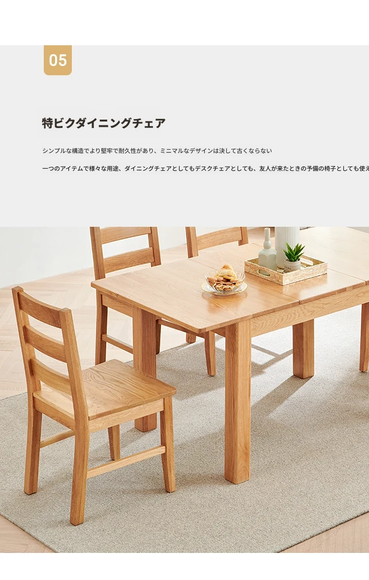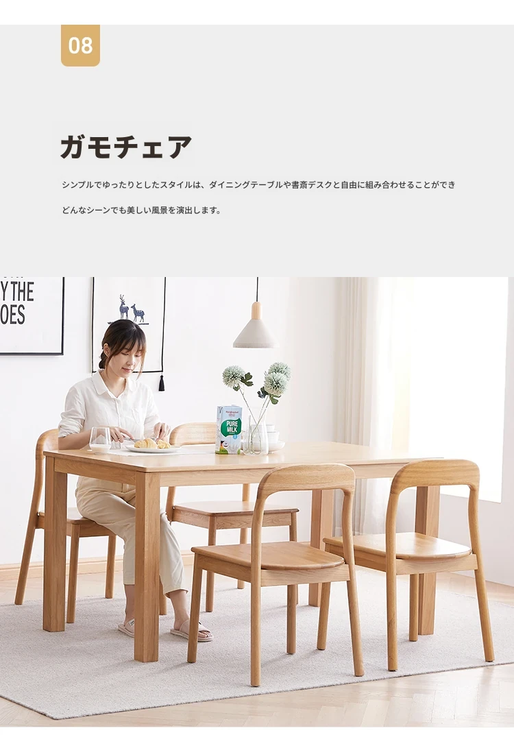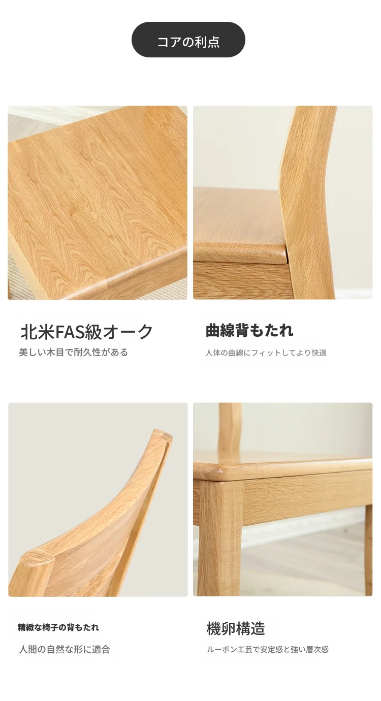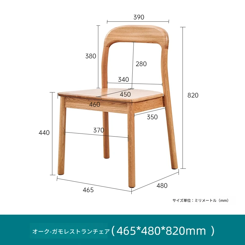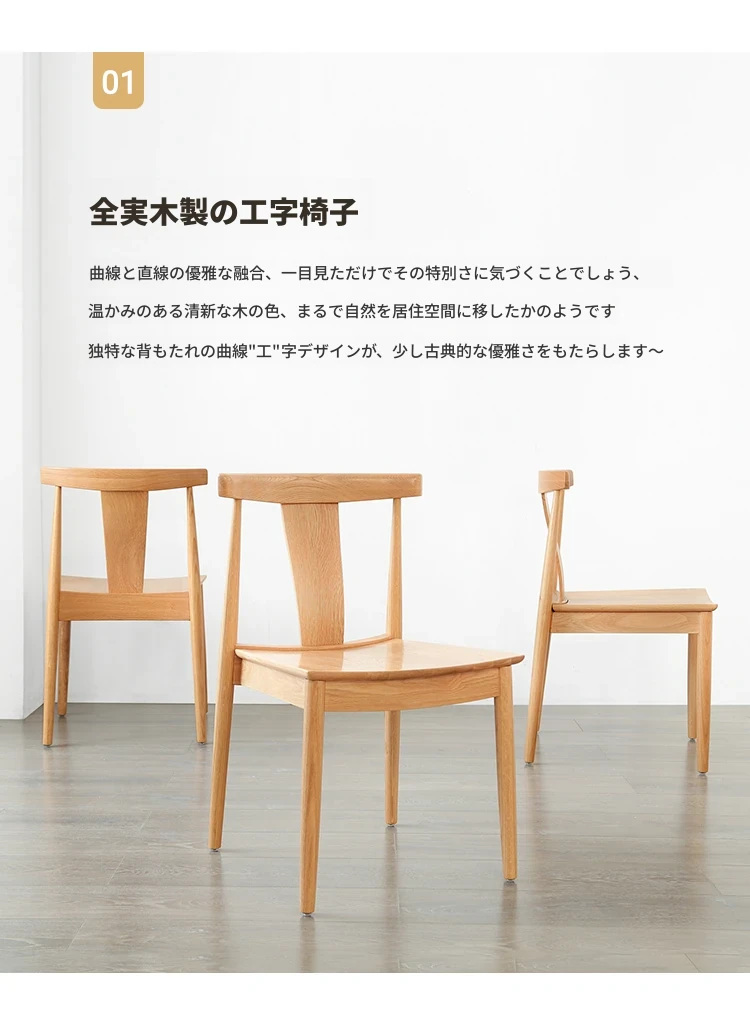 原木の魅力を活かした全木製のダイニングチェア|北欧モダンのシンプルデザイン|家庭用として最適なオーク材製|学習や食事にぴったりな快適な座り心地の椅子