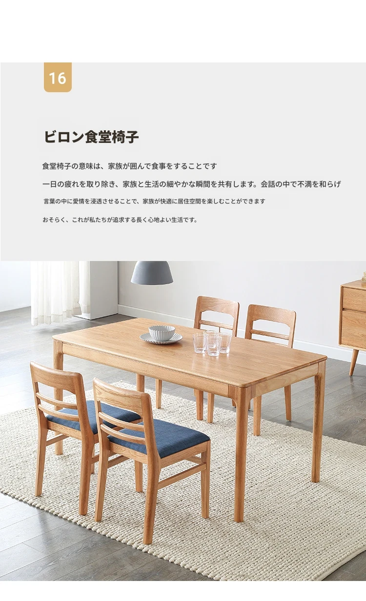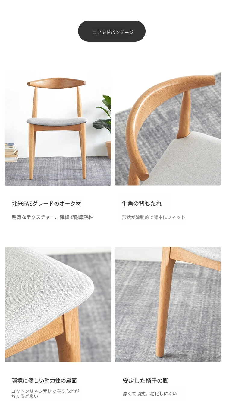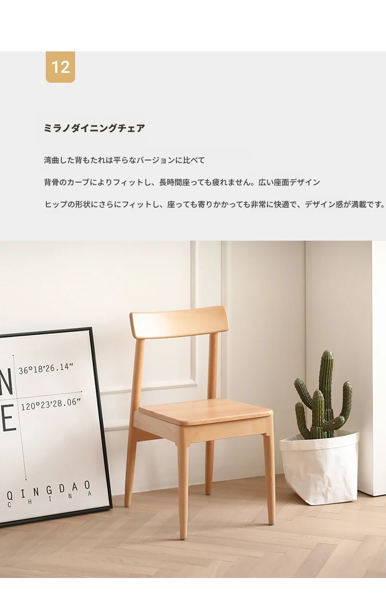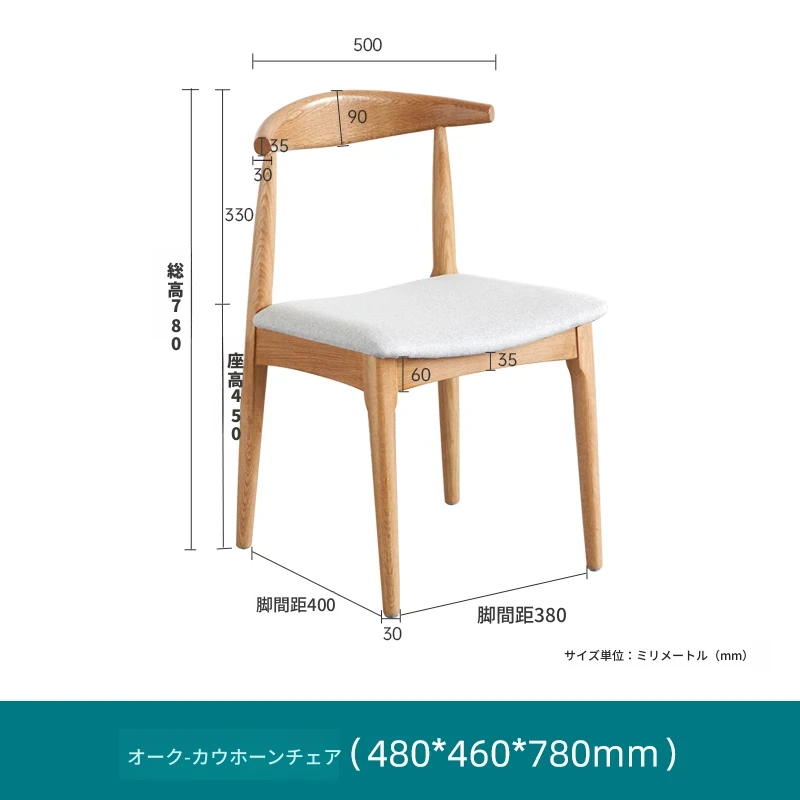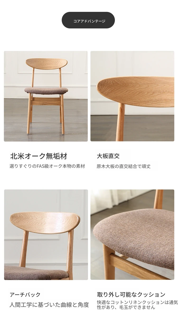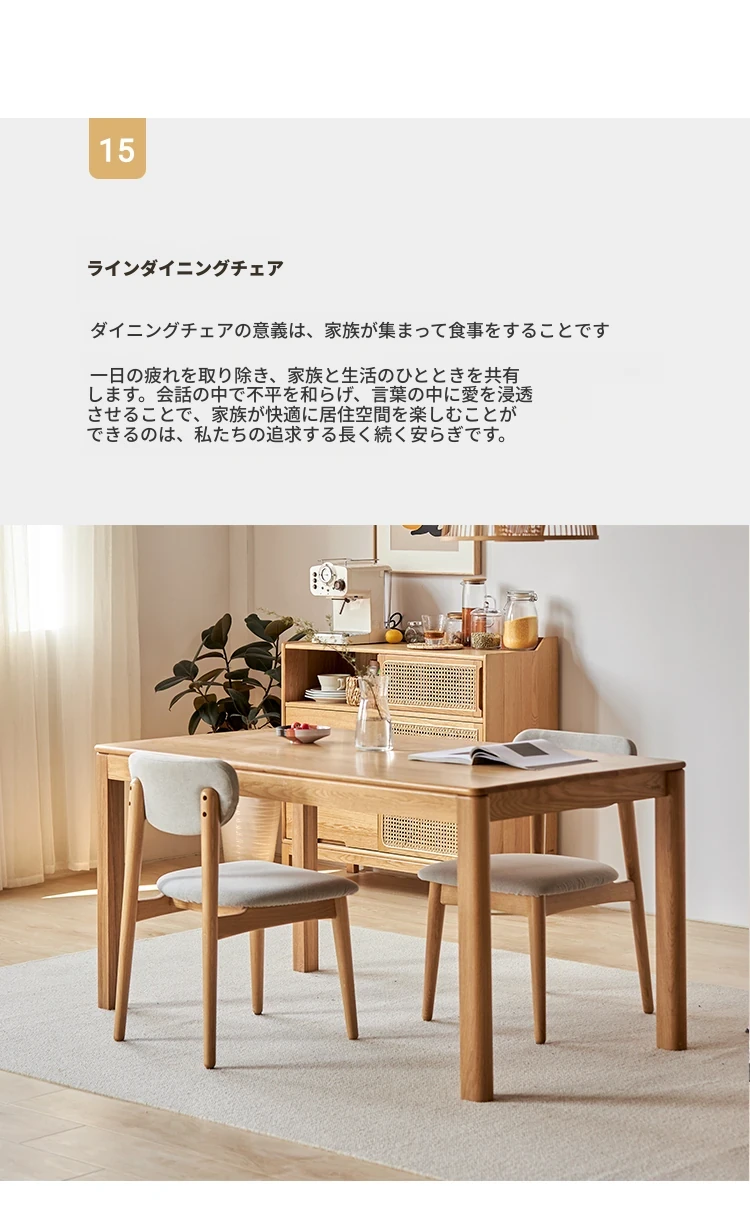 原木の魅力を活かした全木製のダイニングチェア|北欧モダンのシンプルデザイン|家庭用として最適なオーク材製|学習や食事にぴったりな快適な座り心地の椅子