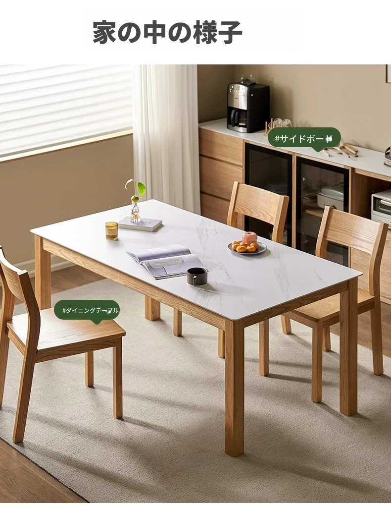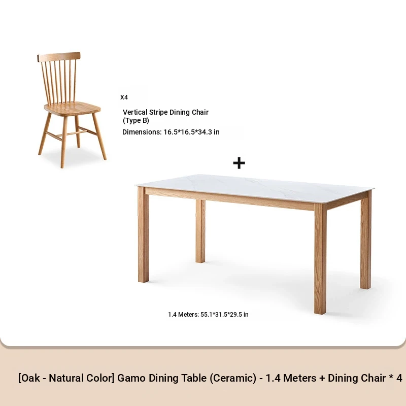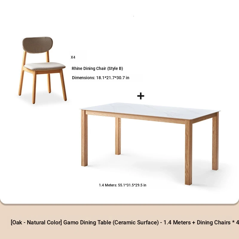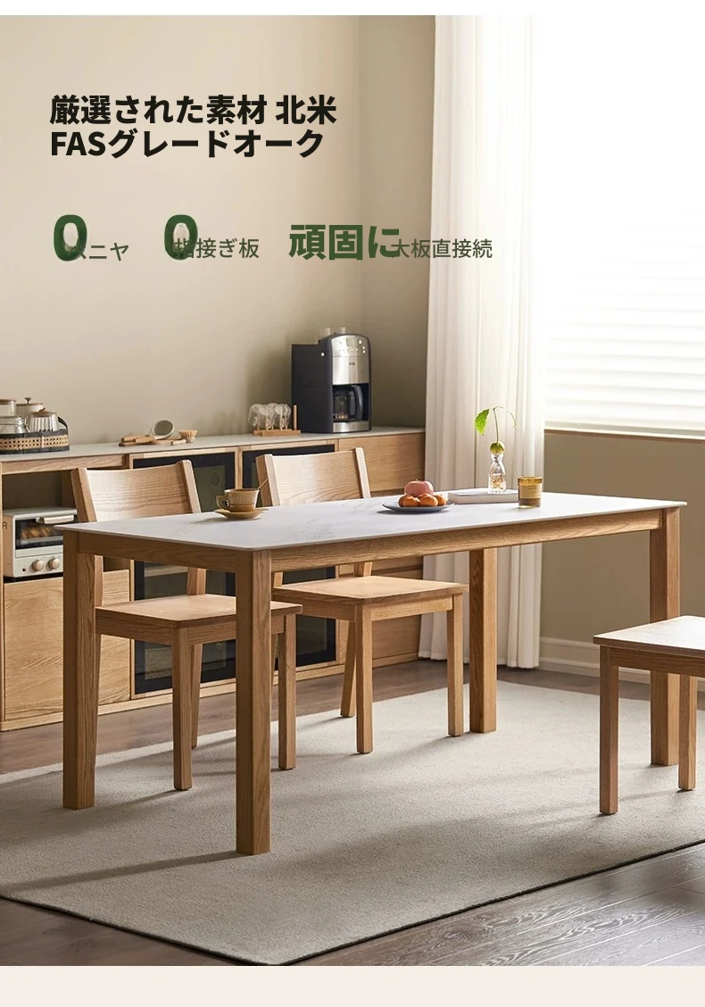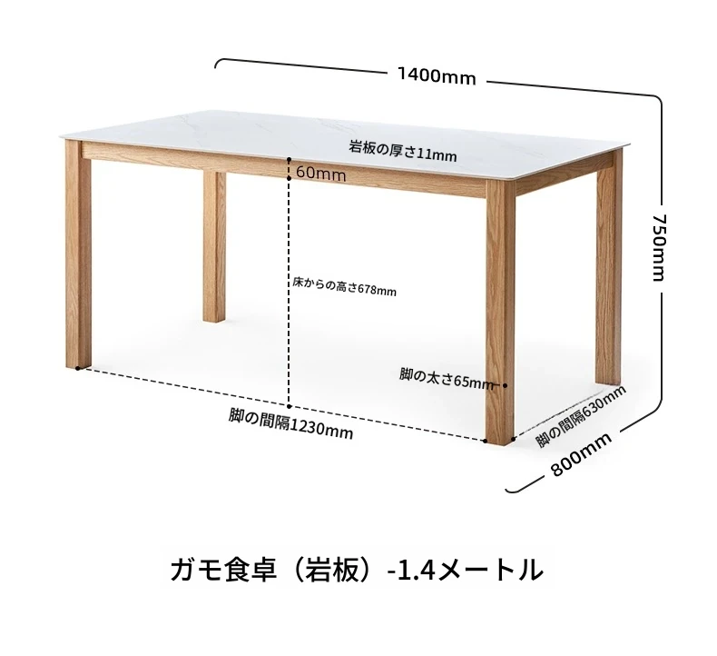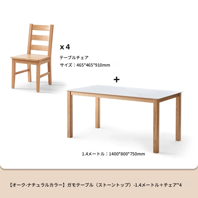原木色-1.4メートルオークストーンダイニングテーブル(1400*800*750mm)