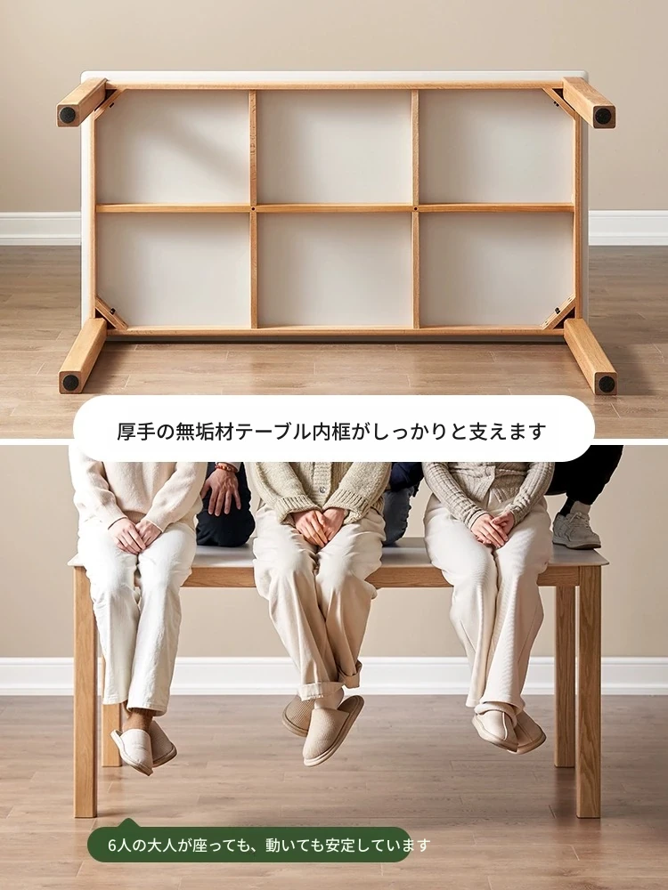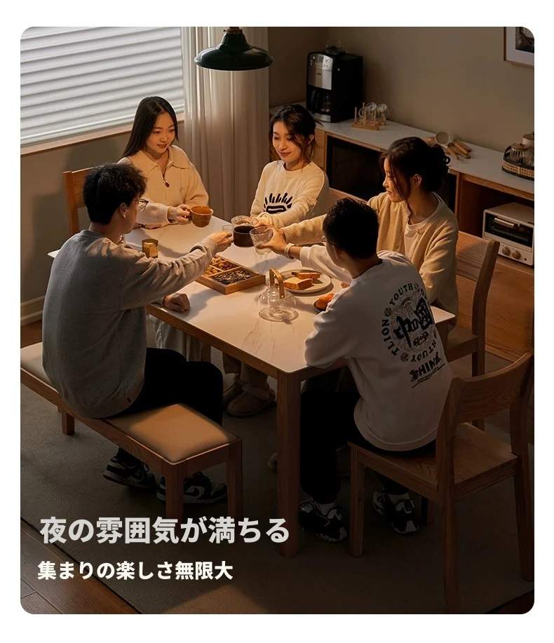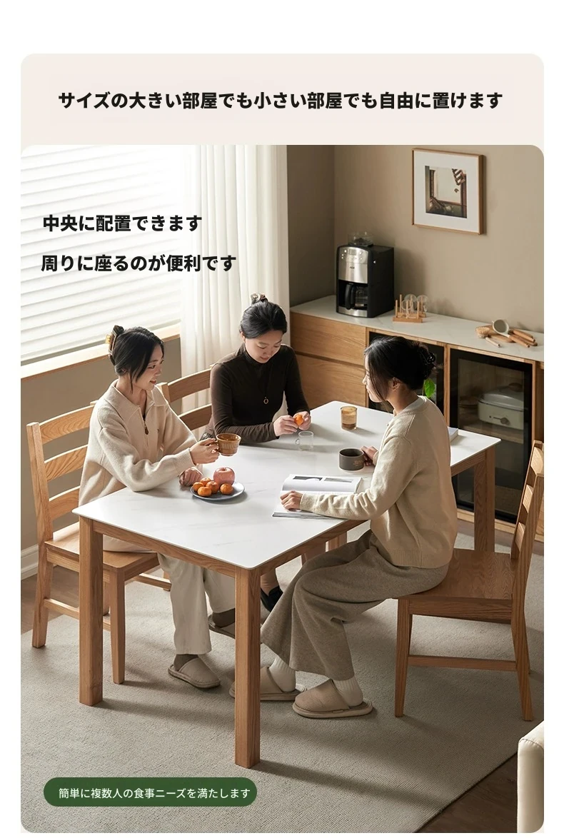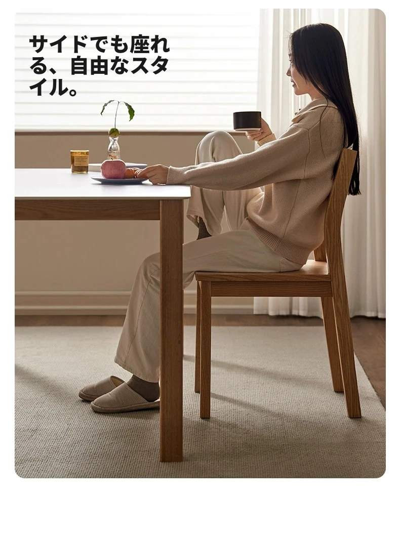 北欧風シンプルデザインの無垢材オーク製ダイニングテーブル&チェアセット - モダンな円形テーブルで、家族や友人との素敵な食事時間を演出します!