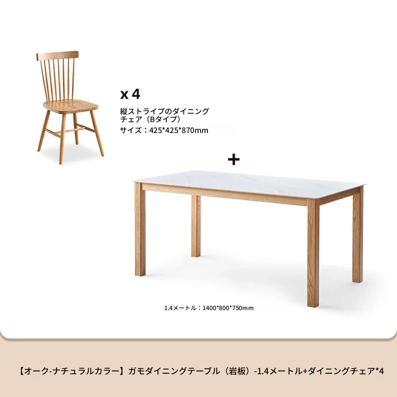 原木色-1.4メートルダイニングテーブル+ラインダイニングチェアBタイプ*4(H6122)
