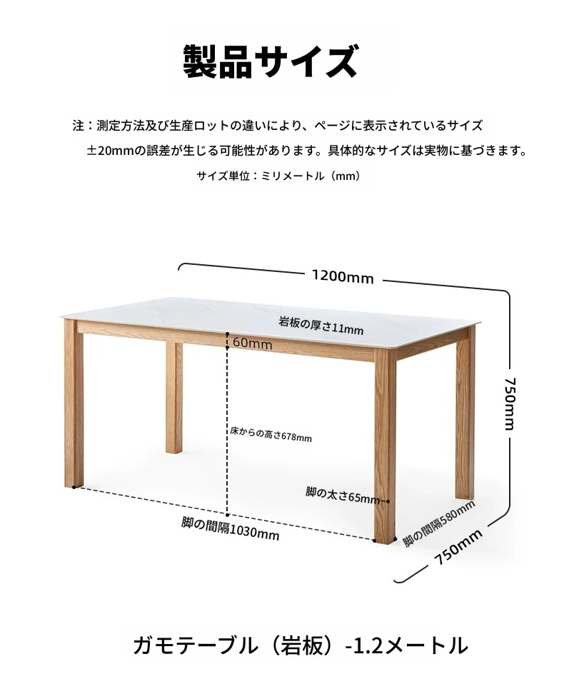 原木色-1.2メートルオークストーンダイニングテーブル(1200*750*750mm)