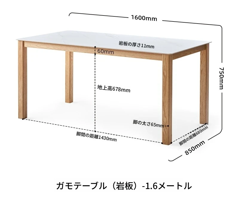 原木色-1.6メートルオークストーンダイニングテーブル(1600*850*750mm)