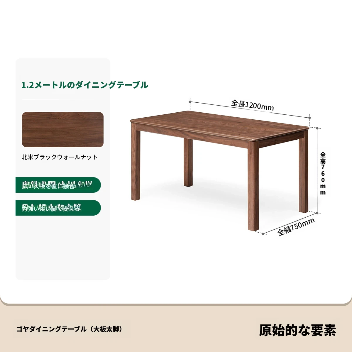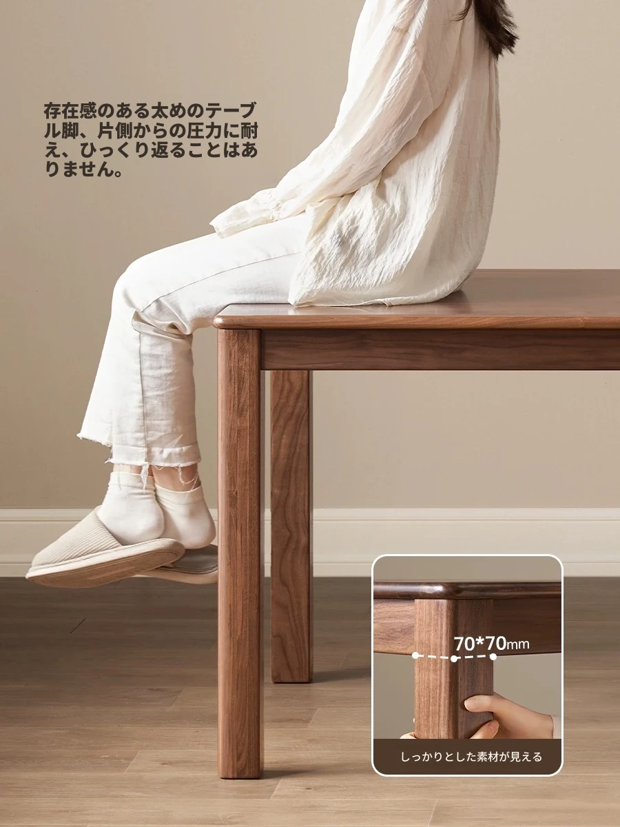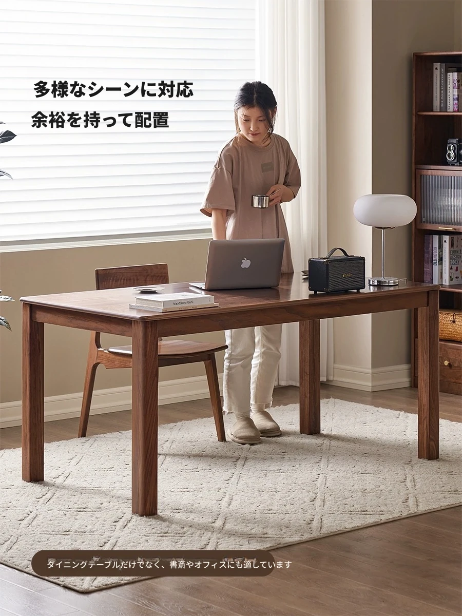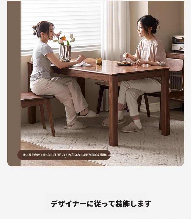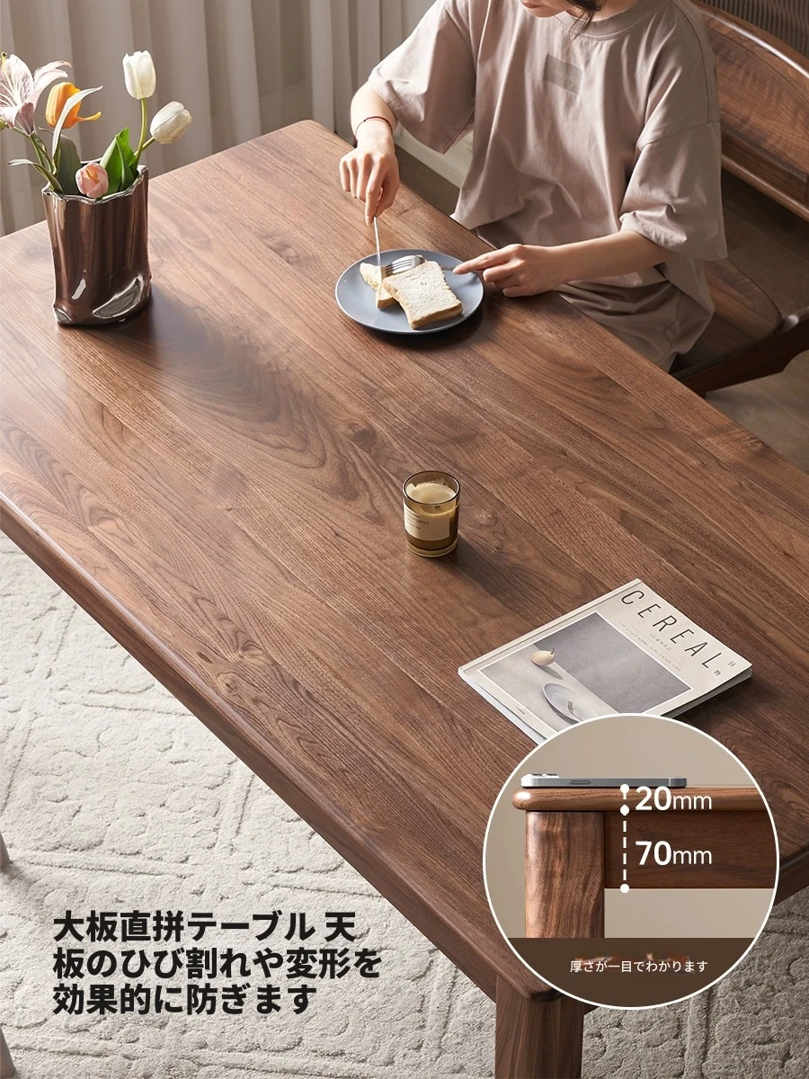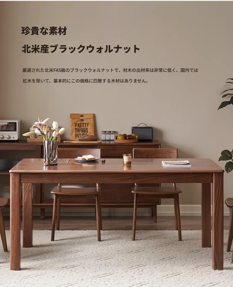 原木の魅力溢れる北米産ブラックウォールナットの実木ダイニングテーブル - スタイリッシュな長方形デザイン、家庭用の魅力的なセット。食事の時間を特別に演出します!