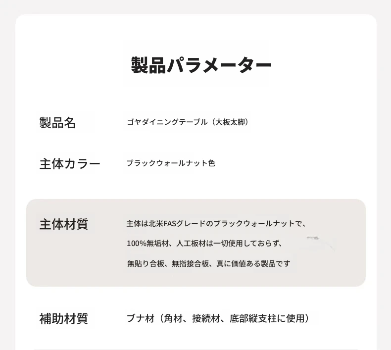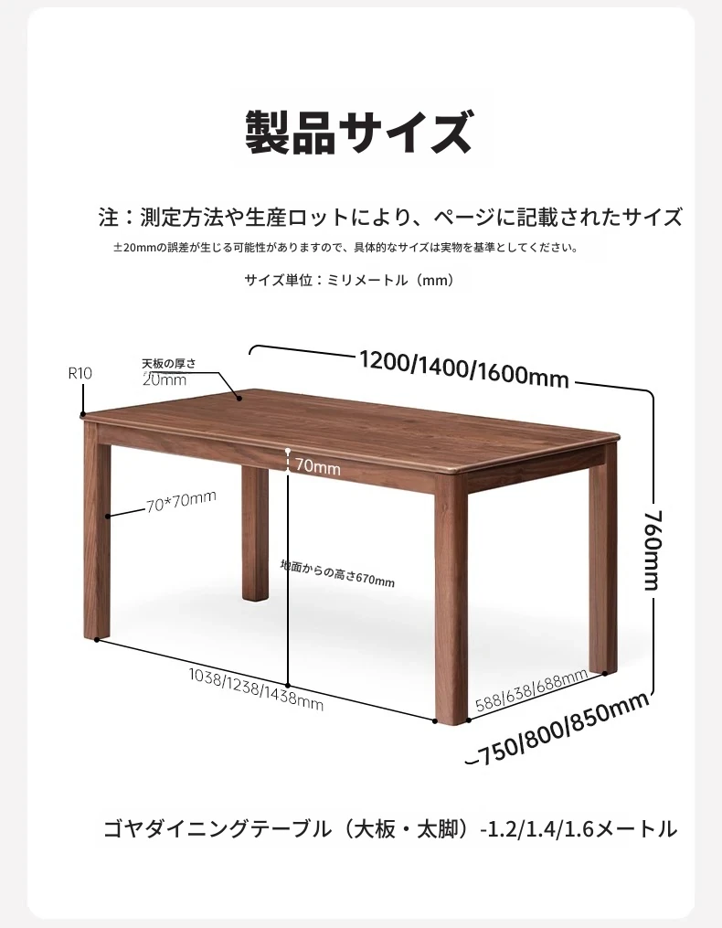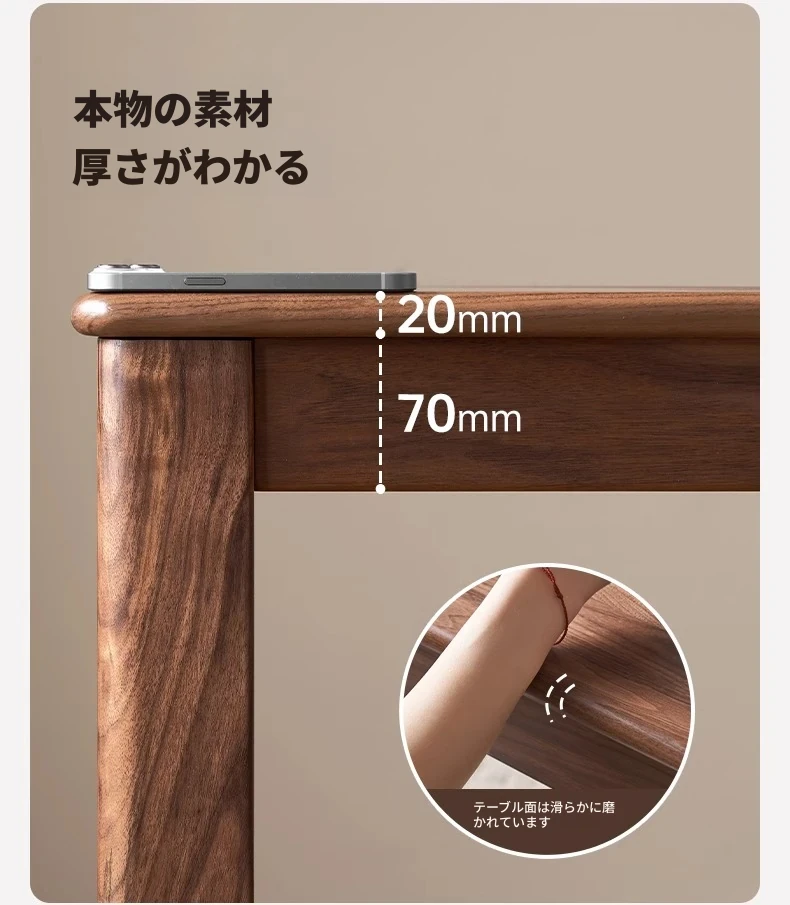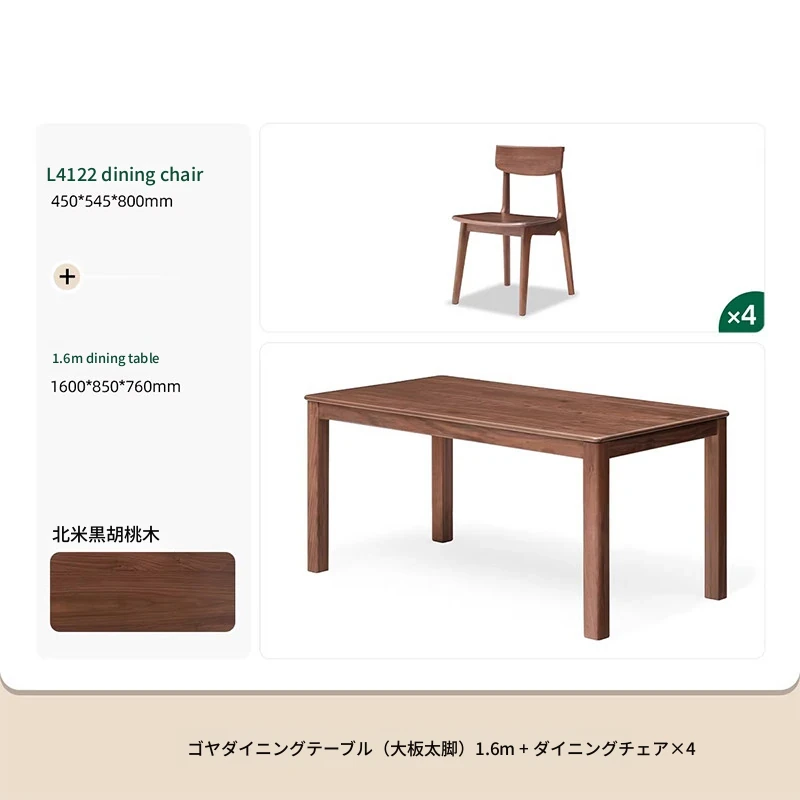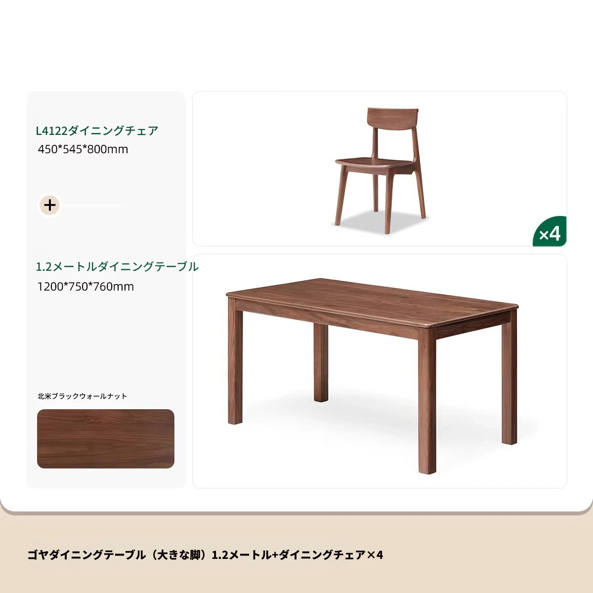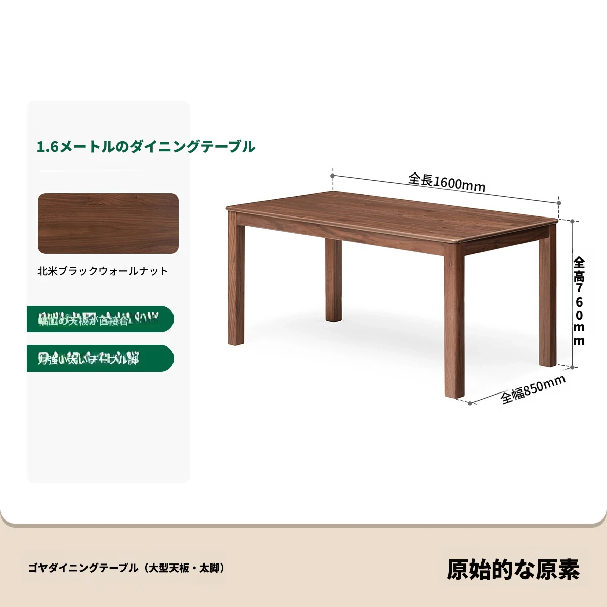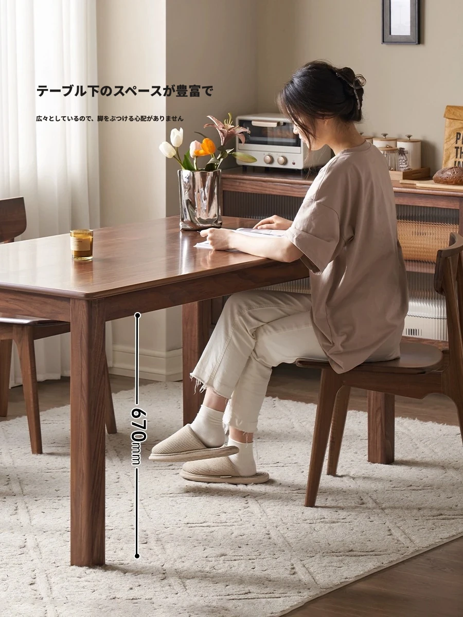 原木の魅力溢れる北米産ブラックウォールナットの実木ダイニングテーブル - スタイリッシュな長方形デザイン、家庭用の魅力的なセット。食事の時間を特別に演出します!