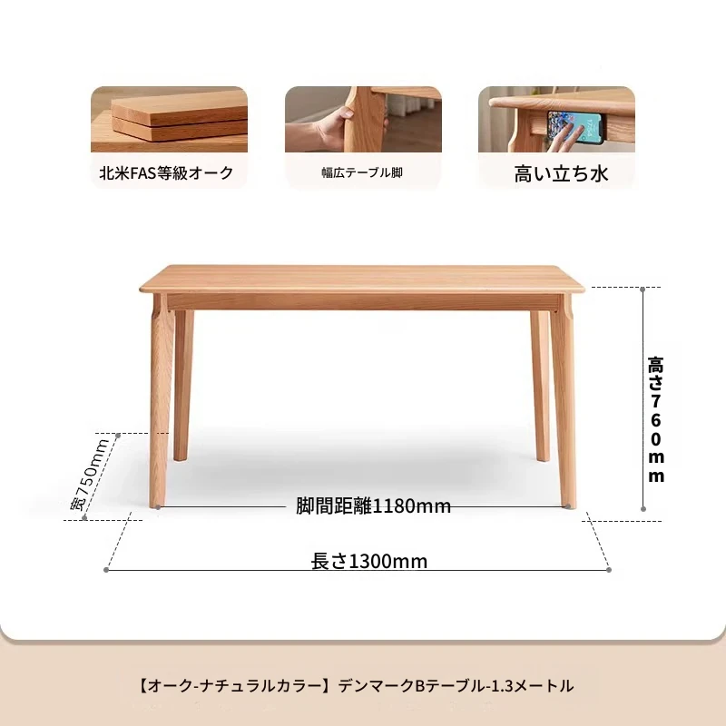 原木色--1.3m ダイニングテーブル