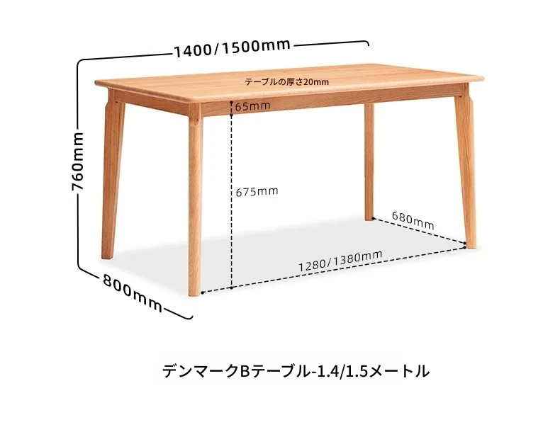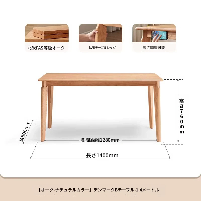 原木色--1.4m ダイニングテーブル