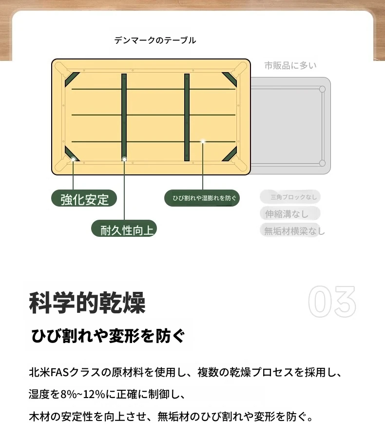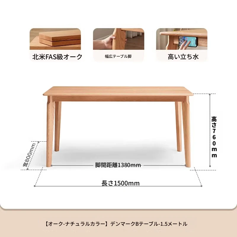原木色-1.5m ダイニングテーブル