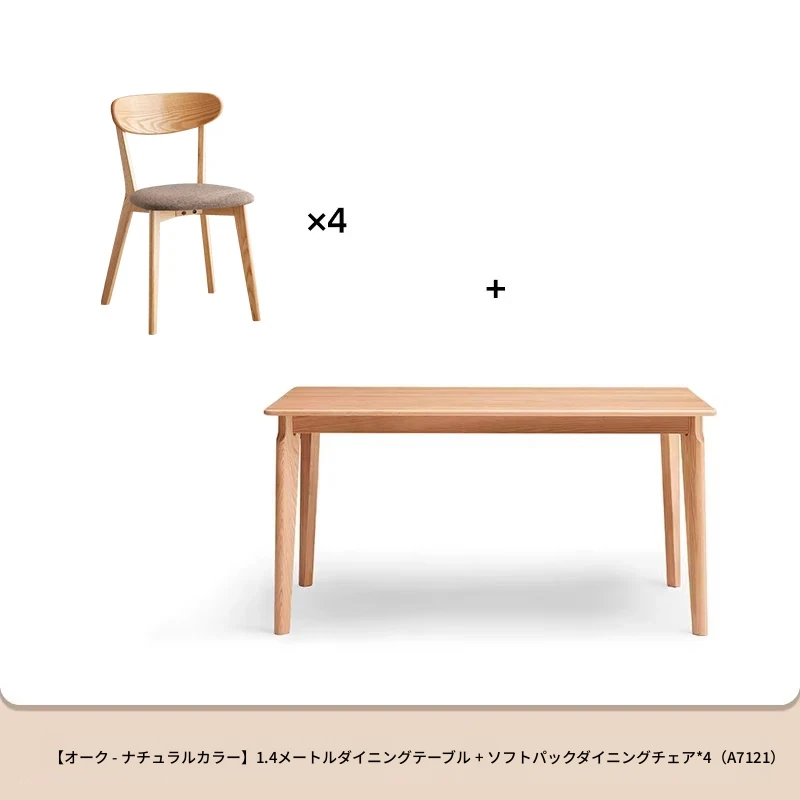 原木色--1.4m ダイニングテーブル+ガモチェア*4 (A5122)