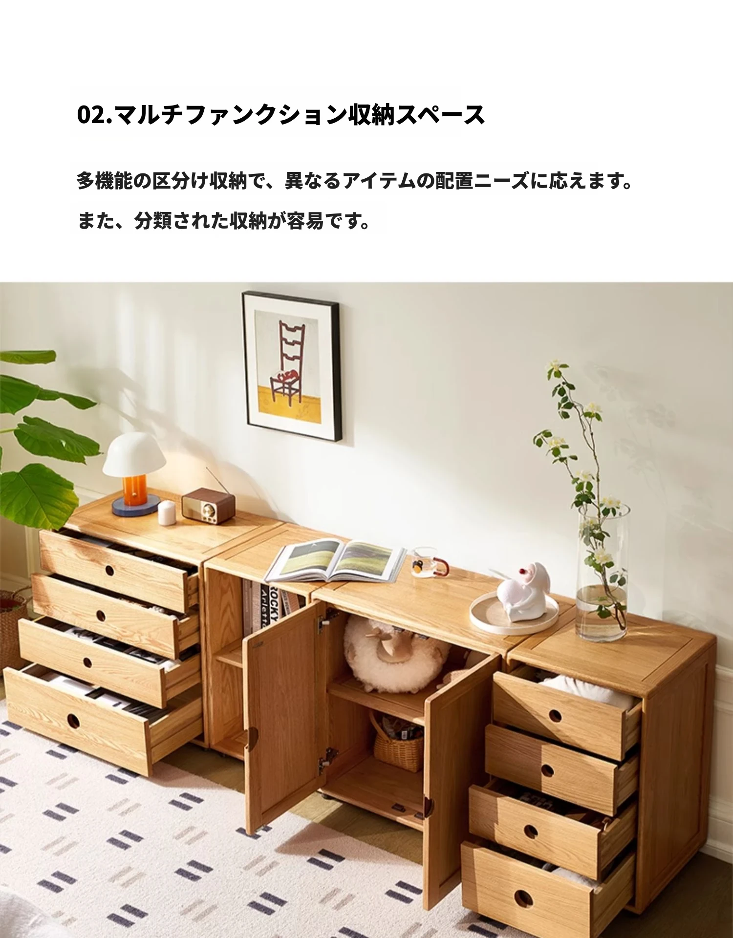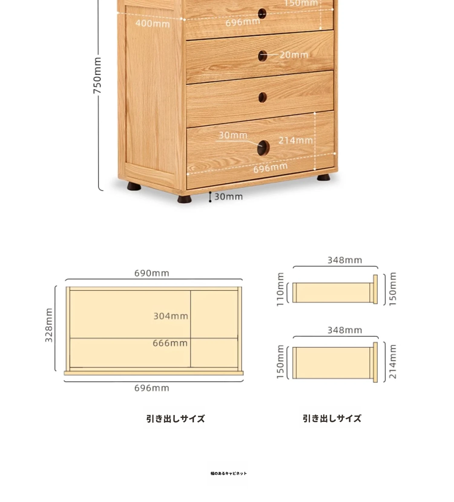 全木製の北欧スタイルのオーク材5段チェスト – シンプルでモダン、子供部屋にもぴったりな収納家具!お部屋を美しく整えるお手伝いをします!