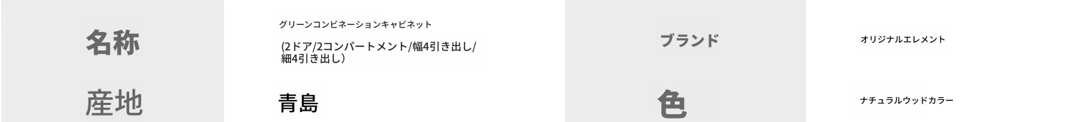グリーン組み合わせキャビネット(2格+2ドア+狭4引出し)