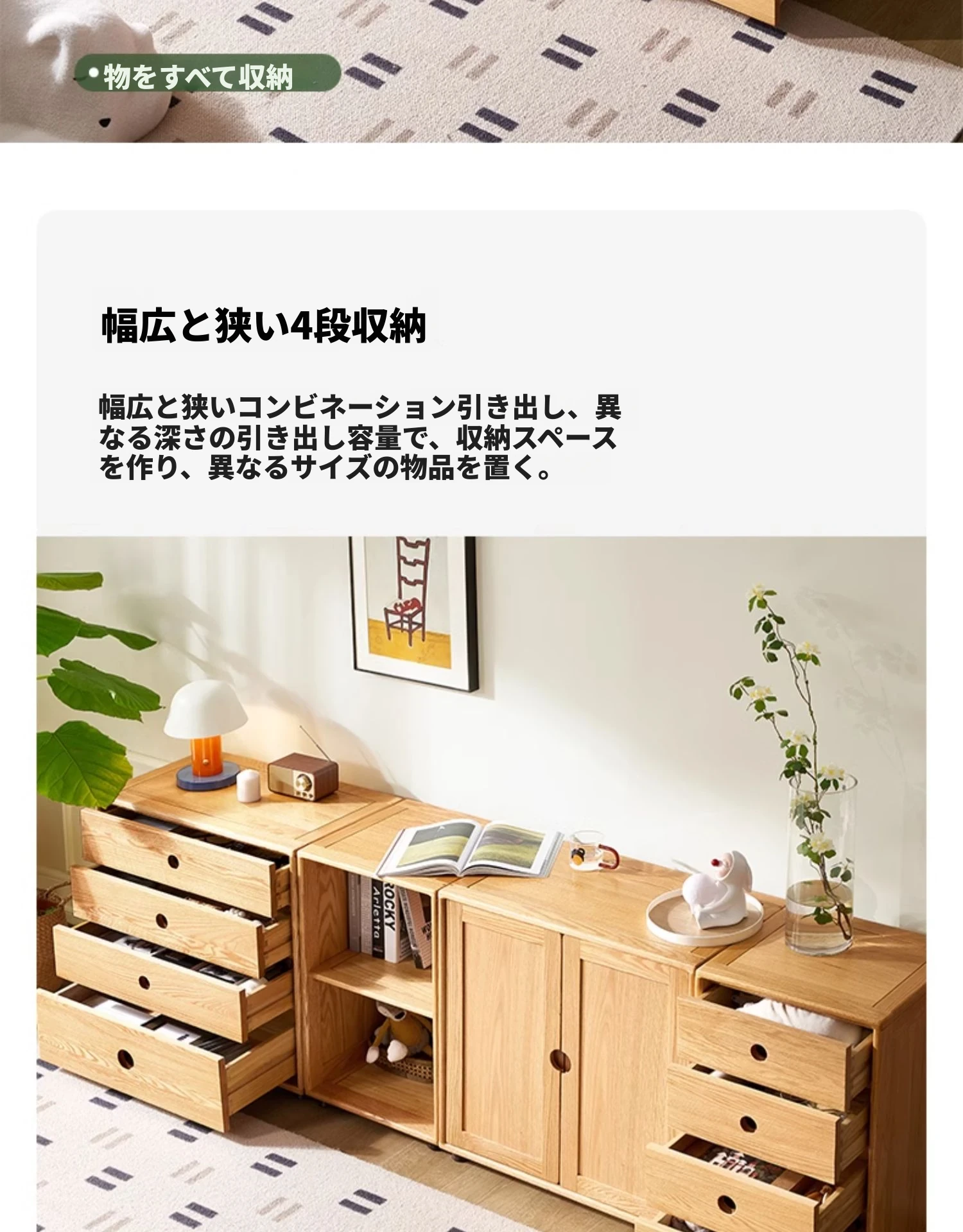 グリーン組み合わせキャビネット(広4引出し)740*400*750mm