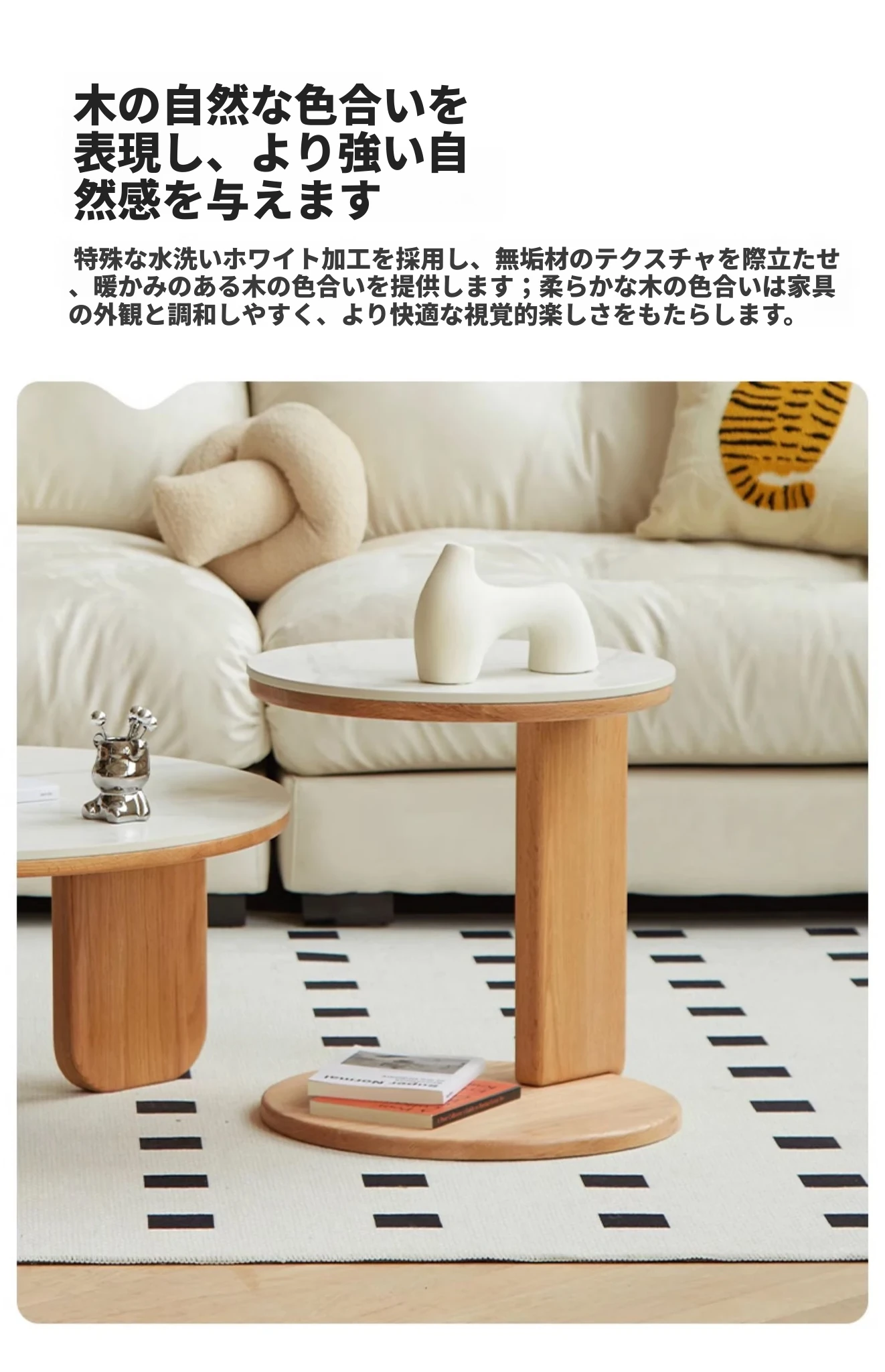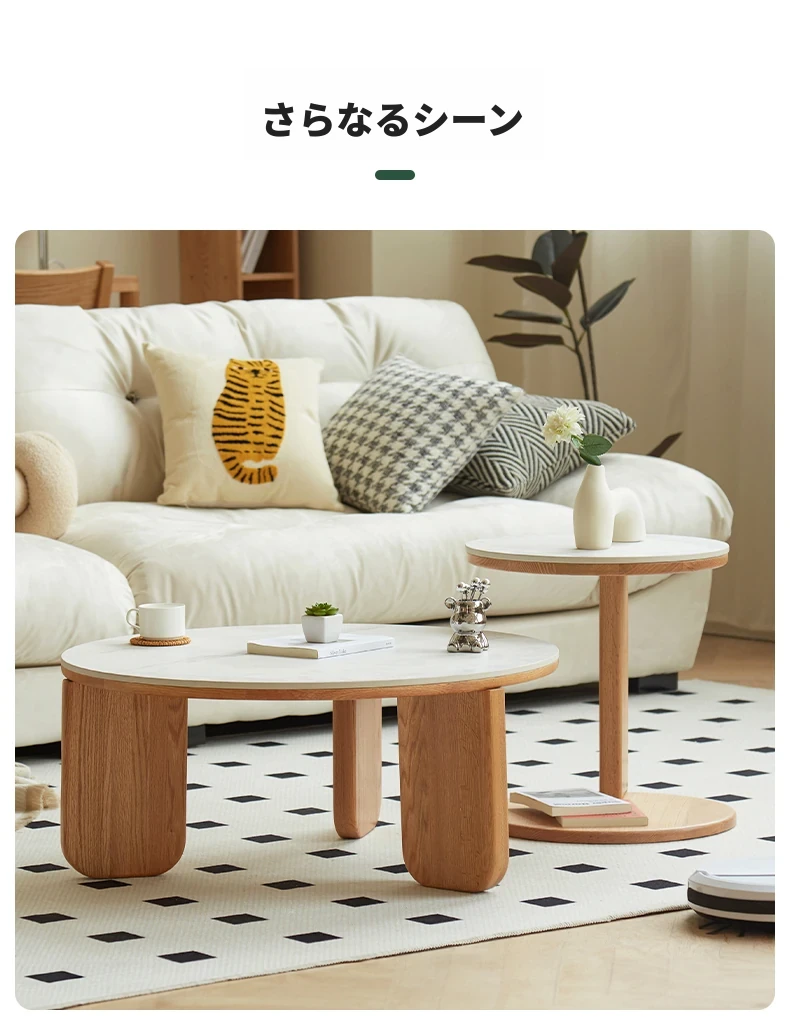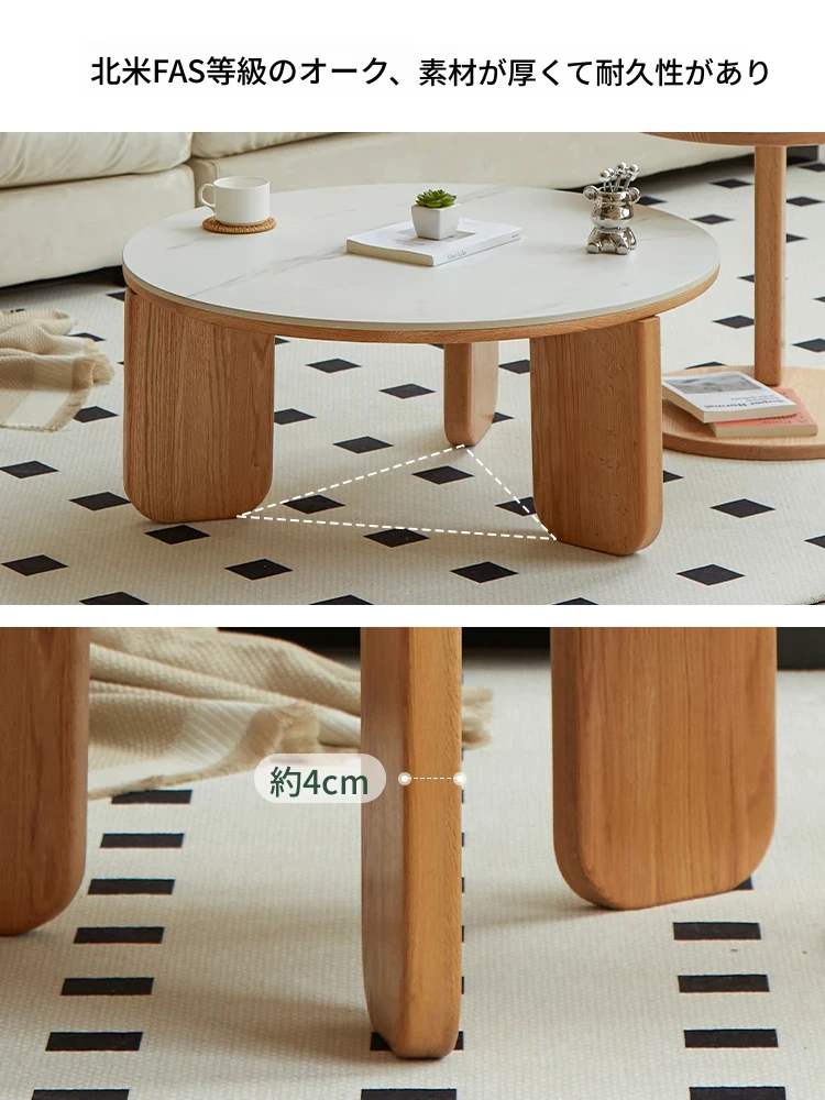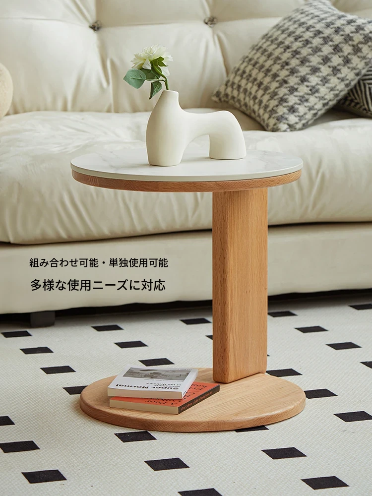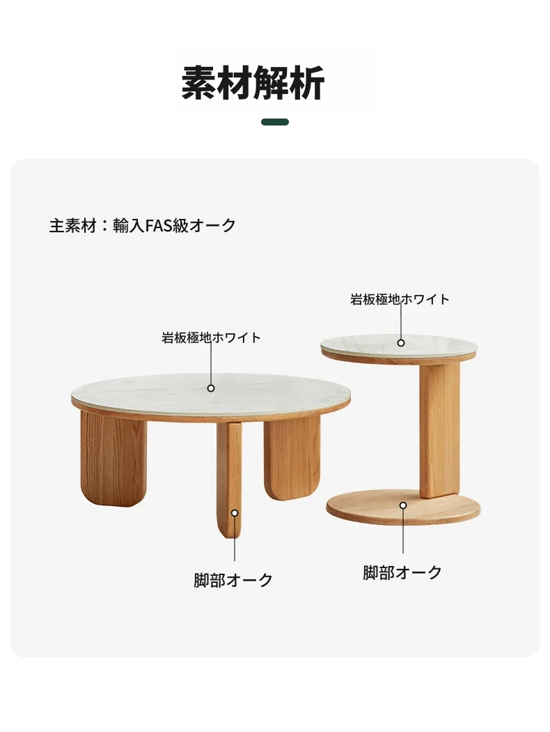 北欧風デザインの無垢材ロックテーブル - 小さなお部屋にぴったりなモダンでシンプルなサイドテーブル、円形のコンビネーションでおしゃれなティータイムを演出!
