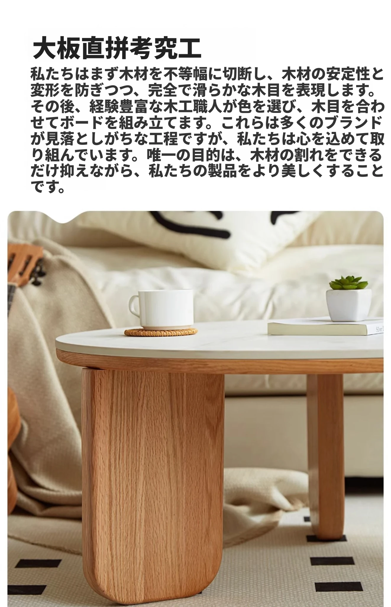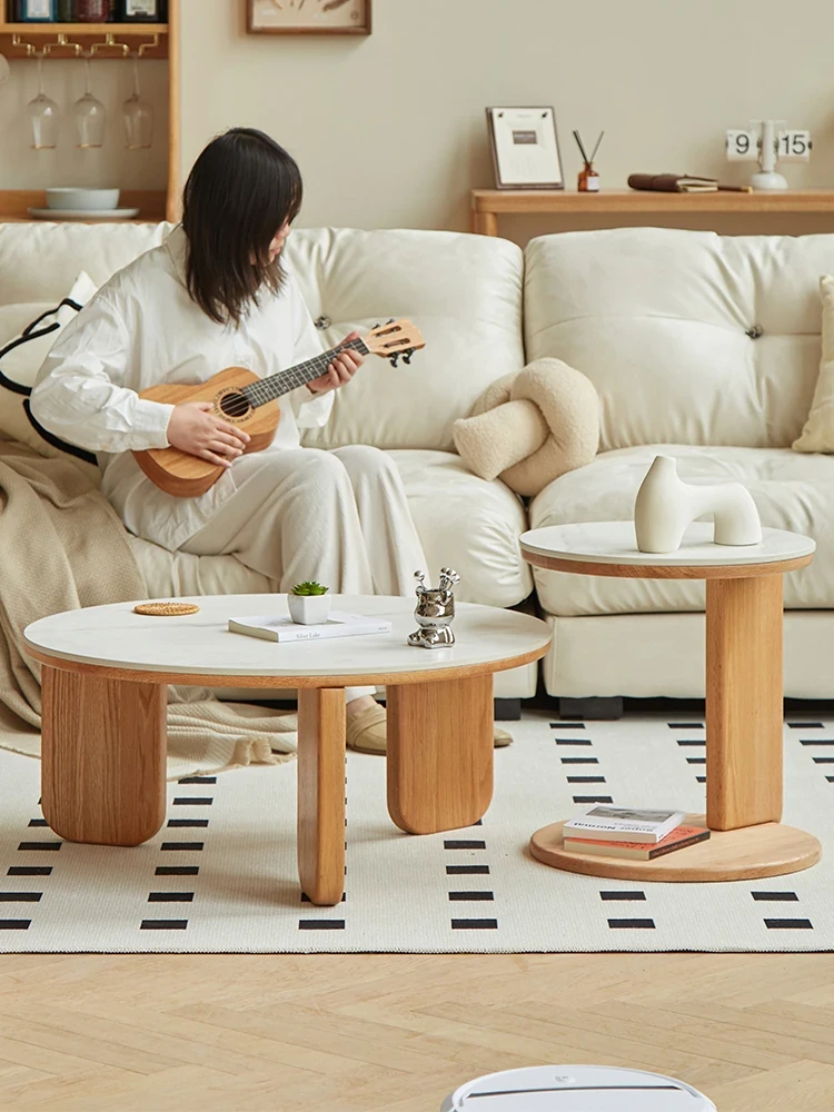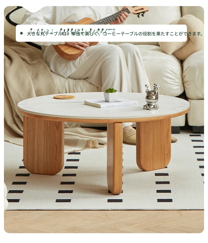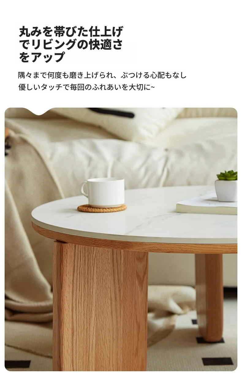 北欧風デザインの無垢材ロックテーブル - 小さなお部屋にぴったりなモダンでシンプルなサイドテーブル、円形のコンビネーションでおしゃれなティータイムを演出!