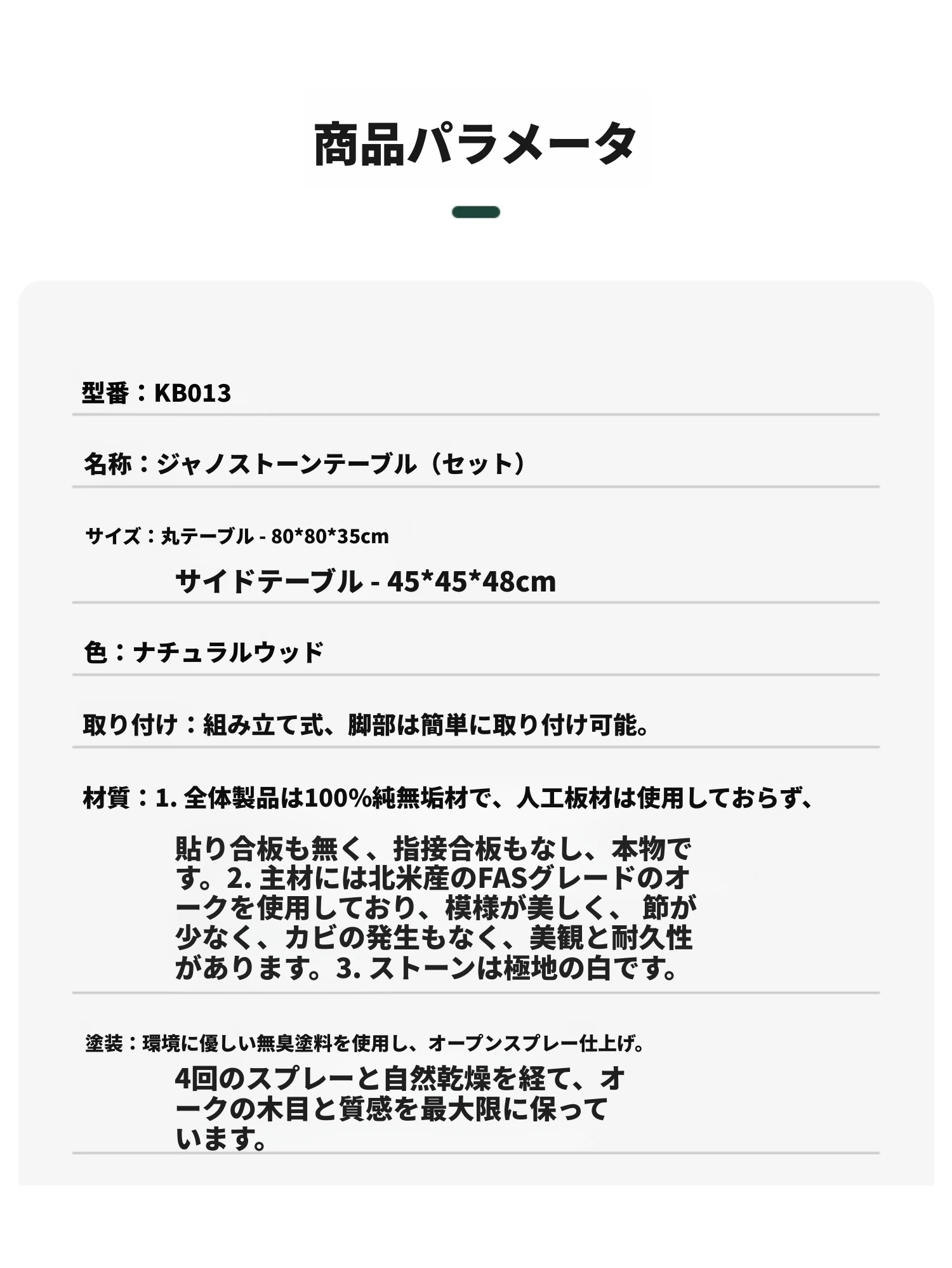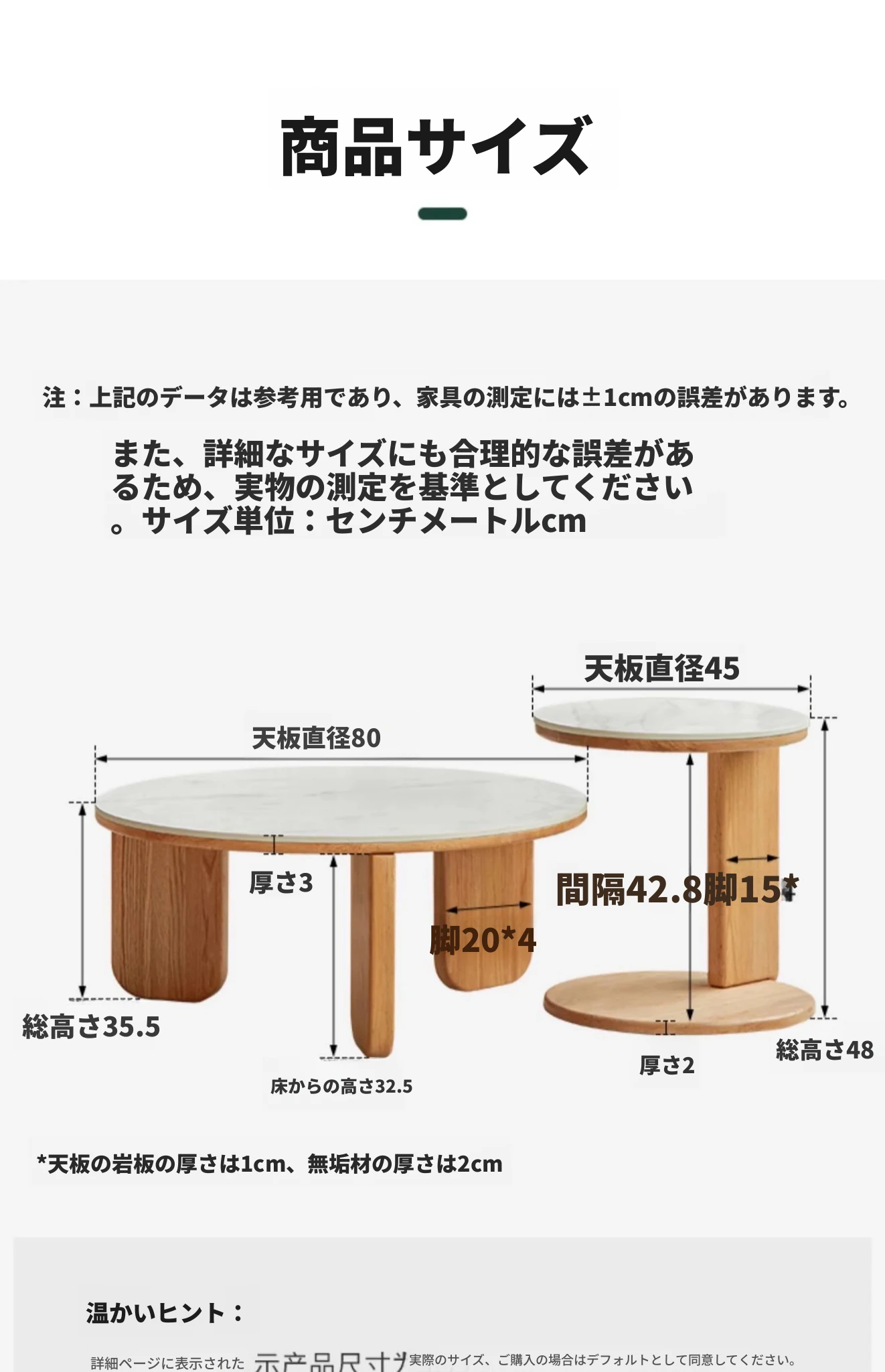 岩板コーヒーテーブル0.45メートル(450*450*480mm)