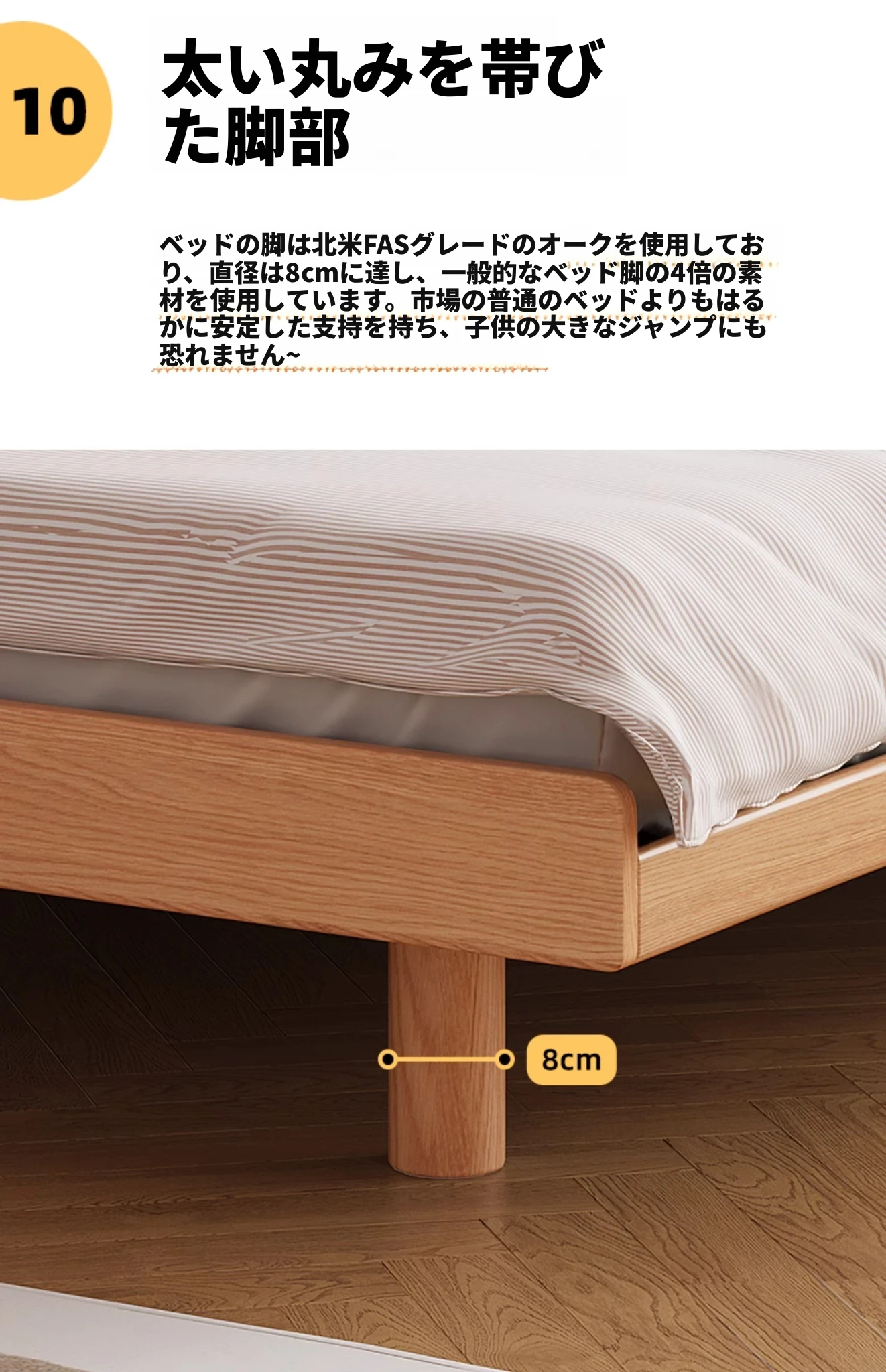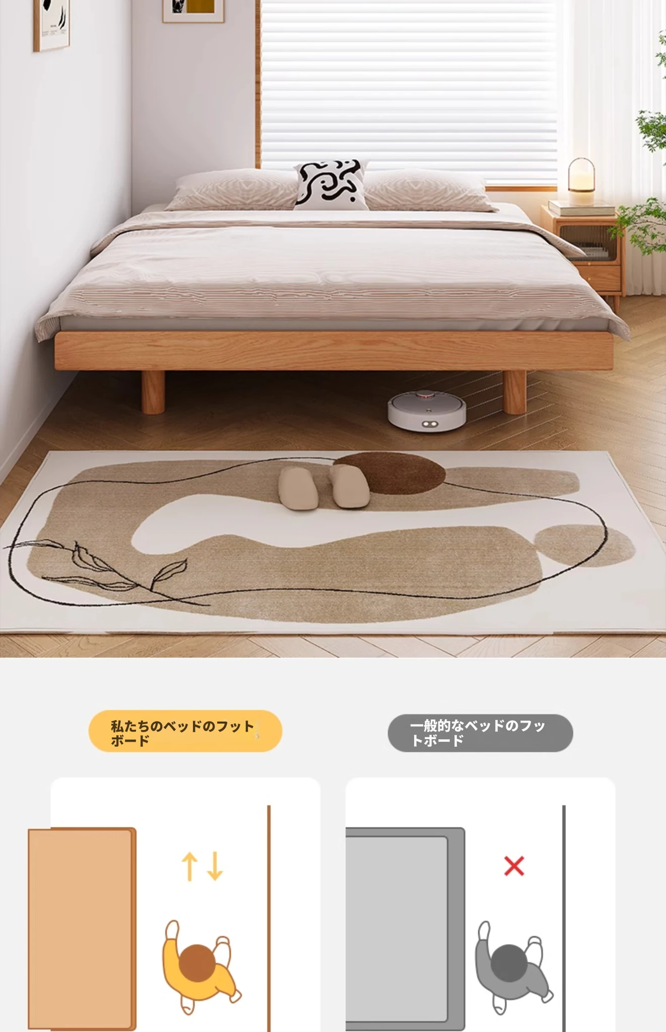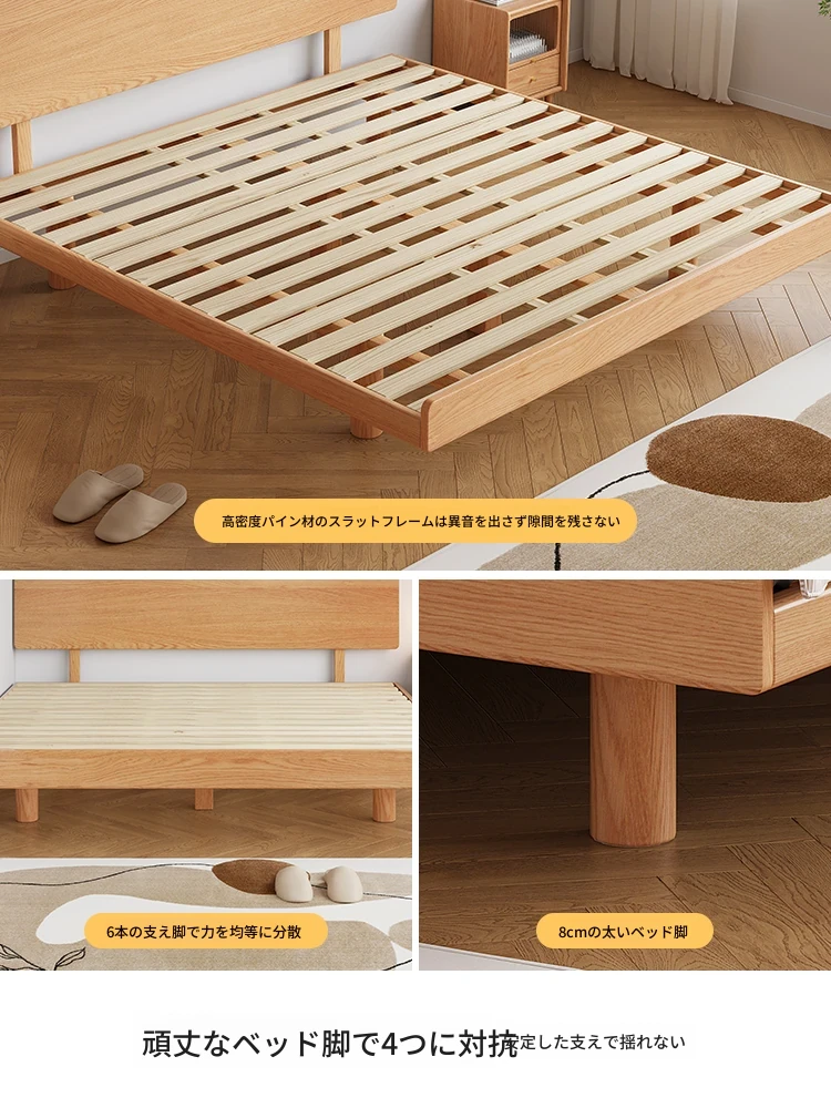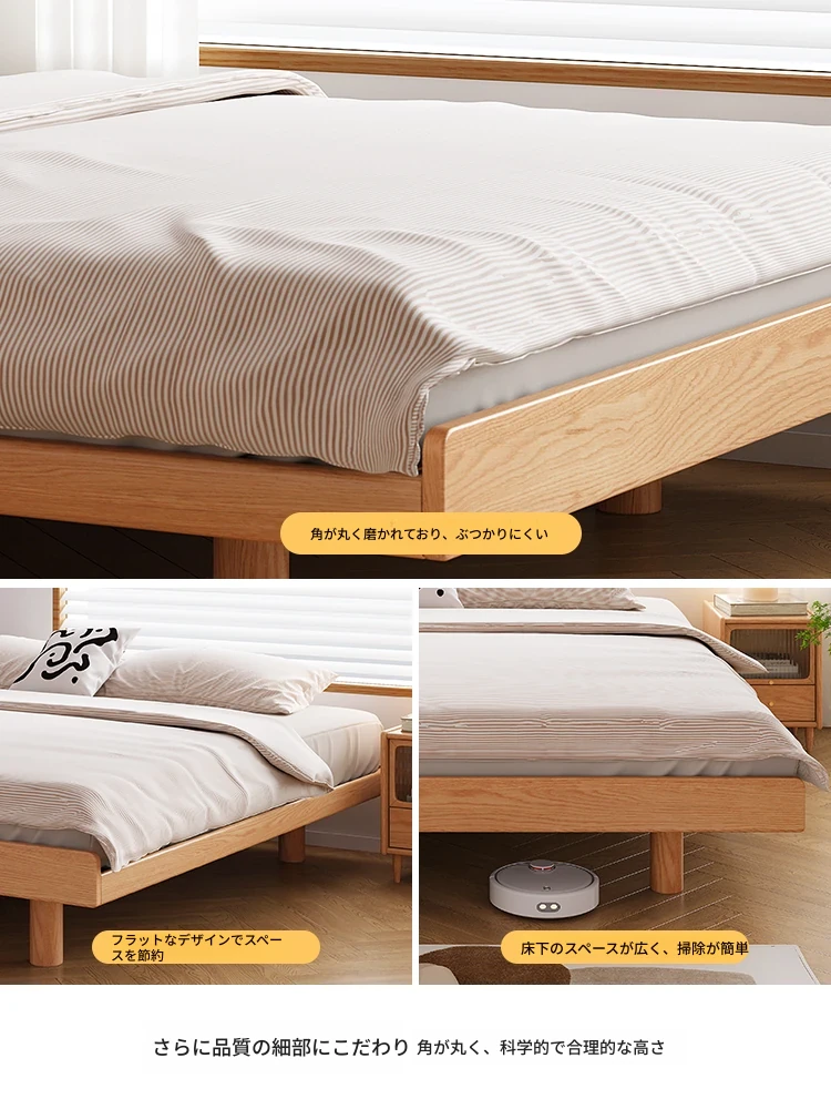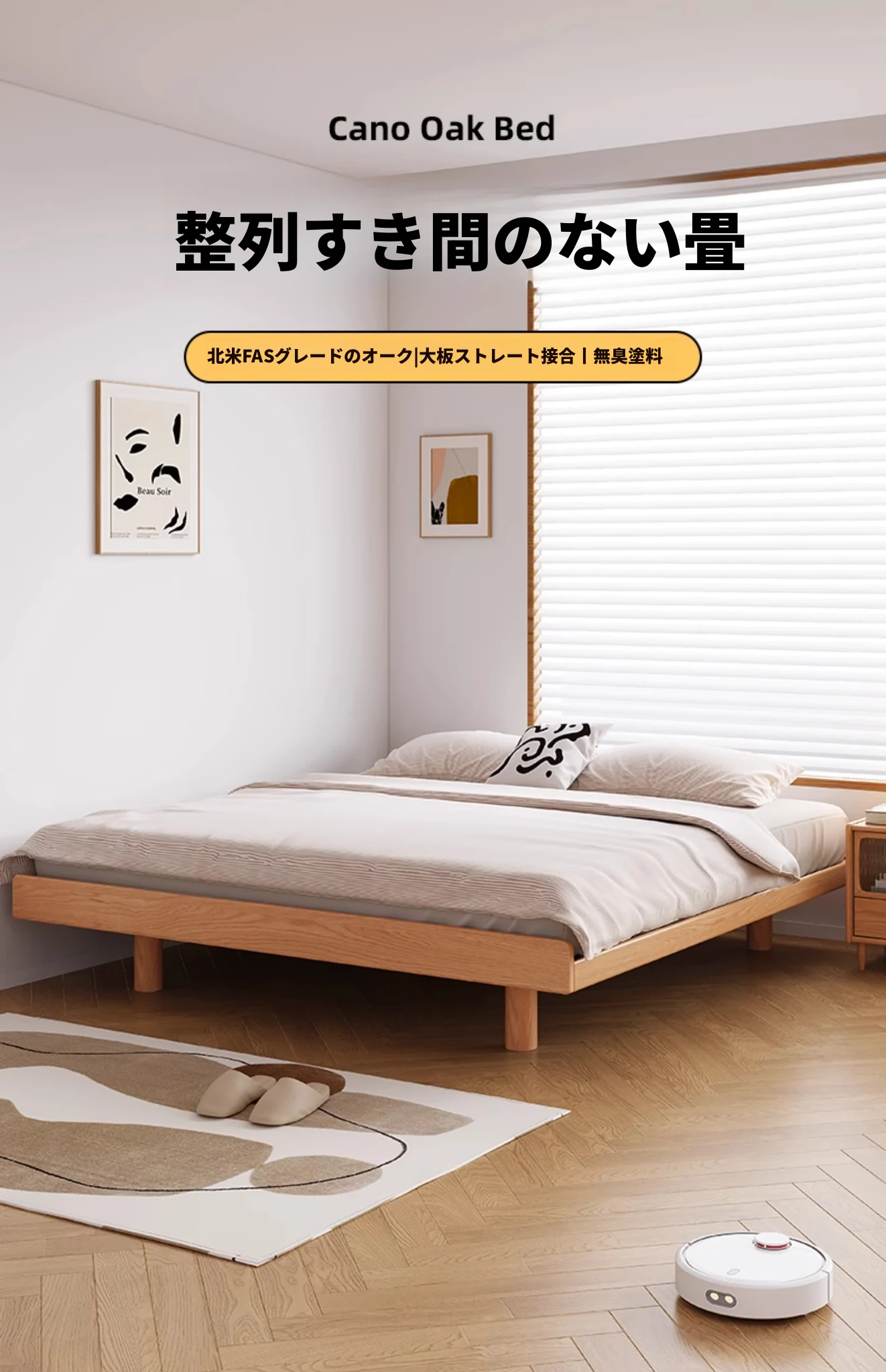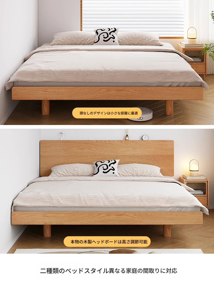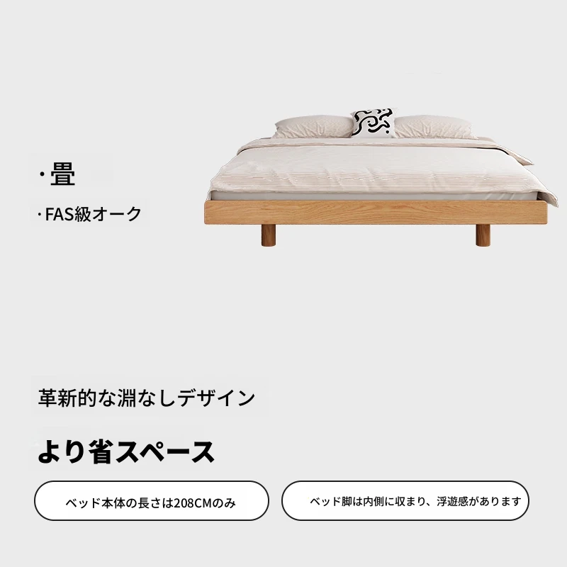 無床頭の実木フロアベッド|タタミスタイル|狭い部屋に最適な1.5mサイズ|オークのダブルベッド|和モダンな浮遊デザインでスッキリシンプルに!おしゃれで心地よい眠りをお楽しみください。