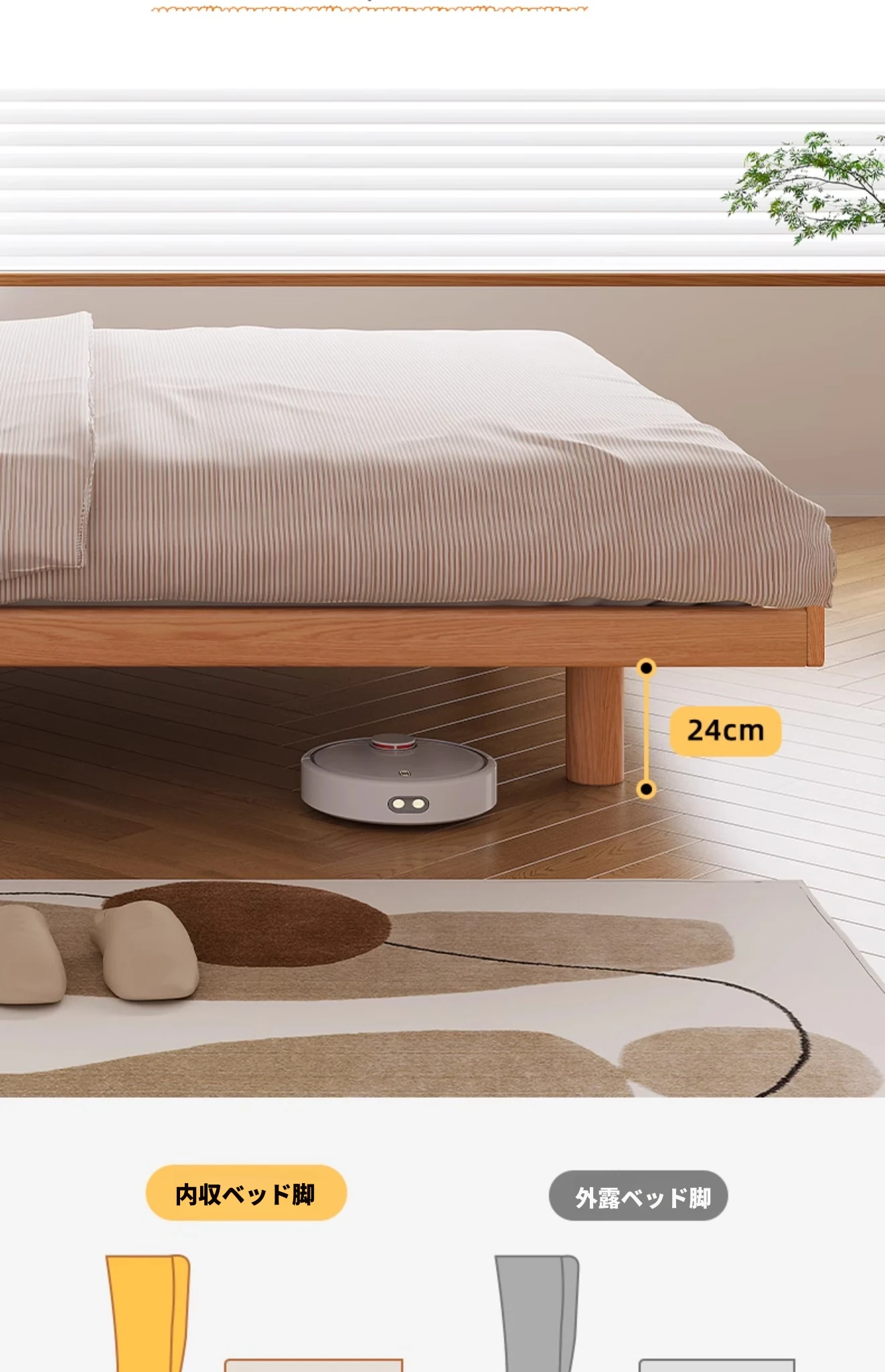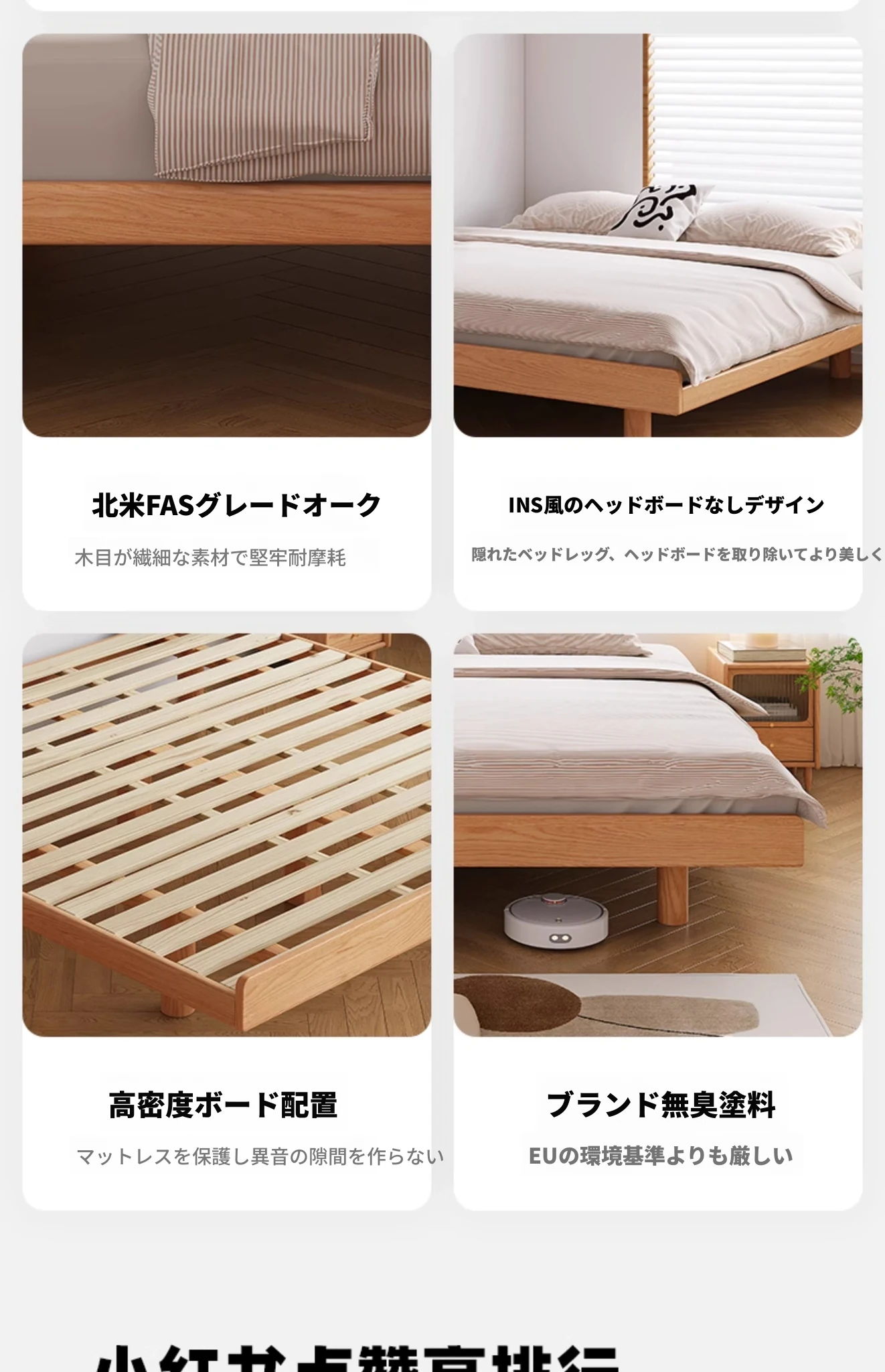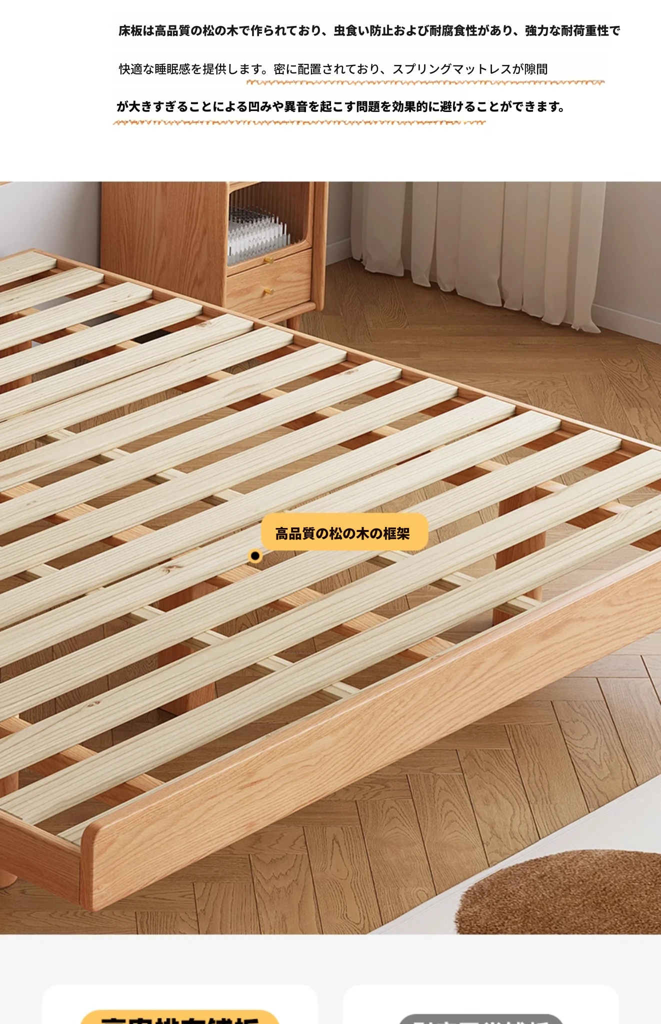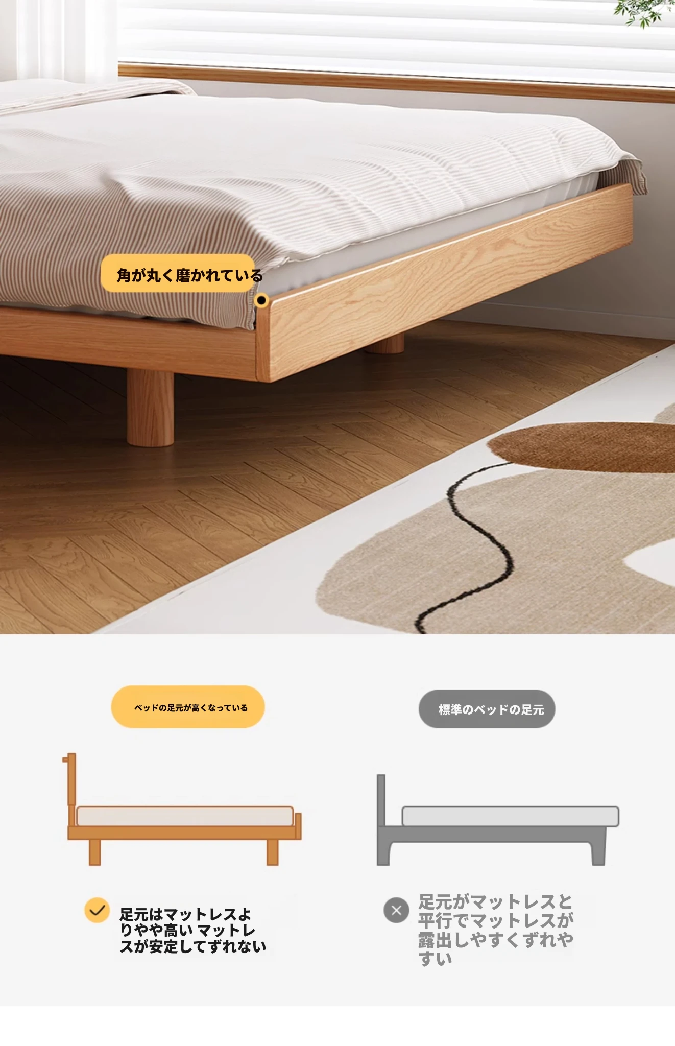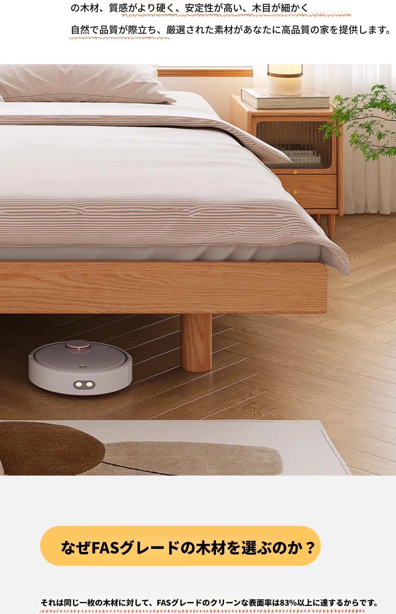 無床頭の実木フロアベッド|タタミスタイル|狭い部屋に最適な1.5mサイズ|オークのダブルベッド|和モダンな浮遊デザインでスッキリシンプルに!おしゃれで心地よい眠りをお楽しみください。