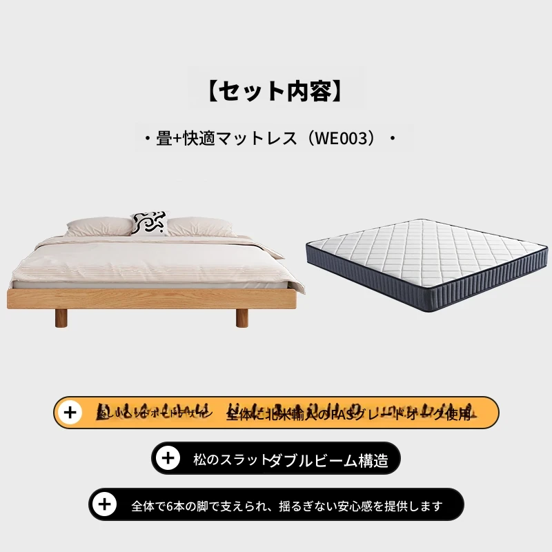 北米オークのタタミベッド+両面使用可能な3D高密度ラテックスココナッツマットレス22cm(WE003)