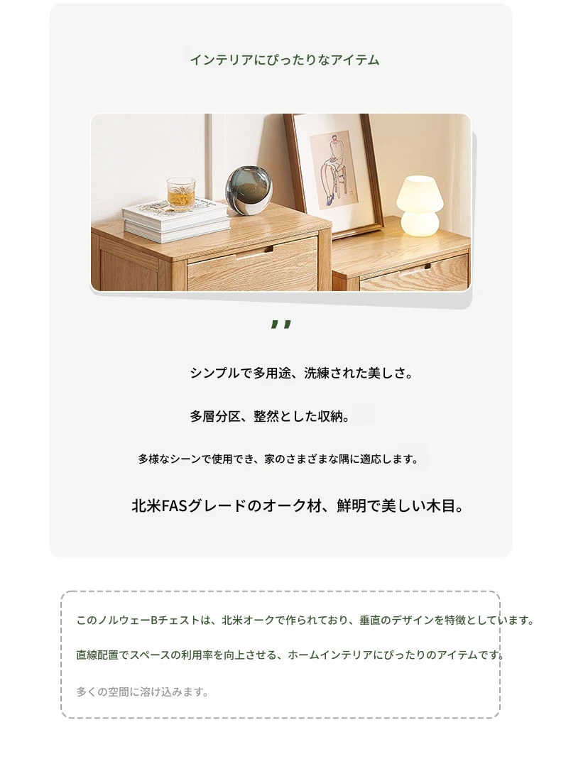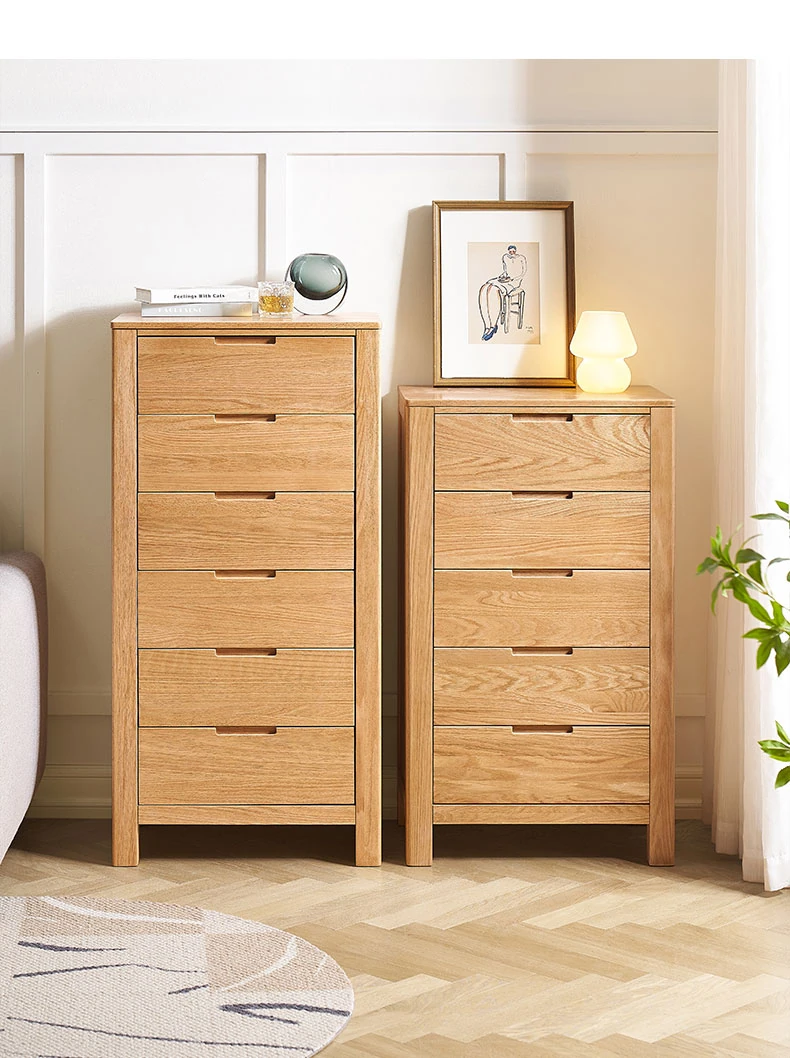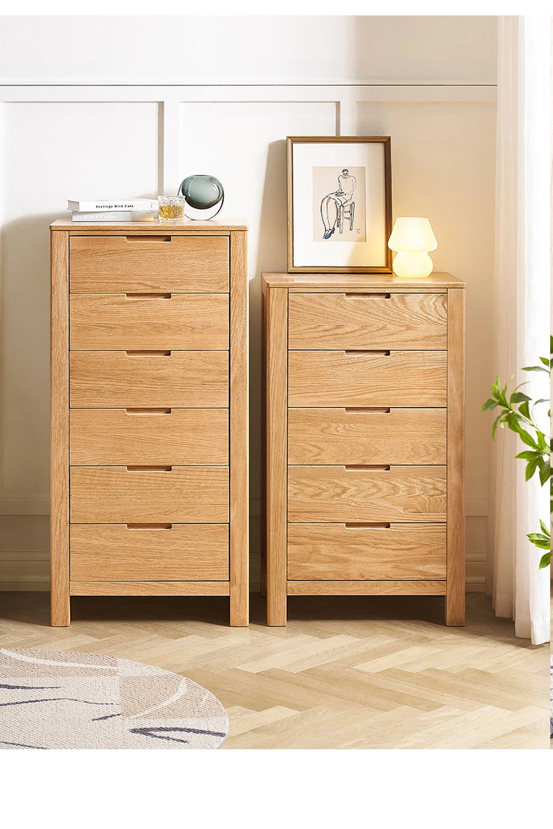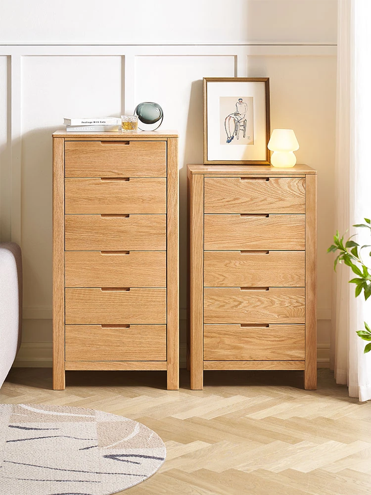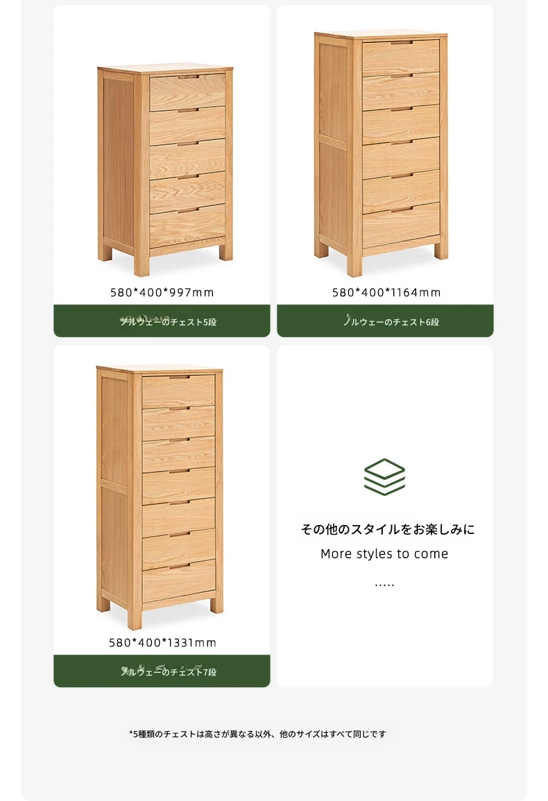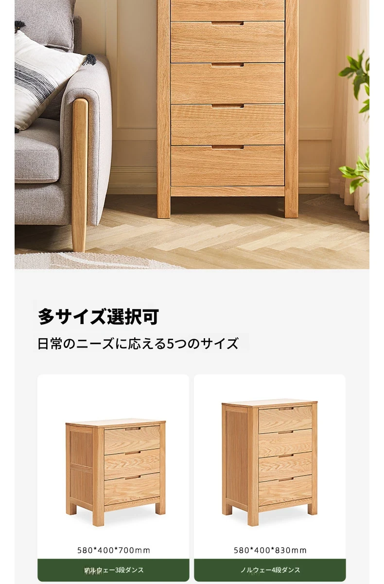 北欧スタイルの全実木製セブンチェスト - モダンでシンプルなオーク収納キャビネット、寝室や家庭に最適な天然素材の美しさを引き立てる。