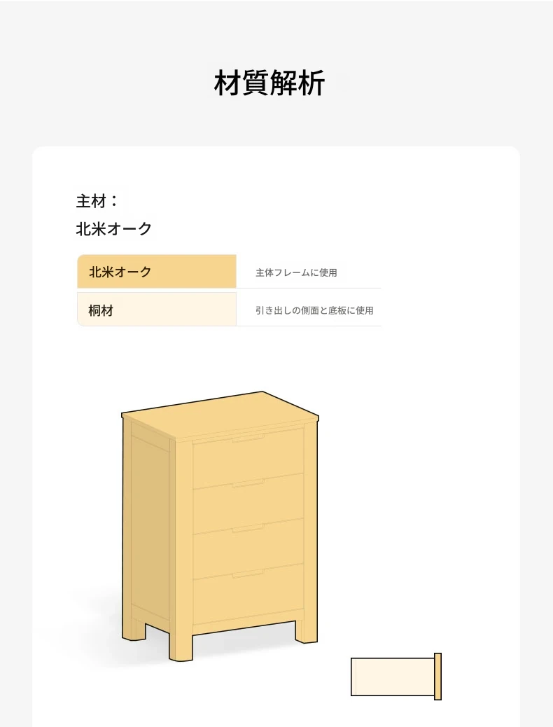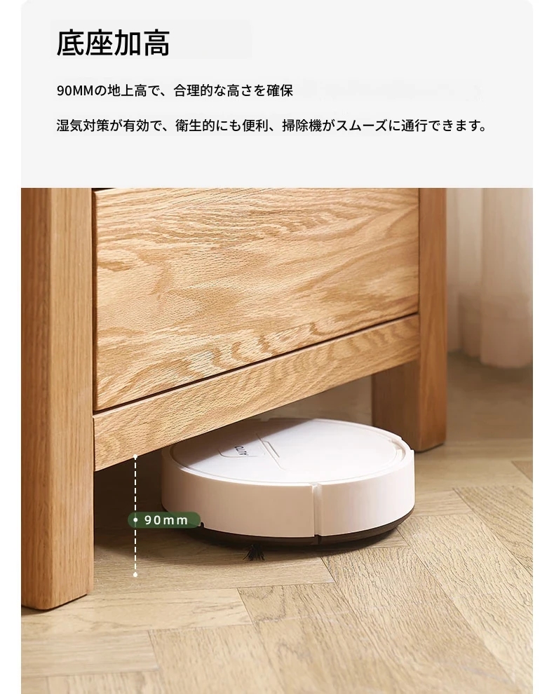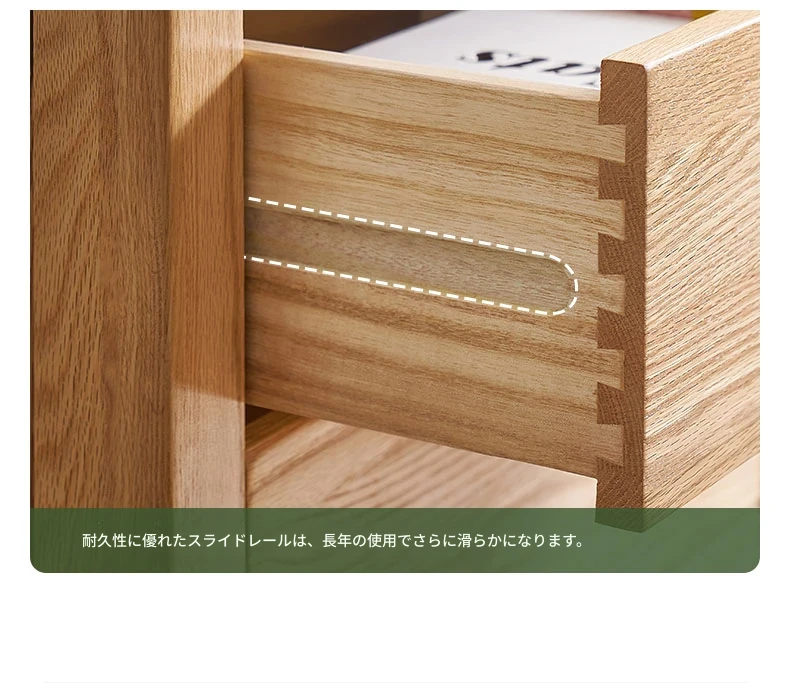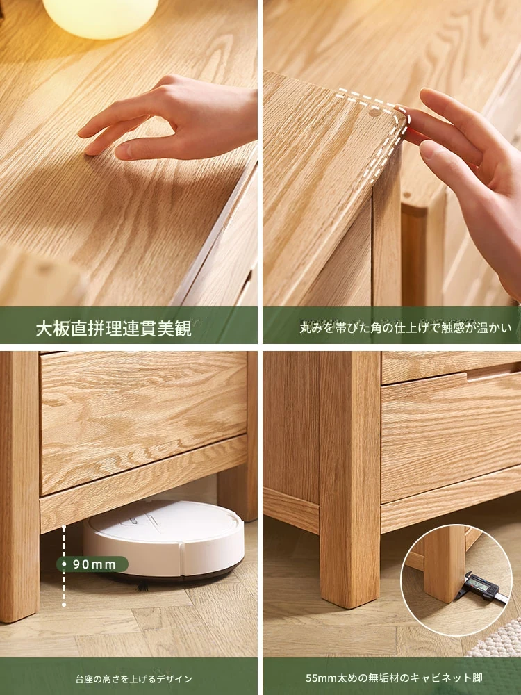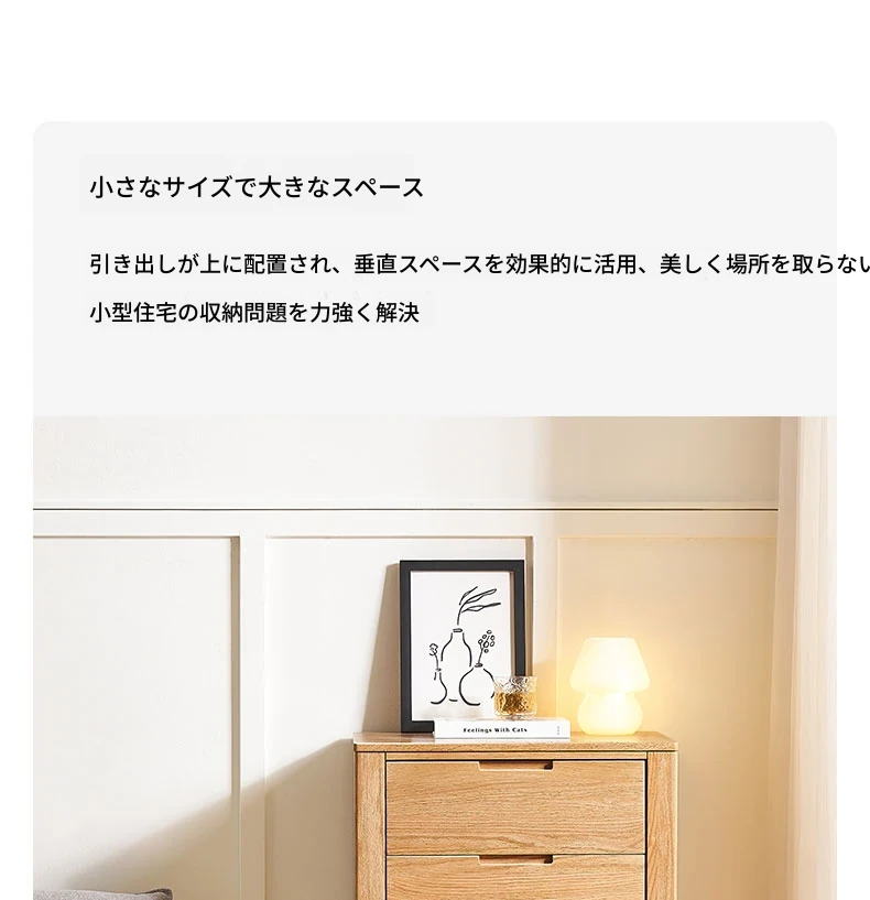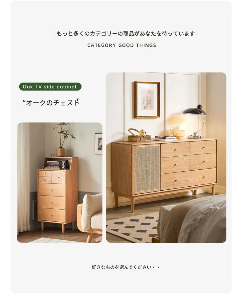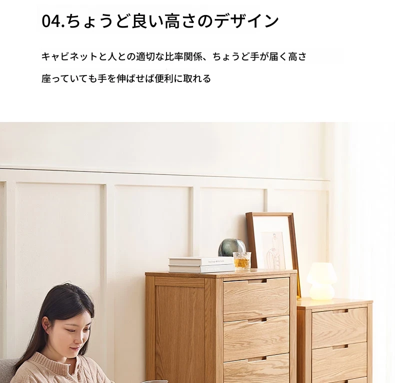 北欧スタイルの全実木製セブンチェスト - モダンでシンプルなオーク収納キャビネット、寝室や家庭に最適な天然素材の美しさを引き立てる。