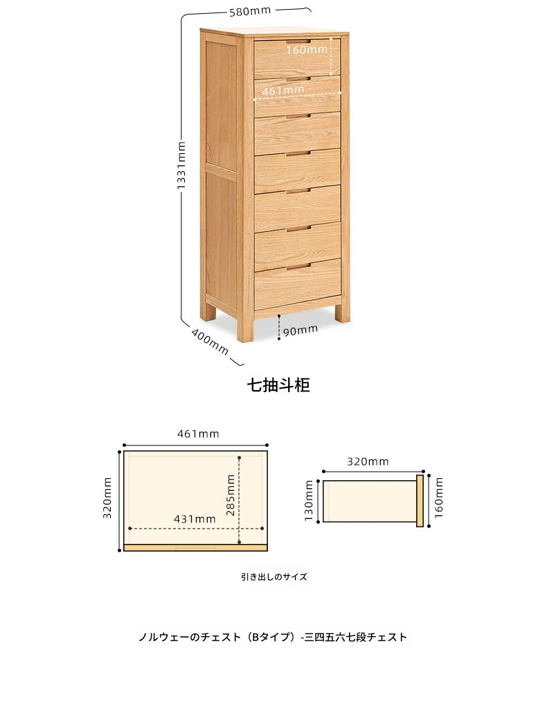 ナチュラルウッドカラー - 高い7段チェスト 580*400*1331mm